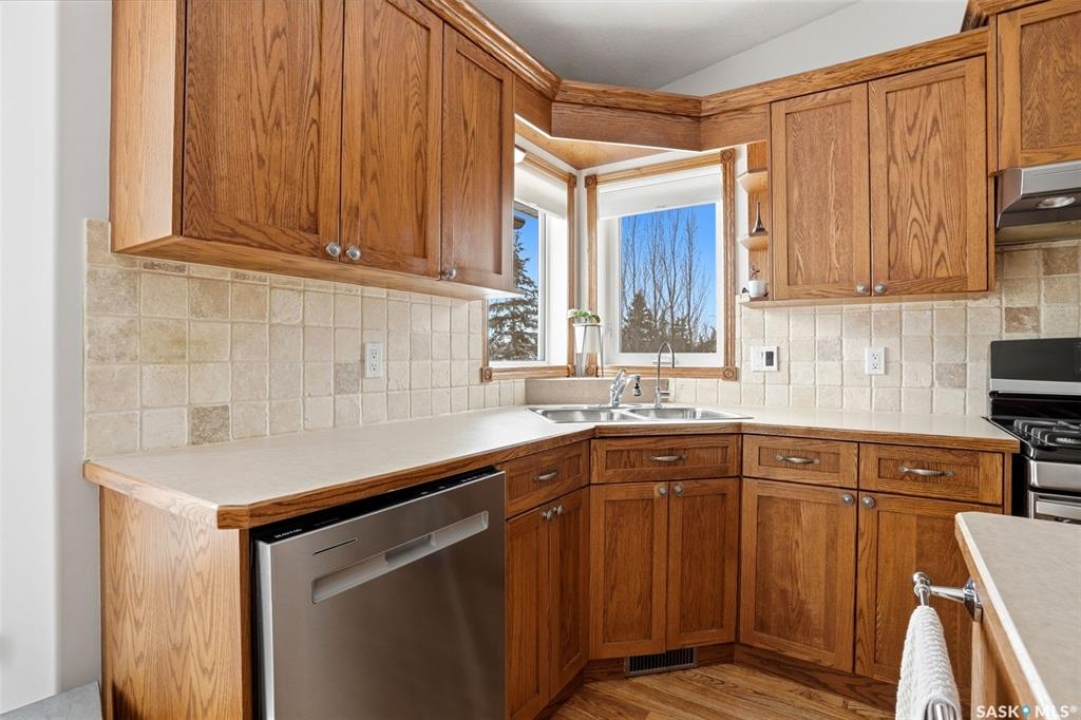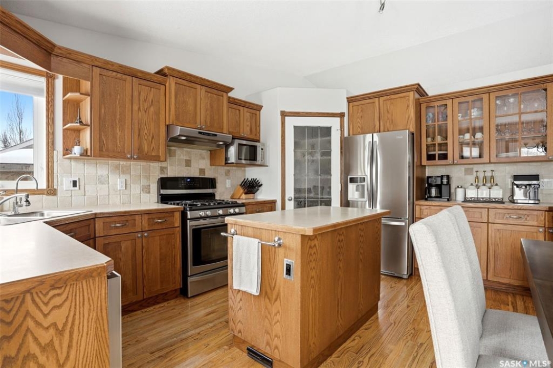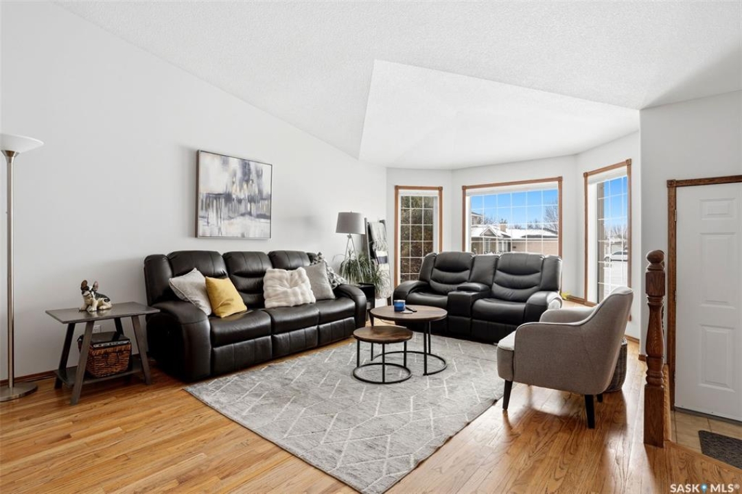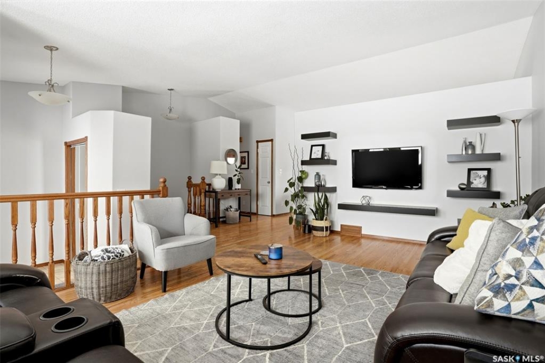 Tucked away on a quiet bay in the heart of Spruce Meadows, this beautifully maintained 1,350 sq ft bungalow offers the kind of space, warmth, and functionality that today's families are searching for. From the moment you step inside, you're greeted by an inviting front living room where soaring vaulted ceilings and expansive windows flood the space with natural light. Rich hardwood flooring carries you effortlessly into the kitchen—designed for both everyday living and effortless entertaining. Here, you'll find a central island, stainless steel appliances including a gas stove, a corner pantry, and a dedicated coffee bar. The main floor is thoughtfully laid out with three bedrooms, including a primary retreat complete with a walk-in closet and a private 3-piece ensuite. Convenient main floor laundry adds an extra layer of practicality that busy households will appreciate. Downstairs, the fully finished basement truly elevates this home. Whether it's hosting game nights, relaxing with family, or entertaining guests, the expansive rec room—with its cozy natural gas fireplace, built-in bar, and oversized windows—creates the perfect setting. Two additional bedrooms and a 3-piece bathroom provide flexibility for growing families, guests, or even a home office setup. Step outside and discover a pie-shaped backyard. The deck just off the dining area is ideal for summer BBQs, while the fully fenced yard offers privacy and space for kids or pets to roam. The insulated and boarded 24' x 22' double attached garage adds everyday convenience, and the location is hard to beat—just minutes from W.F. Ready and St. Marguerite elementary schools, with easy walking access to a wide range of Quance Street amenities. With key updates already taken care of—including shingles (approx. 2021), a high-efficiency furnace (2025), and dishwasher and washing machine (2024)—this is a home you can move into with confidence.
