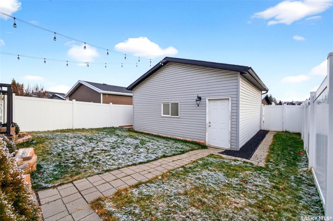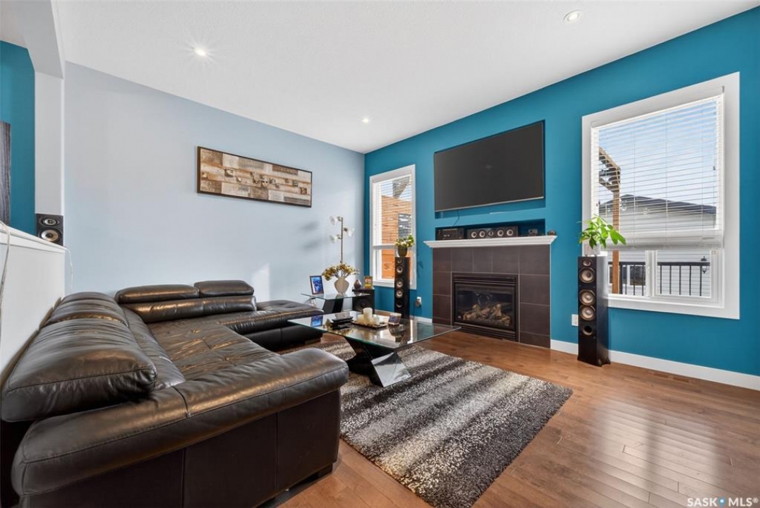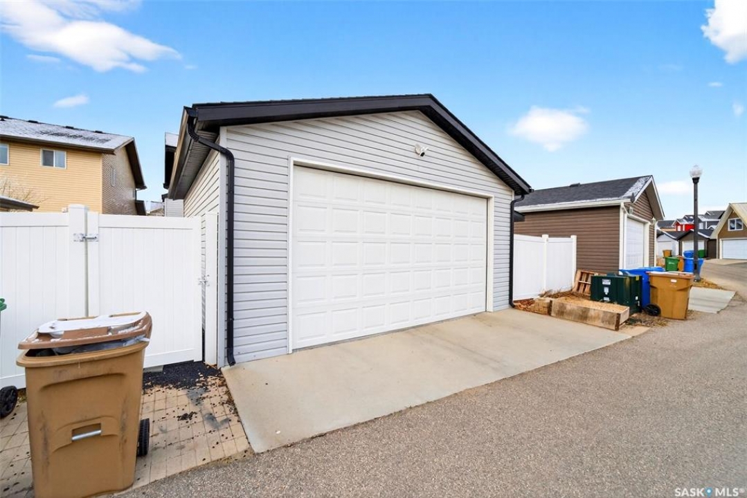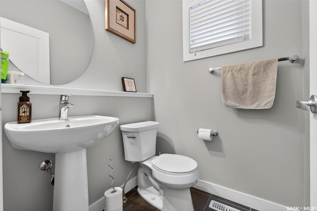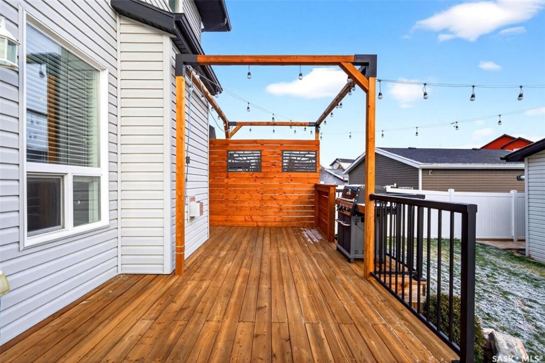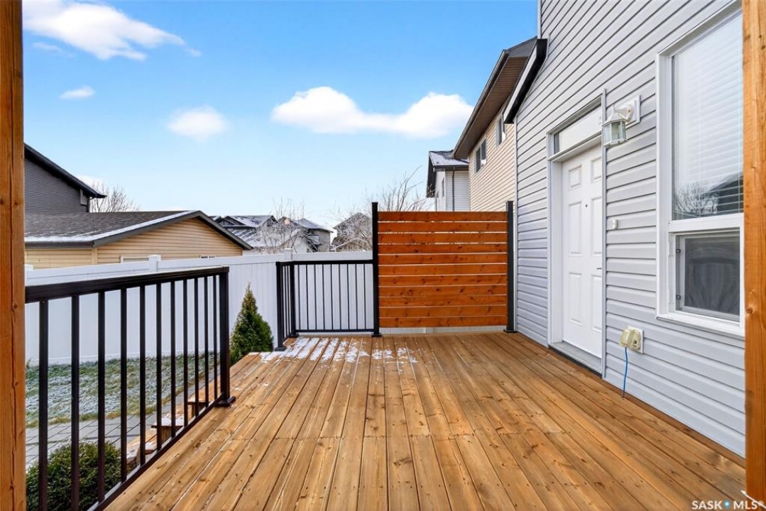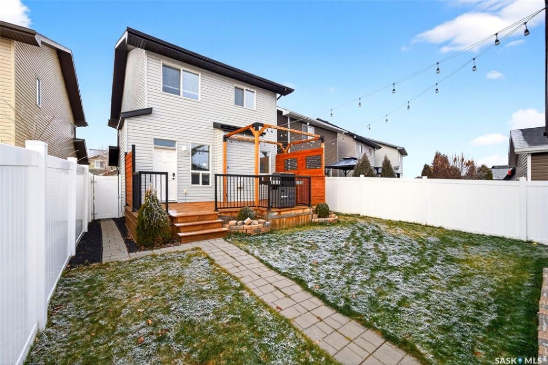 Welcome to 3696 Green Bank Road, ideally located in the sought after Greens on Gardiner neighbourhood. This beautifully maintained two storey home offers 1,619 sq ft of well designed living space, featuring 4 bedrooms, 4 bathrooms, and a double detached garage, making it perfect for growing families. The main floor showcases a bright, open concept layout with a spacious living room, functional kitchen, and dining area, along with a versatile den and a convenient 2. piece bathroom. Large windows throughout fill the home with natural light and highlight the clean, modern finishes. Upstairs, the primary bedroom provides a comfortable retreat with a walk-in closet and a 4 piece ensuite. Two additional bedrooms, a full 4 piece bathroom, and a conveniently located laundry area complete the upper level. The fully developed basement adds even more living space, offering a stylish family room, office or flex area, a fourth bedroom, another 4 piece bathroom, plus storage and utility space. Step outside to enjoy the fully fenced backyard featuring front and back decks, a well kept lawn, and plenty of space for entertaining or relaxing. Located in Regina's desirable east end, this home is close to parks, walking paths, schools, restaurants, and all amenities, making it an excellent choice for modern family living.