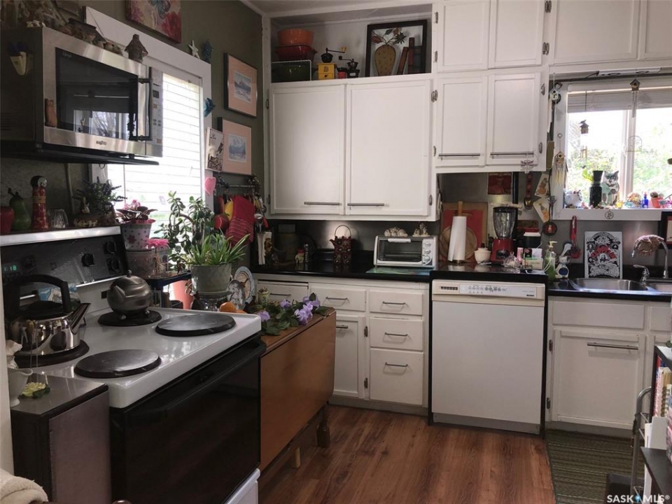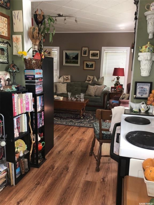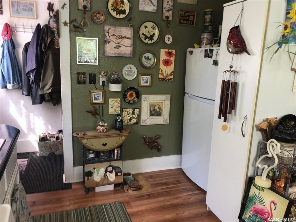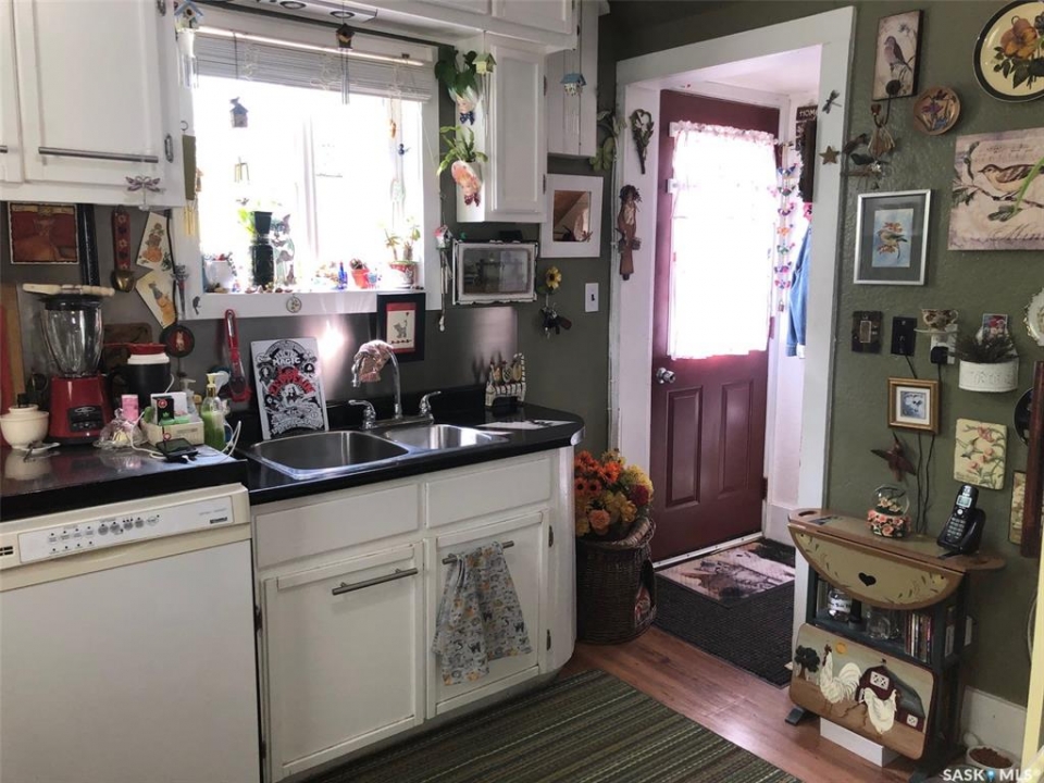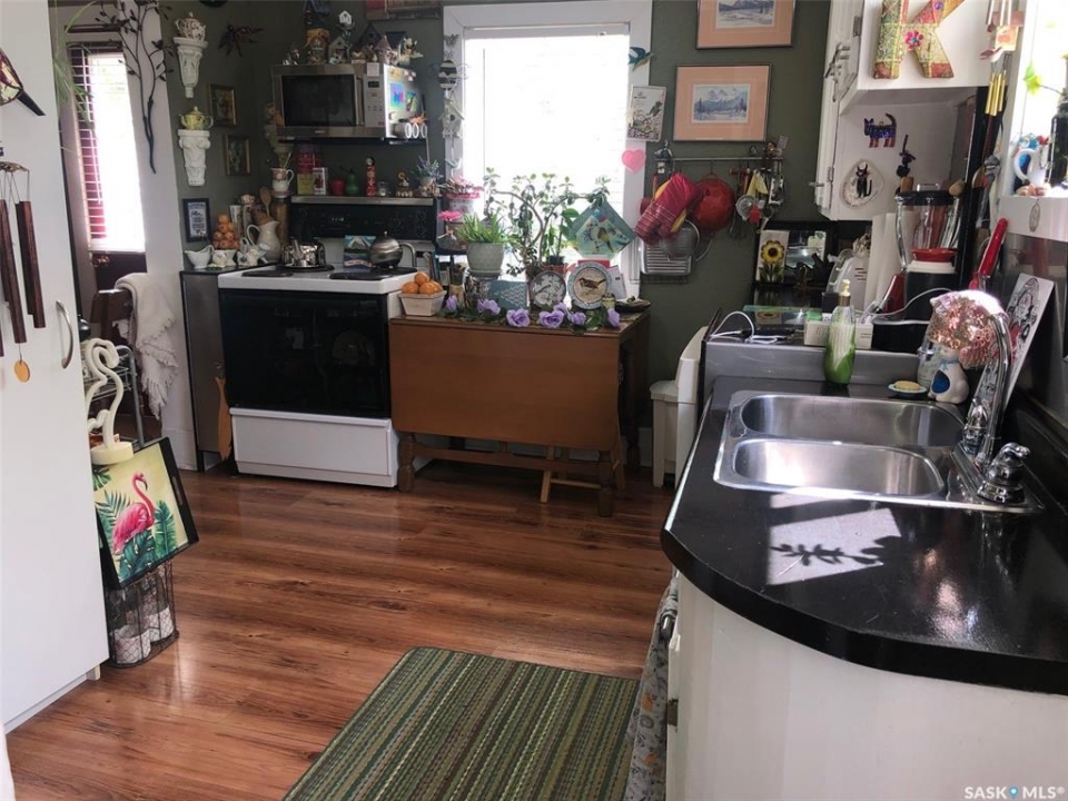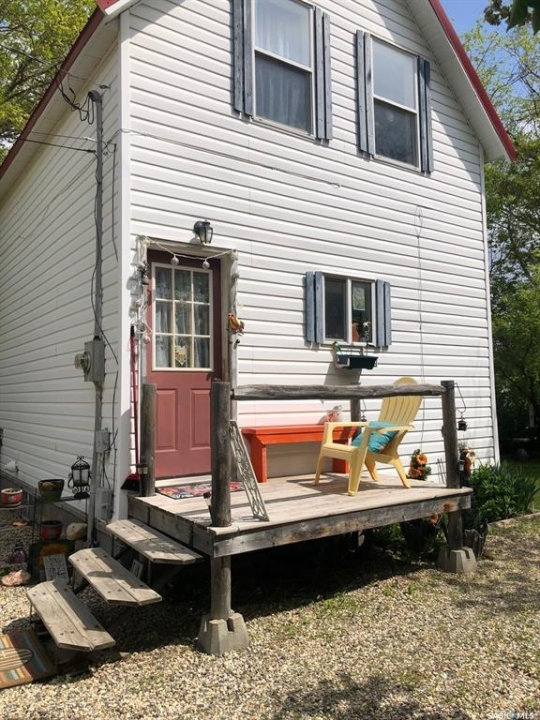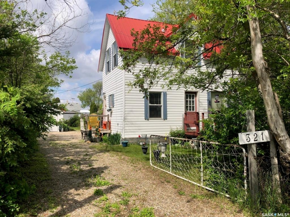 T'S LIKE BEING AT THE PARK.... Folks check out this charming 1 3/4 character home that is surrounded by beautiful surroundings and situated on 2 lots in the welcoming Town of Sturgis. This 865 square ft, 1910 home has stood the test of time and has been built to last a lifetime! Upon entry and through the gate you will be impressed by the private oasis surrounded by mature trees around the entire perimeter of the 2 lots. The space provided is tremendous boasting 12, 850 square feet of land that consists of a detached single car garage, patio, fire pit and lawn area as well as plenty of parking space that can accommodate RV parking. The property provides back alley access and is well maintained with crushed rock leading to the deck and main entrance of the home. Upon entry, the unique surroundings become even more enhanced with the cozy interior that makes you feel like sitting down and enjoying a nice cup of tea. The home is solid and boasts a solid concrete foundation that is in superb condition! The main floor consists of a functional kitchen, and living space with plenty of good updated windows that open. The 2nd floor consists of 2 bedrooms and a cute 3 piece bath. The basement consists of laundry, utility, and mechanical area, as well as a shower, storage & cold room with additional space currently used as an office area. There is much added value within the home from the recent upgrades over the recent years that include; metal roof, vinyl siding, brand new HE furnace installed in January 2026, & water heater, and appliances are all included featuring a newer fridge with extended warranty. The home has proven to be quite energy efficient with Sask Energy payments equalized at $85/month. Town water & sewer only $70/month &Taxes $1371/year. Very affordable living in a fine peaceful residential community. The property is also centrally located and in walking distance to the schools and all amenities. Interested? Call for more information or to schedule a viewing.