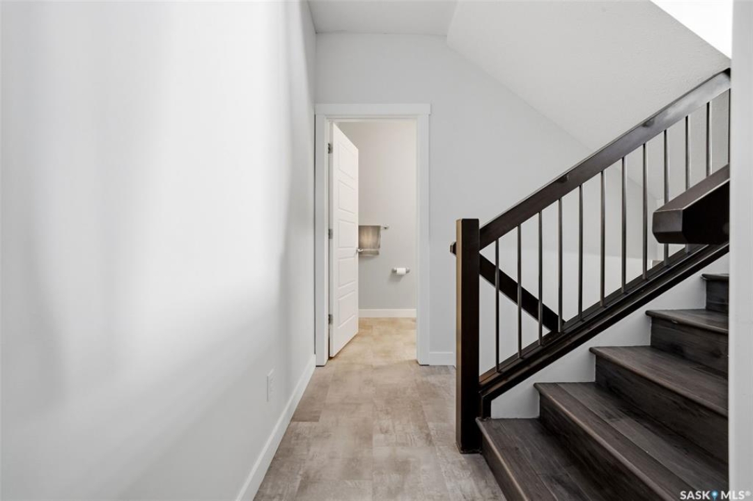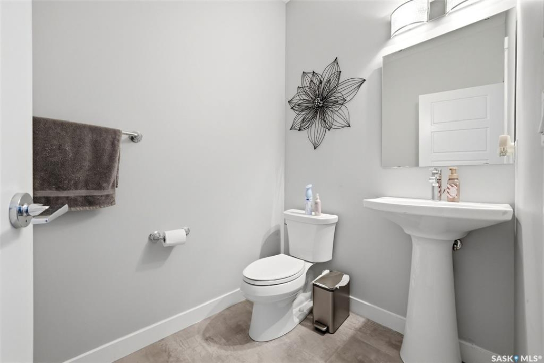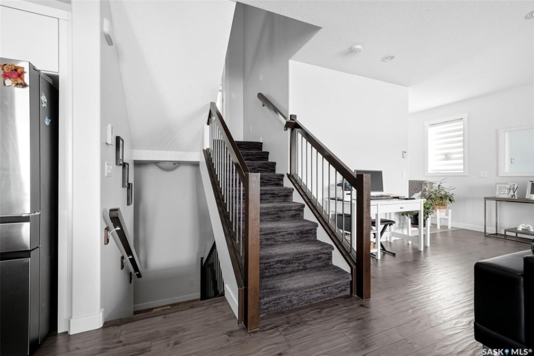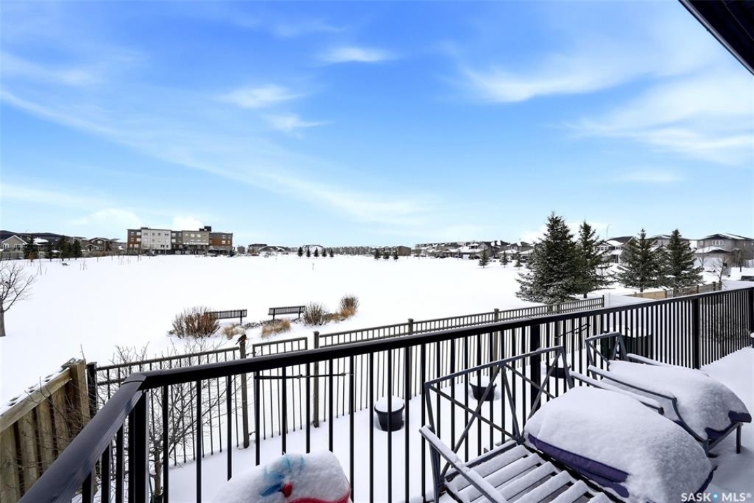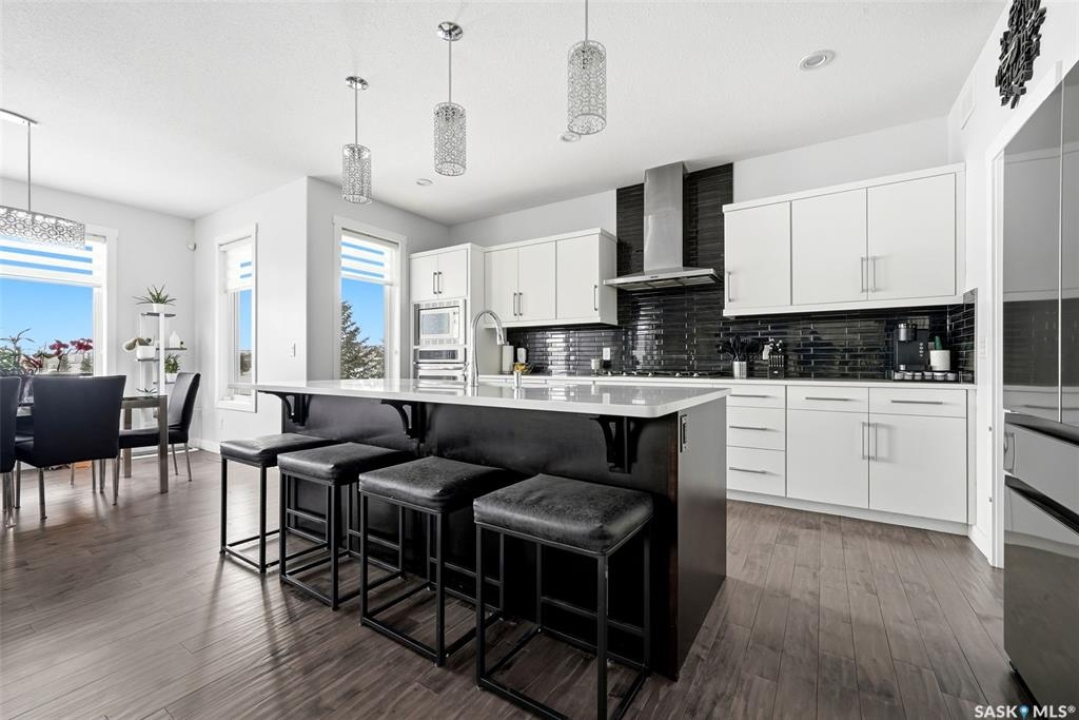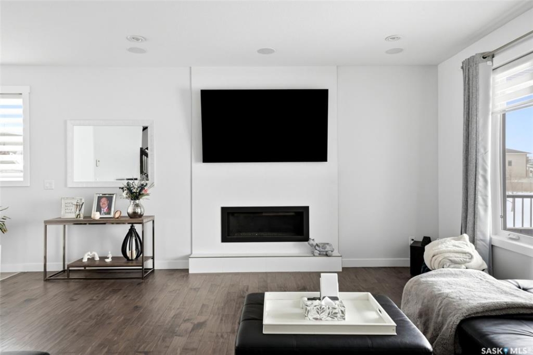 Have you been coming up empty in your search for the perfect family home? Your wait is over. This stunning, modern home—crafted by the award-winning Deveraux Homes in Regina—offers 2,023 sq ft of thoughtfully designed living space and a unique, reimagined 5-level split layout that maximizes both function and flow in a way that truly must be experienced in person. Fully and professionally developed by the builder, this home backs directly onto Havilland Park—giving your kids the ultimate backyard and you the rare luxury of no rear neighbours, all enjoyed from your covered deck. Step inside to a spacious, welcoming entryway designed with everyday family life in mind. The main floor features an open-concept design, anchored by a beautifully appointed chef's kitchen complete with built-in appliances, a large island, timeless white cabinetry, and hand-scraped hardwood floors that add warmth and sophistication while complementing the modern colour palette. Upstairs, the bonus room above the garage offers the perfect retreat for movie nights or relaxing with family. Just a few steps further, you'll find three generously sized bedrooms along with the conveniently located laundry room—an added touch of practicality in this well-planned layout. The primary suite is a true escape, featuring a walk-through closet and a luxurious 5-piece ensuite with a tiled shower. The lower level continues to impress, with a functional mudroom-style garage entry featuring built-in lockers and additional storage. The professionally developed basement is ideal for entertaining or unwinding, currently set up as a home theatre, and includes a spacious rec room, fourth bedroom, full bathroom, and a dedicated office nook, plus ample storage throughout. Built to an exceptional standard, this home is loaded with upgrades including built-in AV, a covered deck, custom blinds, a Blueskin foundation, and more—delivering comfort, style, and quality in every detail.