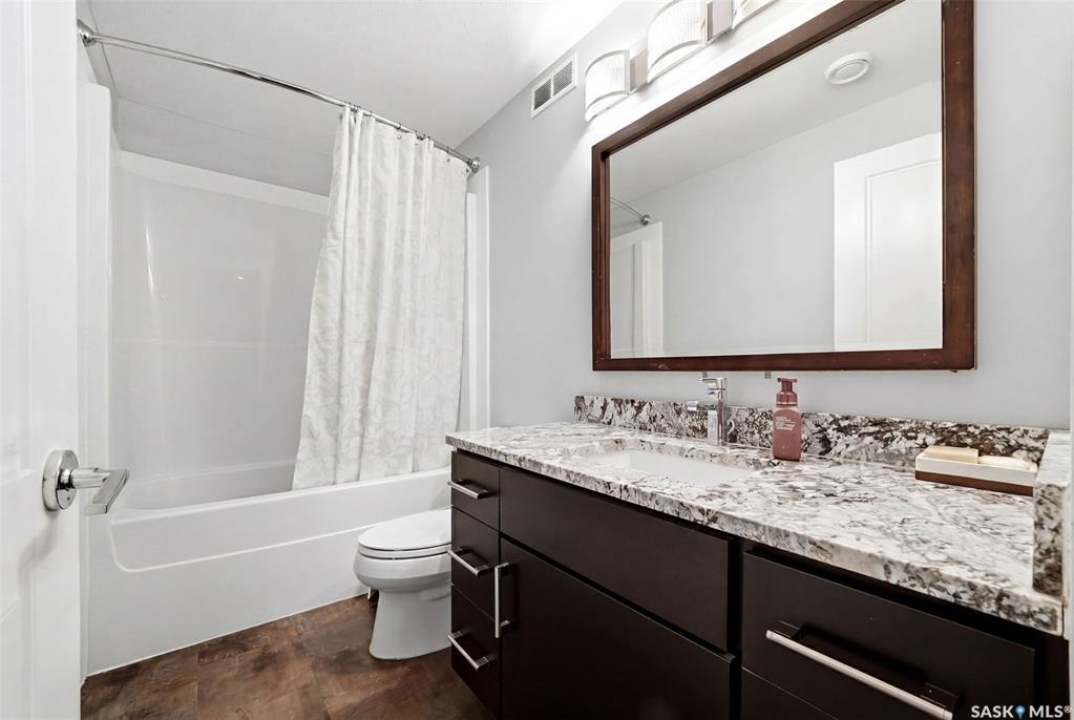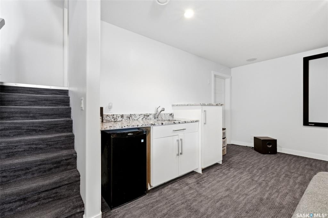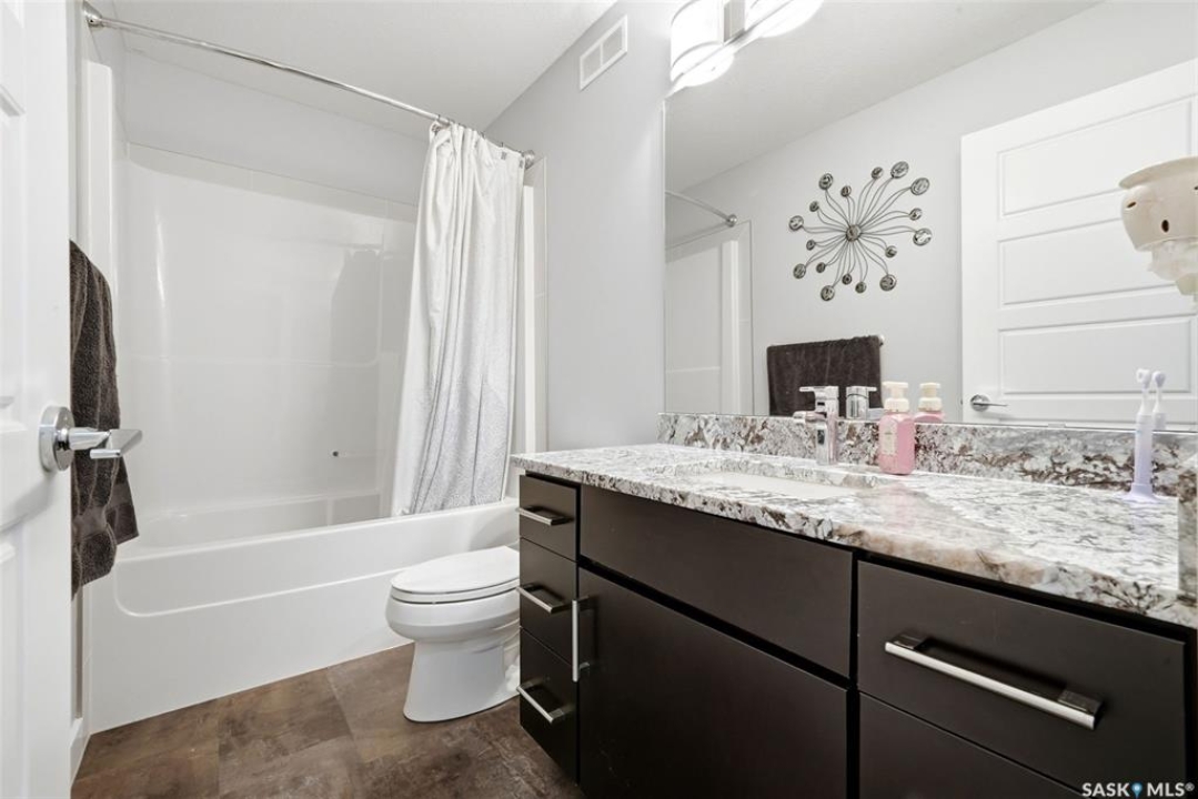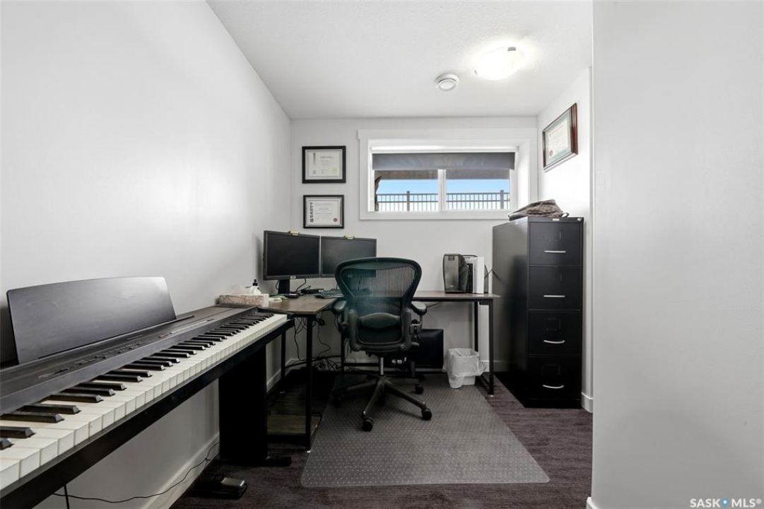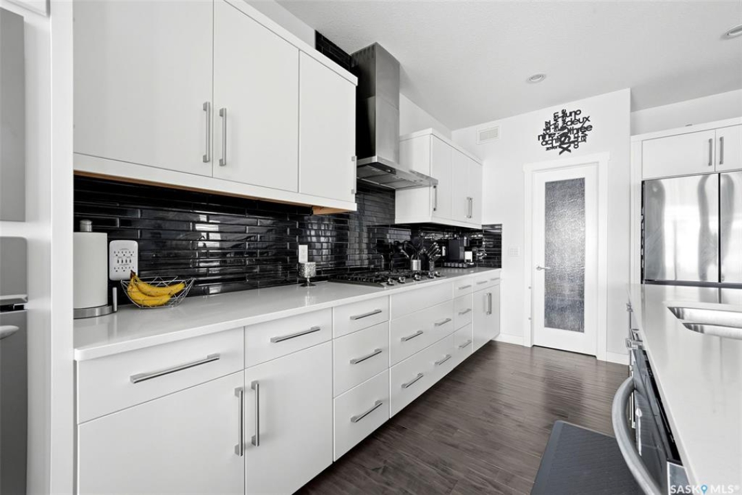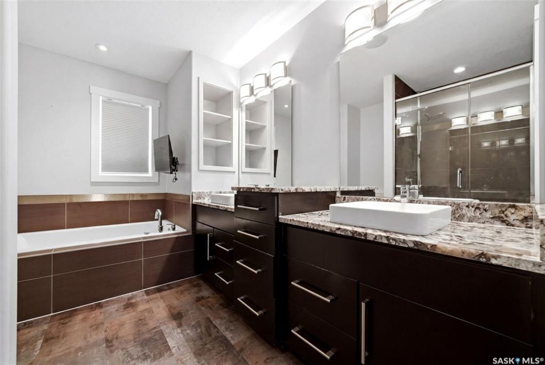 Have you been coming up empty in your search for the perfect family home? Your wait is over. This stunning, modern home—crafted by the award-winning Deveraux Homes in Regina—offers 2,023 sq ft of thoughtfully designed living space and a unique, reimagined 5-level split layout that maximizes both function and flow in a way that truly must be experienced in person. Fully and professionally developed by the builder, this home backs directly onto Havilland Park—giving your kids the ultimate backyard and you the rare luxury of no rear neighbours, all enjoyed from your covered deck. Step inside to a spacious, welcoming entryway designed with everyday family life in mind. The main floor features an open-concept design, anchored by a beautifully appointed chef's kitchen complete with built-in appliances, a large island, timeless white cabinetry, and hand-scraped hardwood floors that add warmth and sophistication while complementing the modern colour palette. Upstairs, the bonus room above the garage offers the perfect retreat for movie nights or relaxing with family. Just a few steps further, you'll find three generously sized bedrooms along with the conveniently located laundry room—an added touch of practicality in this well-planned layout. The primary suite is a true escape, featuring a walk-through closet and a luxurious 5-piece ensuite with a tiled shower. The lower level continues to impress, with a functional mudroom-style garage entry featuring built-in lockers and additional storage. The professionally developed basement is ideal for entertaining or unwinding, currently set up as a home theatre, and includes a spacious rec room, fourth bedroom, full bathroom, and a dedicated office nook, plus ample storage throughout. Built to an exceptional standard, this home is loaded with upgrades including built-in AV, a covered deck, custom blinds, a Blueskin foundation, and more—delivering comfort, style, and quality in every detail.