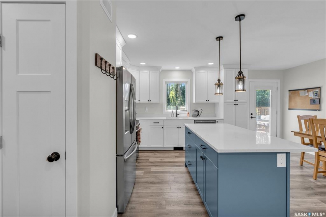 Take a closer look at this well-built family home with a large yard in the welcoming community of Radisson, located apprx. 40 min from both Saskatoon & The Battlefords. Custom-built in 2024 on a reused concrete foundation from 1984 that remains in very good condition. The 28'x30' detached garage with 9' walls was also built in 1984 with new overhead doors, exterior renos, subpanel & 220V service completed in 2024. Well-designed open-concept home with tons of natural light & bright LED lighting from recessed fixtures & modern pendants. Custom shaker kitchen with quartz counters & quality cabinetry by Zak's Home Hardware. Premium Frigidaire Gallery stainless steel appliances included, additional wall bracing for installing a TV mount in living room. 3 bedrooms upstairs, each with large closets, 5-piece main bathroom with dual sinks & tiled-in tub/shower combo. Partially-finished basement is boarded with drywall (taping & skim coat to be done), roughed-in bathroom with shower & toilet installed (needs vanity & shower plumbing connected), bedroom framed in (needs doors). Seller willing to negotiate on further completion. Utility room framed in with functional laundry in place. Very energy-efficient & well-insulated home with high-efficiency furnace, HRV, power-vent water heater, central A/C (all HVAC installed 2024), R-60 attic insulation with Roxul & spray-foamed rim joists, exterior parging recently completed. Other upgrades include 200-amp electrical, composite siding, triple-pane windows, new curb stop & sewer connection, sani-dump into sewer system at front yard & 50-amp plug for RV parking at NE side of property. Large, mature back yard with tall shelter belt, Saskatoon bushes on property. Many features built above code in this highly functional & efficient home, with a basement awaiting your personal touch. An excellent choice for families, retirees or professionals seeking the simple life in small-town Saskatchewan.
