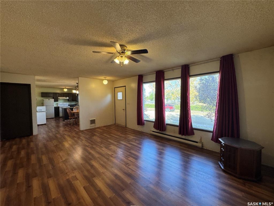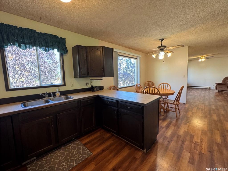 With a smart use of space that makes it feel even larger than it is, this home offers a warm and welcoming main floor featuring a cheerful kitchen, a dining area with a built-in china cabinet, and a spacious living room filled with natural light. The layout flows seamlessly, making it ideal for both everyday living and entertaining. You'll also find a comfortable primary bedroom, a second bedroom, a 4-piece bathroom, and a convenient laundry/mud room — all on the main level. The full basement offers endless possibilities! Partially finished, it's currently set up with a family room, an additional bedroom, a utility room, and a rough-in for a 3-piece bathroom. There's plenty of room to expand — add extra bedrooms, a home gym, or a hobby space to suit your lifestyle. One of the home's standout features is its efficient heating system, allowing you to easily adjust the heat in each room for personalized comfort and consistent, dust-free warmth. Outdoors, you'll find front and back lawns, a garden shed, and space to build your dream garage with street or alley access. The yard is a gardener's delight, complete with mature trees, rhubarb, a crab apple tree, nanking cherry, and saskatoon berry bushes. This home is ideally located across the street from a park featuring a covered picnic area, fenced basketball court, and outdoor play equipment — perfect for families and outdoor fun. Landis is a welcoming community located just 37 km from Biggar and Wilkie, 84 km from the Battlefords, and 130 km from Saskatoon. Local amenities include school bus service to nearby schools (Wilkie and Biggar), a community hall, post office, garbage and recycling pickup, curling and skating rink, banking institution, insurance broker, bar and grill, and a card lock gas station. Catch the beautiful sunsets in small town living — book your viewing today!