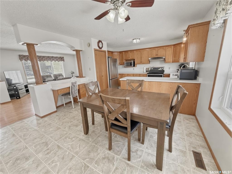 Looking for a bungalow in the sought-after Highland subdivision? This well-maintained 1,232 sq ft home offers the space, comfort, and location today's buyers are searching for. Built in 1997, this 3 + 1 bedroom, 3-bath bungalow sits on a corner lot with an 18 x 24 detached garage that can accommodate two vehicles, along with ample parking including room for an RV. Step inside to an inviting living room filled with natural light from the west-facing window, complete with a cozy corner gas fireplace. The kitchen and dining area feature warm oak cabinetry, a pantry, stainless steel appliances, and a convenient built-in desk space—perfect for busy households. A door off the dining area leads to the east-facing deck, where you can unwind in the included hot tub. The main floor offers three bedrooms, including a spacious primary with a 3-piece ensuite. The lower level is fully developed with a comfortable family room, a separate exercise area just off the family room, an additional bedroom, a 3-piece bath, and a combined laundry and utility room, providing plenty of space for family or guests. Please note: the current washer and dryer will be switched out for another set prior to possession. Recent updates include shingles (2023), updated ceiling tiles in the lower level (2022), fresh paint in the living room, main bedrooms, hallway, and much of the lower level, two new main floor bathroom sinks, and new carpet on the main floor and most of the lower level (2025), along with updated closet doors. A new stove was added in 2025, & wired smoke and CO2 detectors were installed in 2026 for enhanced safety. Underground sprinklers on timers in both the front & back yard. Located just down the street from Highland Park, this home is perfectly positioned in one of Swift Current's most desirable NW neighbourhoods. A fantastic opportunity to settle into a family-friendly area where homes like this don't last long.
