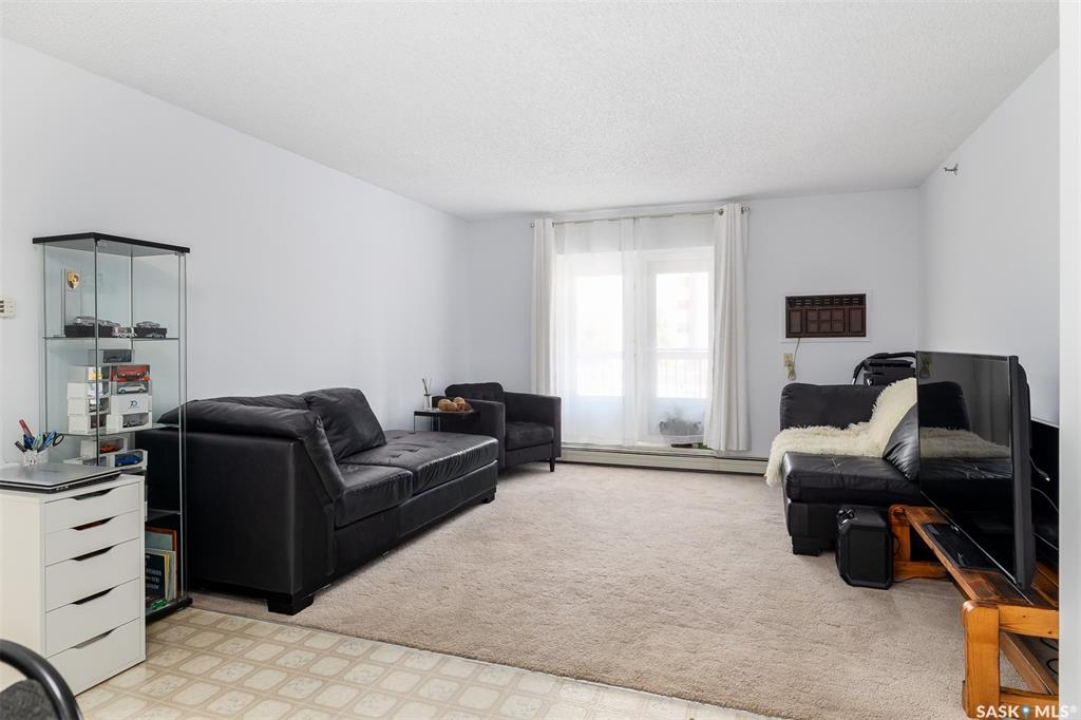 Welcome to unit 305 at 405 5th Ave North! Located just north of downtown you will enjoy easy access to river walking, the Kinsmen park, shopping, and a short walk to the U of S Campus! This 850sqft unit features 2 east facing rooms and a full bathroom. The primary bedroom features a large walk-in closet as well! New carpet has been laid in the rooms and living area. The kitchen has been updated with stainless appliances and includes a dishwasher. From your living room you have access to a covered deck that gives you great north facing views! In-suite laundry is located in the pantry/storage area with additional storage off of your balcony. Underground parking is available for rent from the condo as well as above ground spaces. Call today to book a showing on this immaculate unit!