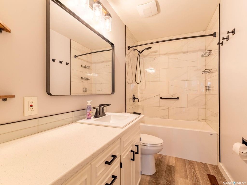 Welcome to 2518 Tomlinson Crescent in Saskatoon's Mount Royal neighbourhood. This well-maintained 1300 sq ft bungalow offers an excellent opportunity for first-time buyers or young families looking for a move-in ready home in a quiet, established area. Step inside to a bright and spacious living room filled with natural light from large front-facing windows. Updated flooring runs throughout the home, creating a modern and cohesive feel. The open concept kitchen features ample cabinetry, functional workspace, and includes all appliances, flowing seamlessly into a dedicated dining area at the rear of the home. A standout feature is the heated and insulated sunroom, providing a versatile space perfect for relaxing, entertaining, or enjoying year-round use, with direct access to the backyard. The main floor includes three generously sized bedrooms and a fully renovated bathroom completed in June 2023. The utility room is clean and practical, offering dual electrical panels and a newer water heater (2021). Outside, the large yard is ideal for families, pets, and outdoor enjoyment. The true highlight of the property is the impressive 22x26 heated garage built in 2018, offering exceptional space for vehicles, storage, or workshop use. Additional updates include soffits and eaves (2022), some windows and doors (2024), fencing (2018), and underground sprinklers (2022). Located on a quiet crescent close to schools, parks, and amenities, this home delivers comfort, value, and convenience in a family-friendly neighbourhood. Offers will be presented Friday, April 24th, at 6:00pm. Open houses April 21, April 22, and April 23 from 5-7pm.