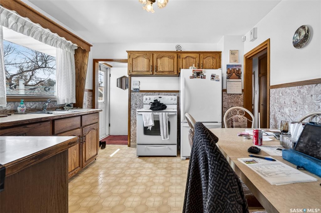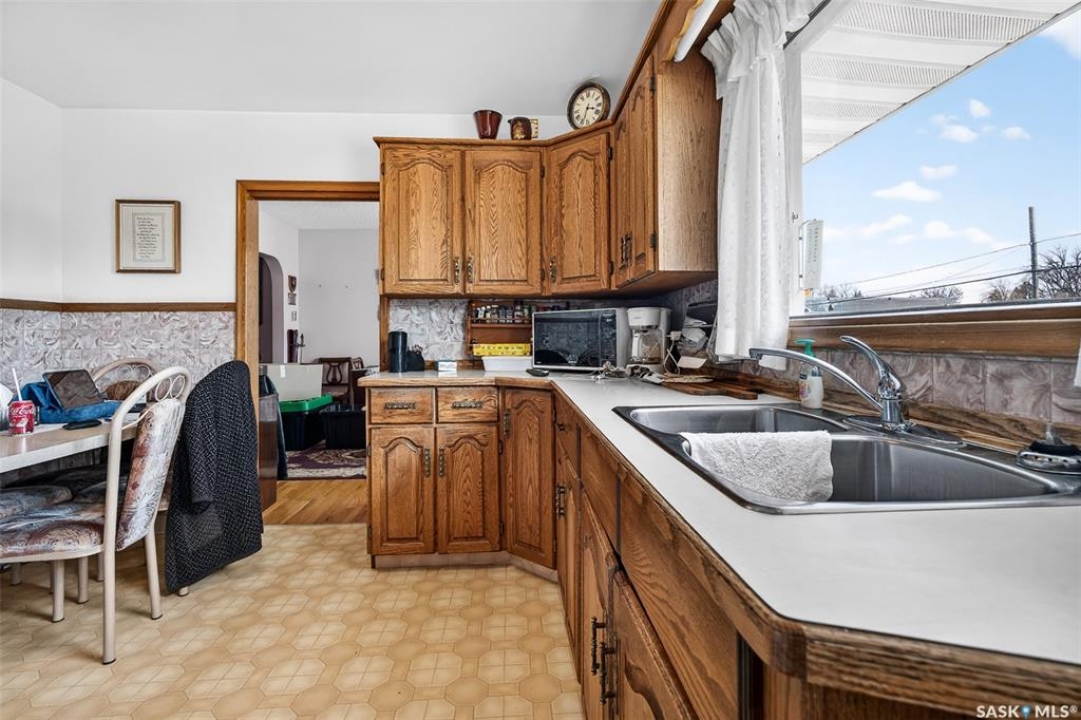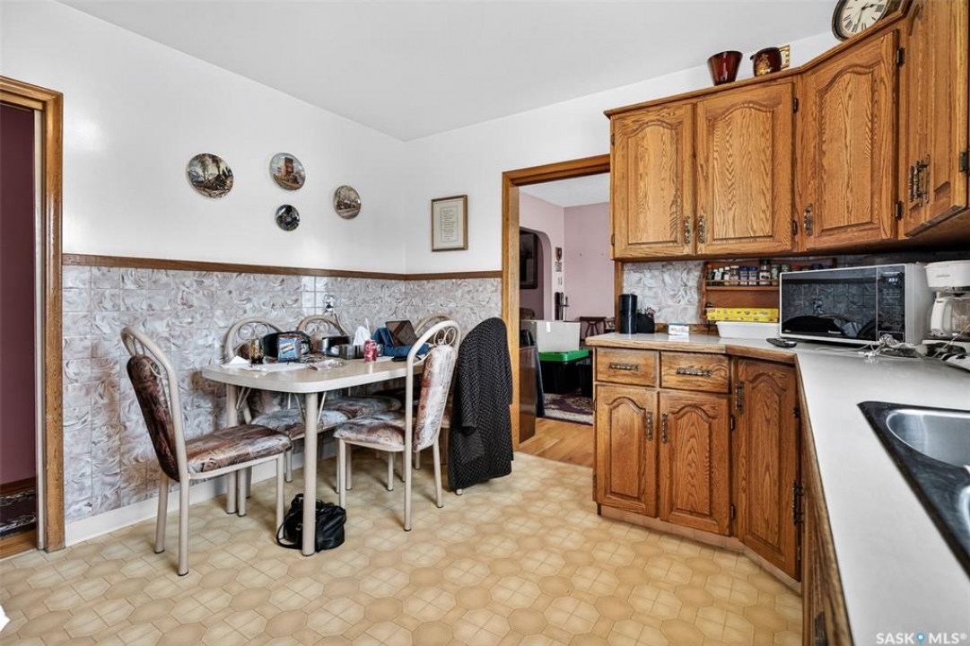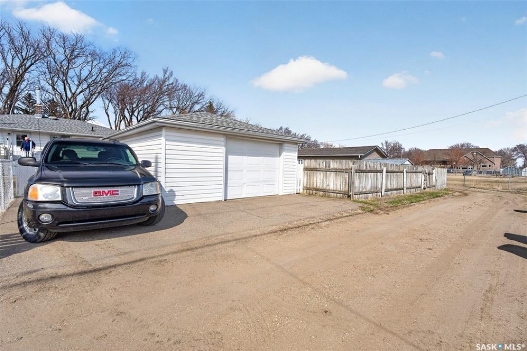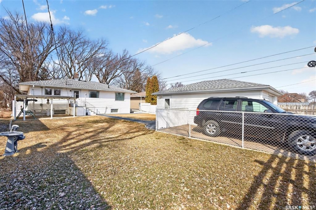 This well-maintained 1,052 sq. ft. raised bungalow offers excellent curb appeal with its crisp white siding and upgraded rubber-paved sidewalks. Inside, you'll find a spacious kitchen featuring classic oak cabinetry, complemented by a formal dining room that flows seamlessly into the bright and inviting living room—perfect for everyday living and entertaining. The main level hosts three comfortable bedrooms and a full four-piece bathroom. Downstairs, the fully developed basement boasts a generous L-shaped family room complete with a wet bar, along with a three-piece bathroom conveniently located in the laundry area and ample storage space throughout. Outside, the partially fenced yard includes a covered patio, underground sprinklers (both front and back yards), 19 x 25 detached garage and additional rear parking, providing both functionality and convenience.