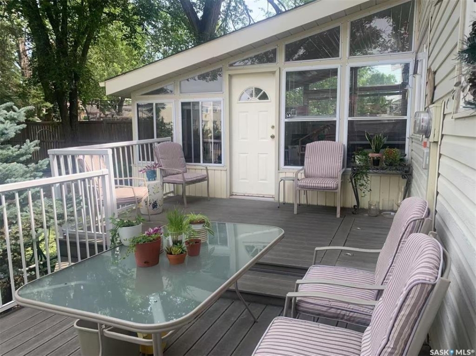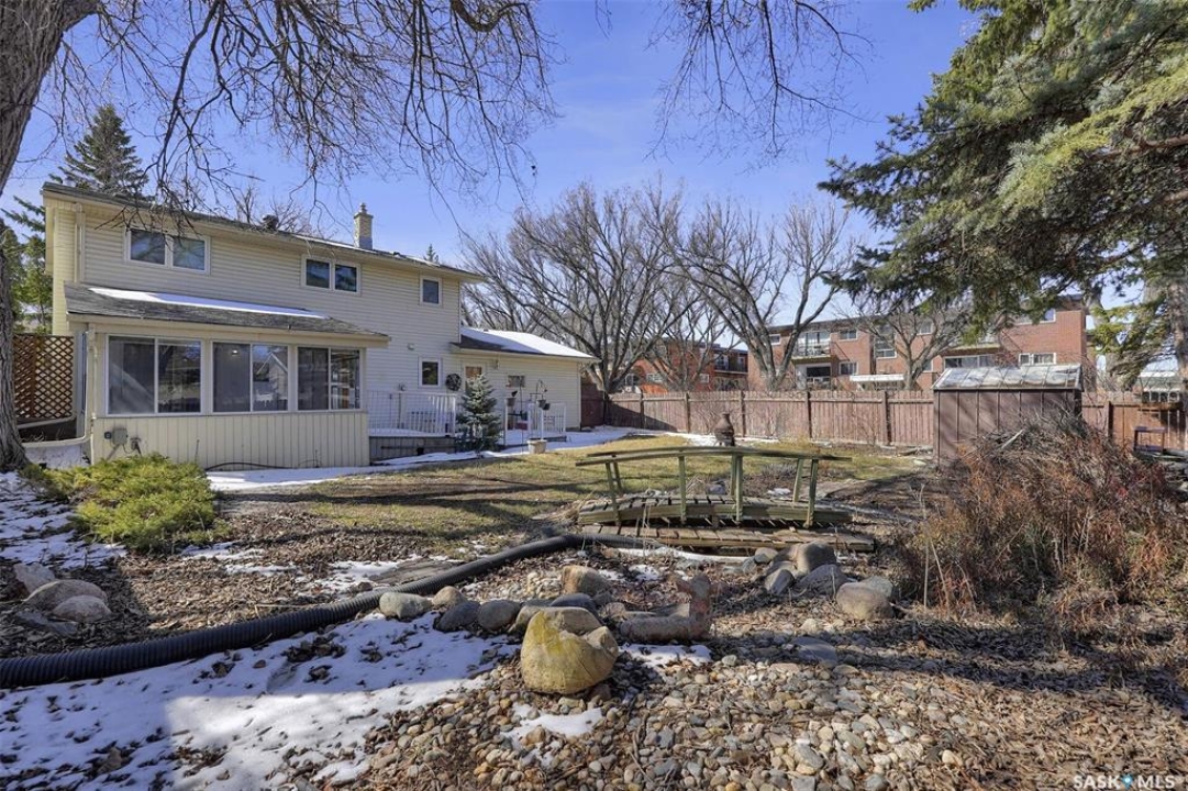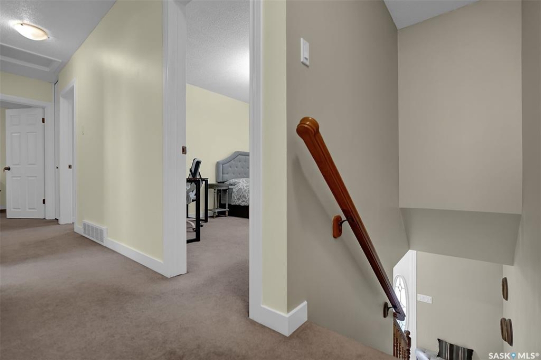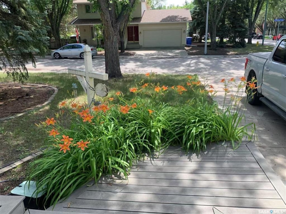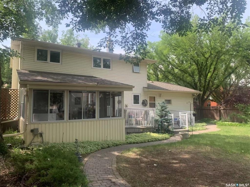 Well-maintained two-storey home situated on a large corner lot in the desirable Hillsdale neighborhood. Conveniently located close to the University of Regina, schools, and south-end amenities. This 4-bedroom, 3-bathroom home features a spacious living room with large windows that provide an abundance of natural light. The kitchen offers oak cabinetry with ample cupboard space and overlooks the private backyard. A generously sized dining area includes patio doors leading to a huge sunroom and provides easy access to the maintenance-free deck. The main floor is completed with a convenient 2-piece bathroom and direct entry to the attached garage. The fully developed basement features a recreation room with built-in cabinetry, a den/office or potential additional bedroom, high-end laminate flooring, and a natural gas fireplace. Additional upgrades include a newer 3-piece bathroom, sump pump, and reinforcement work. This home also boasts numerous upgrades, including most windows replaced, a high-efficiency furnace, maintenance-free decking (front and back), 30-year shingles (2011), and a replaced sewer line. Hardwood flooring is located beneath the carpet in the living room and dining room.