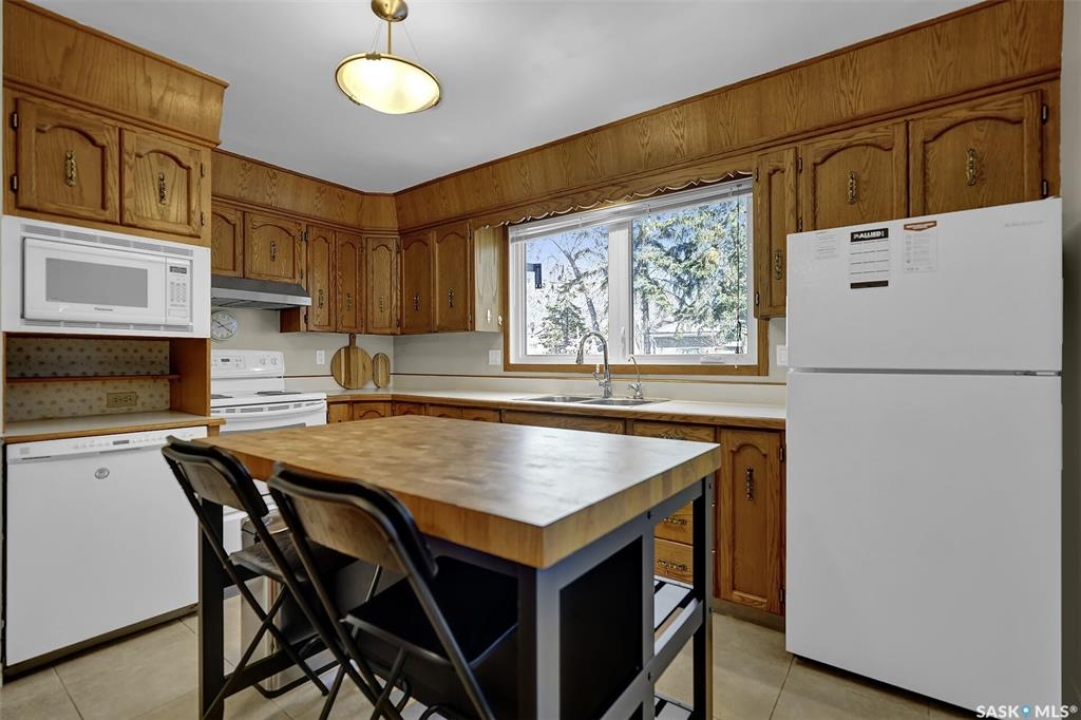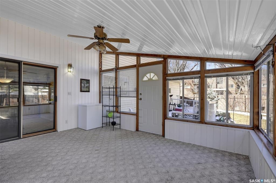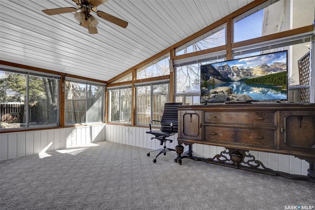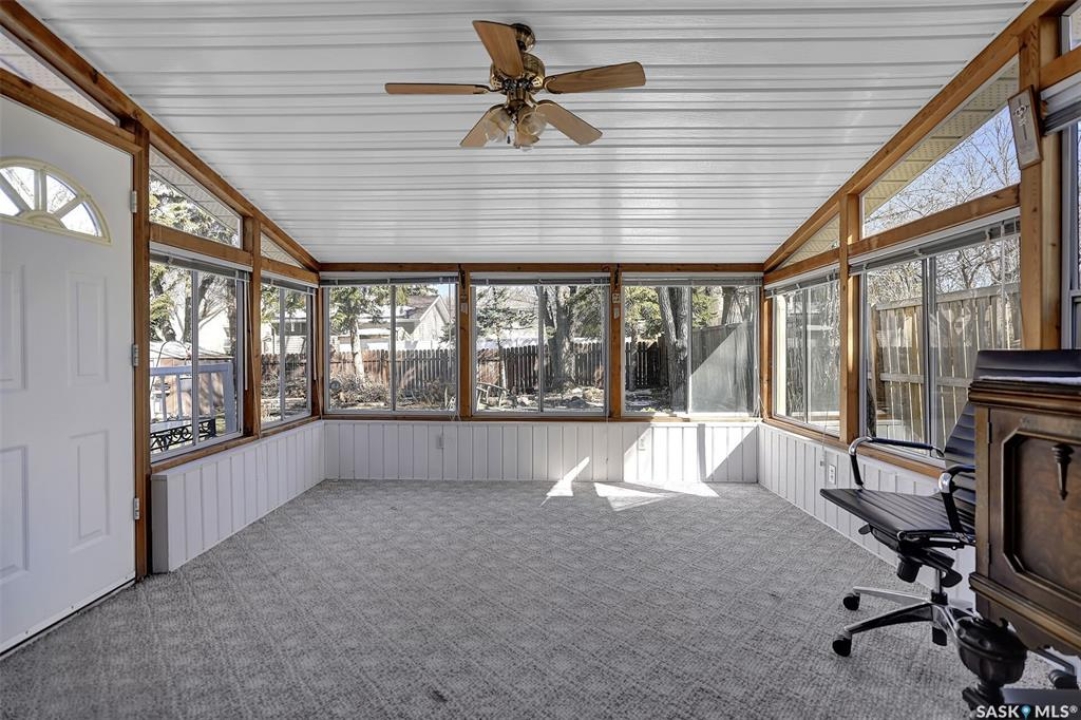 Well-maintained two-storey home situated on a large corner lot in the desirable Hillsdale neighborhood. Conveniently located close to the University of Regina, schools, and south-end amenities. This 4-bedroom, 3-bathroom home features a spacious living room with large windows that provide an abundance of natural light. The kitchen offers oak cabinetry with ample cupboard space and overlooks the private backyard. A generously sized dining area includes patio doors leading to a huge sunroom and provides easy access to the maintenance-free deck. The main floor is completed with a convenient 2-piece bathroom and direct entry to the attached garage. The fully developed basement features a recreation room with built-in cabinetry, a den/office or potential additional bedroom, high-end laminate flooring, and a natural gas fireplace. Additional upgrades include a newer 3-piece bathroom, sump pump, and reinforcement work. This home also boasts numerous upgrades, including most windows replaced, a high-efficiency furnace, maintenance-free decking (front and back), 30-year shingles (2011), and a replaced sewer line. Hardwood flooring is located beneath the carpet in the living room and dining room.