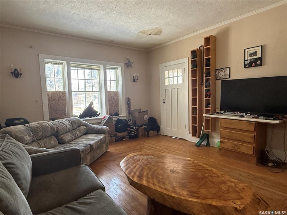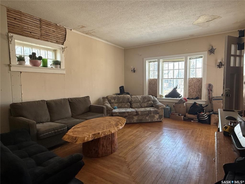 Welcome to 249 8th Ave W in Melville, SK. This 1922 home offers plenty of character and a chance to bring it back to life with your own ideas and updates. A covered front verandah welcomes you in and adds to the home's original charm. The main floor features a spacious living room, separate dining area, kitchen, and a 4-piece bathroom, along with two bedrooms. Original hardwood floors are found in the living and dining areas and add warmth and character. Upstairs, you'll find a third bedroom along with a bonus space that could serve as a home office, reading nook, or additional storage. Some projects have been started over time, and while there is still work to be done, the layout and features provide a solid starting point for someone looking to put in a bit of effort and make it their own. The basement is open and currently offers utility and storage space, with potential for future development if desired. Outside, the fenced yard (2022) includes a gazebo area for relaxing in the warmer months, back alley access for parking, and a 10 x 20 shed for additional storage. This is a home with a bit of history, and an opportunity for the next owner to pick up where things left off and create something that suits their style and needs. Updates include: natural gas water heater, bathroom reno, and shingles in 2021. The home is currently tenant occupied with 24 hours notice needed before showings.
