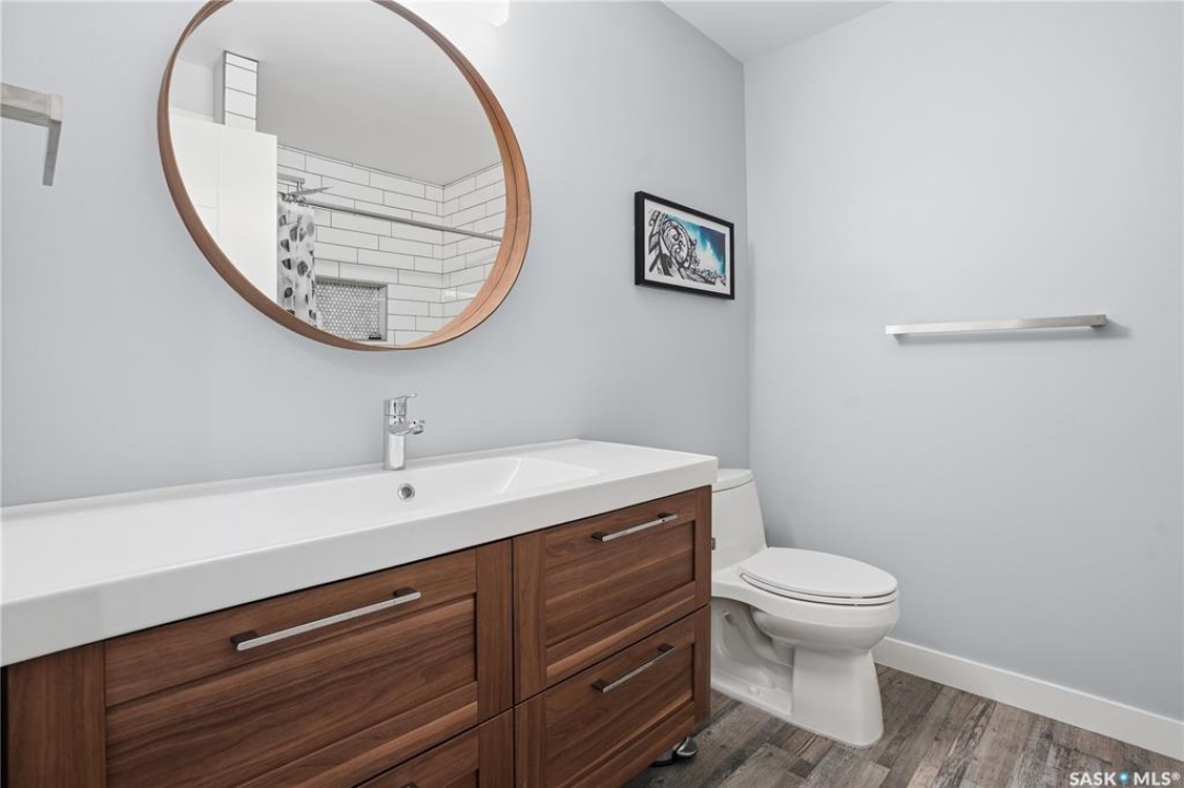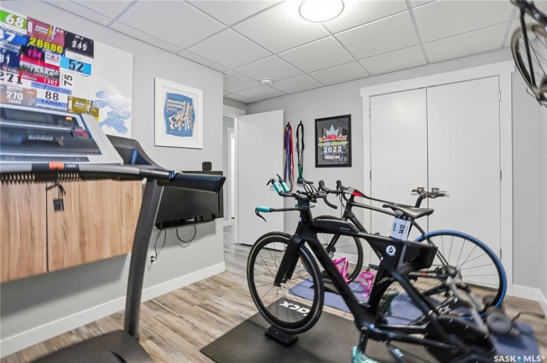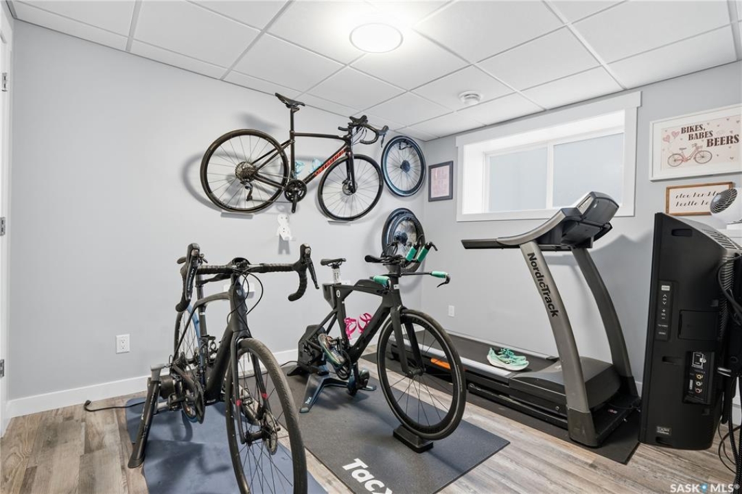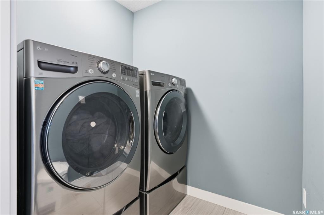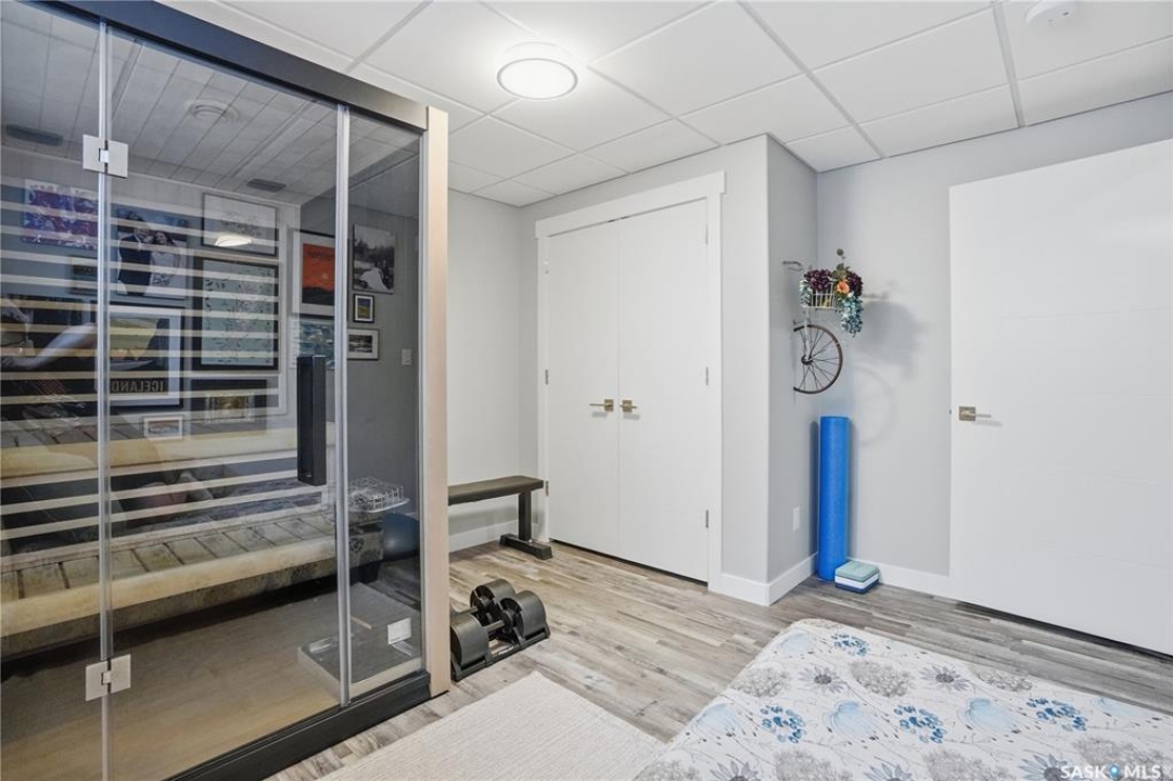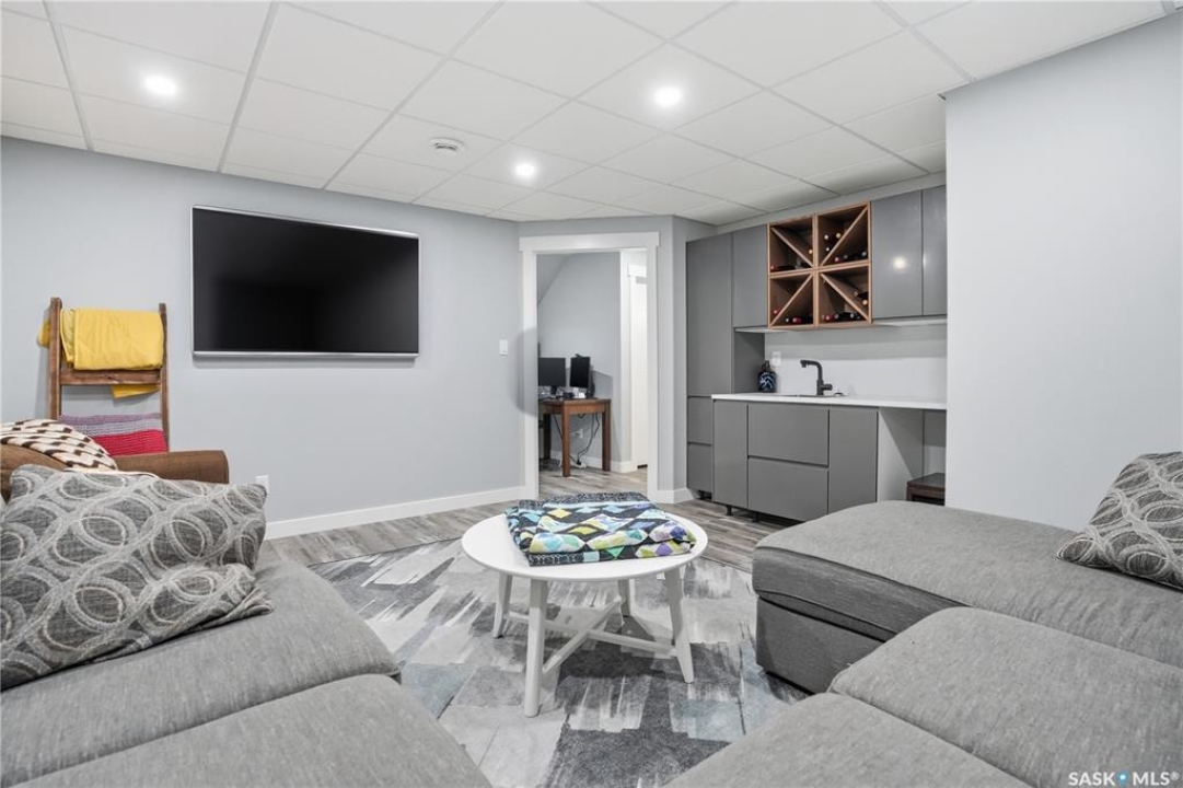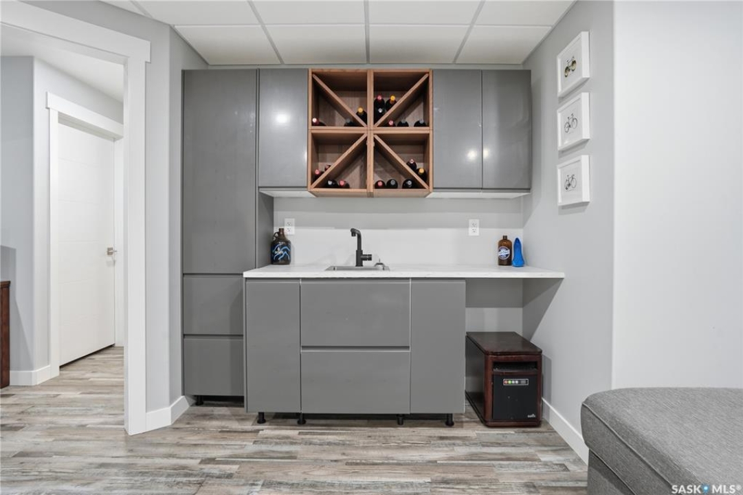 This custom modified bi-level was designed by Robinson Residential and built by Harmony Builders to a standard that's immediately apparent. If your family has outgrown your current home, this is worth a close look. The main level opens with a generously proportioned tiled entrance, direct garage access, and a large mudroom. Vaulted ceilings and an open concept layout draw in natural light throughout the day, flowing through the living area with laminate flooring, a natural gas fireplace, and a custom kitchen with large granite island, glass tile backsplash, under-cabinet lighting, and stainless steel appliances including a gas range. Two additional bedrooms on this level both include built-in closet shelving. Upstairs, the primary bedroom includes a large walk-in closet, in-ceiling speakers, plush carpet, and a hotel-inspired ensuite with heated tile floors, tiled walk-in shower, and oversized rain shower head. Second floor laundry with front-loading washer and gas dryer. The thoughtfully finished lower level adds an inviting rec and media room with wet bar, two additional bedrooms, and exceptional storage throughout. Construction highlights include an open web truss floor system, 2" exterior styrofoam insulation ($18k upgrade), and acrylic stucco, built for both durability and energy efficiency. Tankless water heater and water softener included. Outside: PVC fencing, eco turf, and a gazebo: low maintenance and designed for entertaining. 26 x 26 garage is insulated with Roxul for sound proofing. Triple exposed aggregate driveway with added value RV parking on the side. Walking distance to schools, parks, and the Joanne Goulet Golf Course.