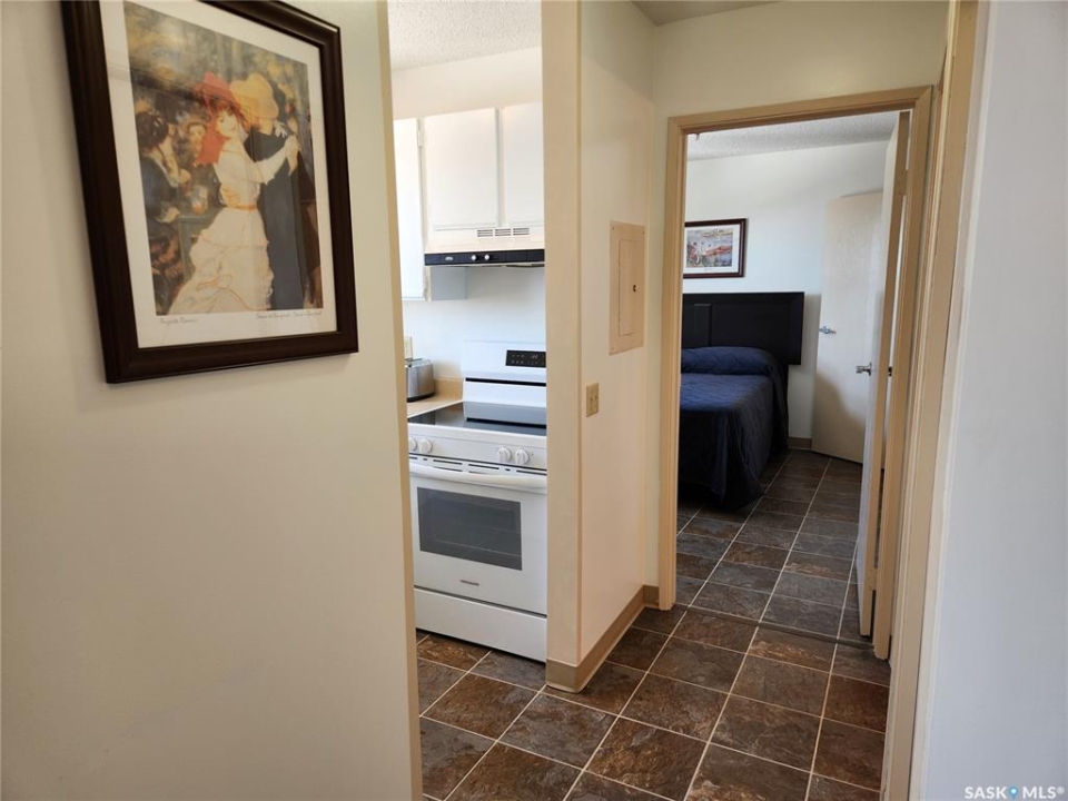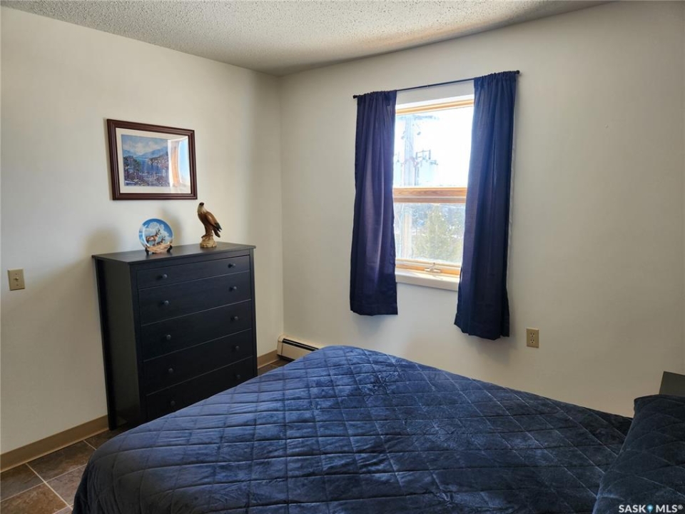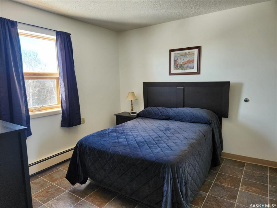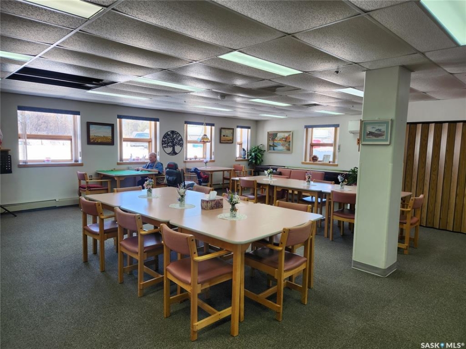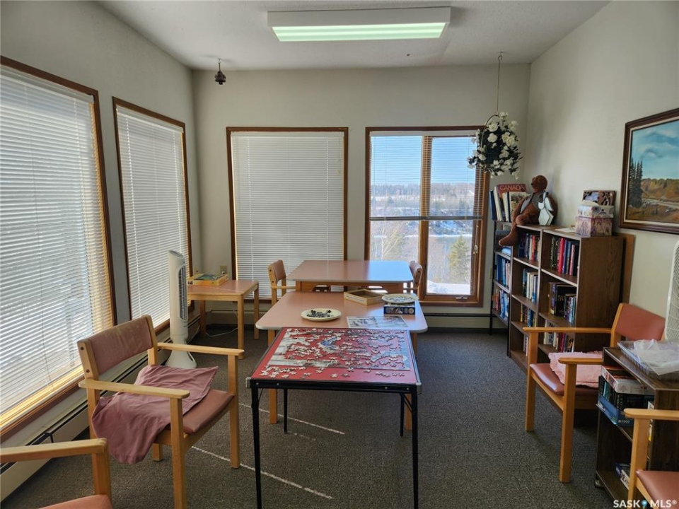 Welcome to this affordable and immaculate 1 bedroom condo in Nipawin offering peaceful West facing views of the beautiful Saskatchewan River. This well maintained unit has been thoughtfully updated with new lino flooring, modern light fixtures, and fresh paint throughout, creating a bright and inviting living space. Enjoy the convenience of free laundry facilities on every floor, along with an impressive range of amenities designed for comfort and community living. The third floor features a cozy library and an on site hair salon, while the main floor offers a games room with a pool table, a fully equipped kitchen with dining area, an exercise room, and a guest suite available for visiting family and friends. Step outside to a serene outdoor setting with mature trees, a BBQ patio area, and stunning river views-perfect for relaxing or entertaining. An excellent opportunity for affordable, low maintenance living in a quiet and welcoming environment. A parking space is conveniently located close to the main entrance. Call today to view.
