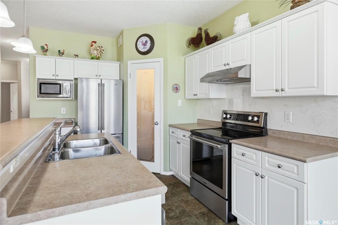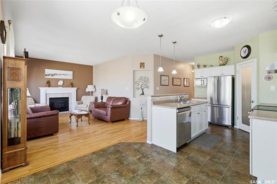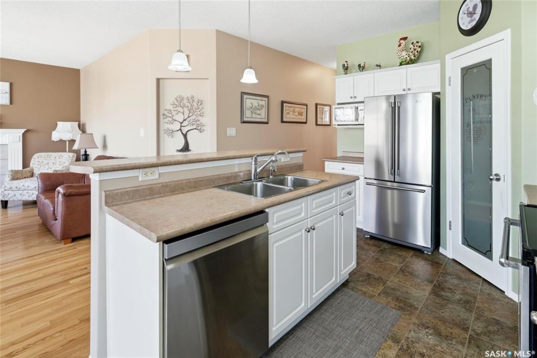 Welcome to 1655 Wingert Drive, a beautifully maintained 3-bedroom, 3-bathroom home located in the desirable Lakeridge neighbourhood. Lovingly cared for over the years, this home offers comfort, functionality, and inviting living spaces throughout. Step inside from the front door or from the attached garage into a spacious entryway with 9' ceilings that leads down the hall to an open-concept main living area. The living room features a cozy gas fireplace, hardwood floors, and a large picture window overlooking the stunning backyard. The kitchen is both stylish and practical, complete with white cabinetry, island, stainless steel appliances, and a corner pantry. Adjacent to the kitchen, the dining area includes French doors that open onto a two-tiered deck and a beautifully landscaped yard filled with perennials and mature grapevines—perfect for outdoor enjoyment. The primary bedroom offers a walk-in closet and 3-piece ensuite. A second bedroom, a 4-piece bathroom, and a versatile office/den complete the main floor. Downstairs, the spacious family room provides plenty of room to relax, entertain, or play. The basement also features a third bedroom, a 3-piece bathroom, a dedicated laundry room, and ample storage space including both a storage room and a utility room. This move-in-ready home combines thoughtful design with a warm, welcoming atmosphere—an excellent opportunity in a sought-after neighborhood.