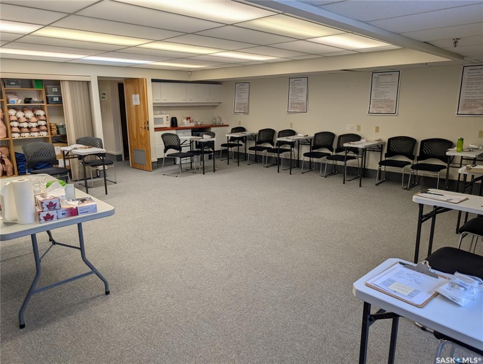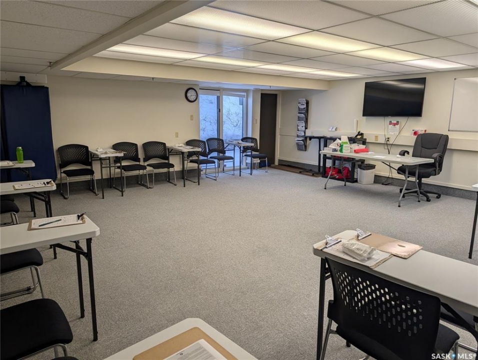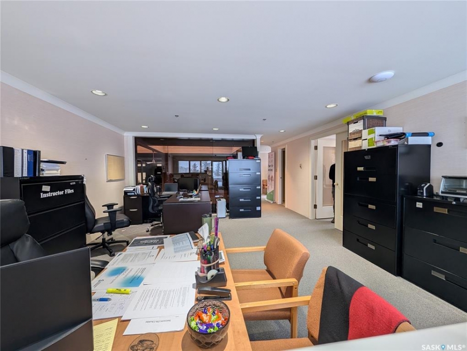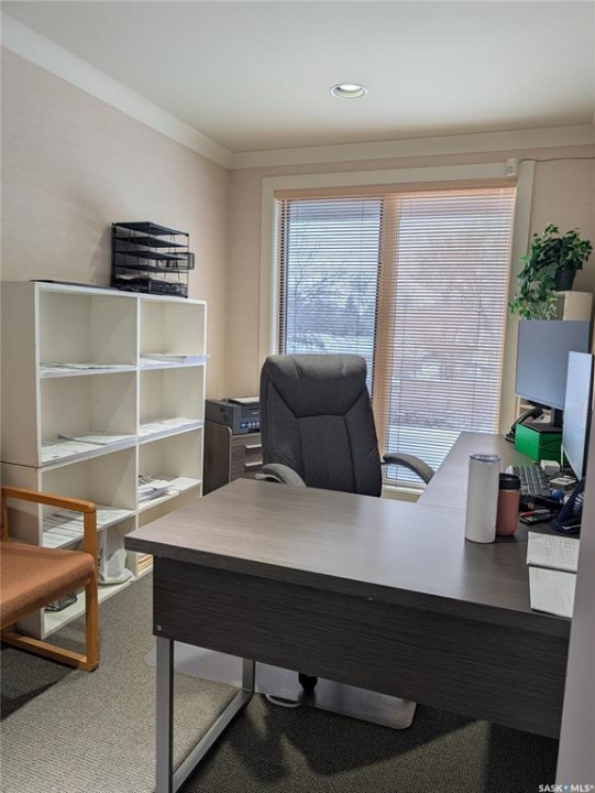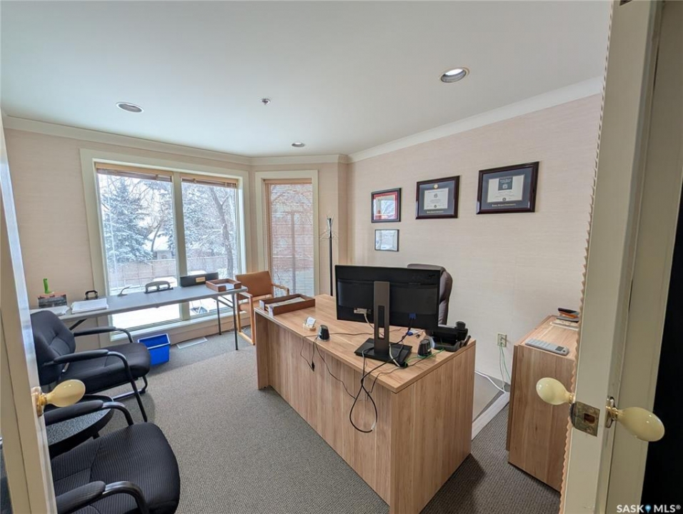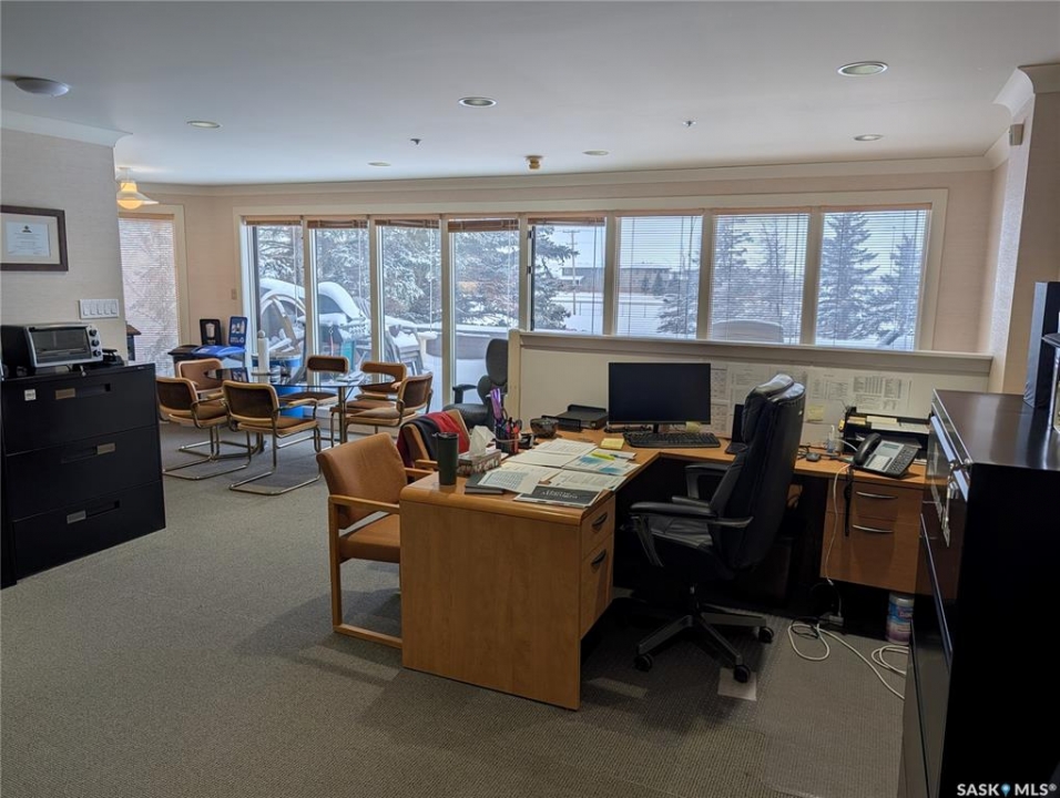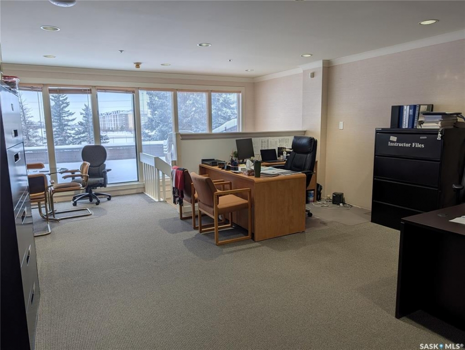 For Sale | 100-4010 Pasqua Street, Regina, SK 3,715 SF Suburban Professional Office Space with Private West-Facing Patio Rare opportunity in a well-maintained 8-unit concrete condominium building Total 3,715 SF across three levels: – Main floor (1,353 SF): Reception area, 2 private offices, open-concept work space – Second floor (906 SF): Open office area, full kitchenette, 4-piece washroom, boardroom, and private west-facing exterior deck – Lower level (1,456 SF): Client waiting area, additional office space, storage room, washroom, and separate exterior access Ideal for medical, dental, legal, or professional services requiring client waiting areas and support staff Neighbouring tenants include dentists, medical professionals, and other quality office users Three (3) electrified parking stalls Possession to be determined Zoning: ML Year Built: 1986 Perfect for professional users seeking a flexible, functional, and client-friendly office environment in a prime suburban location.