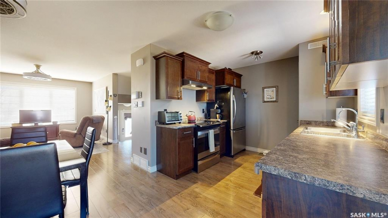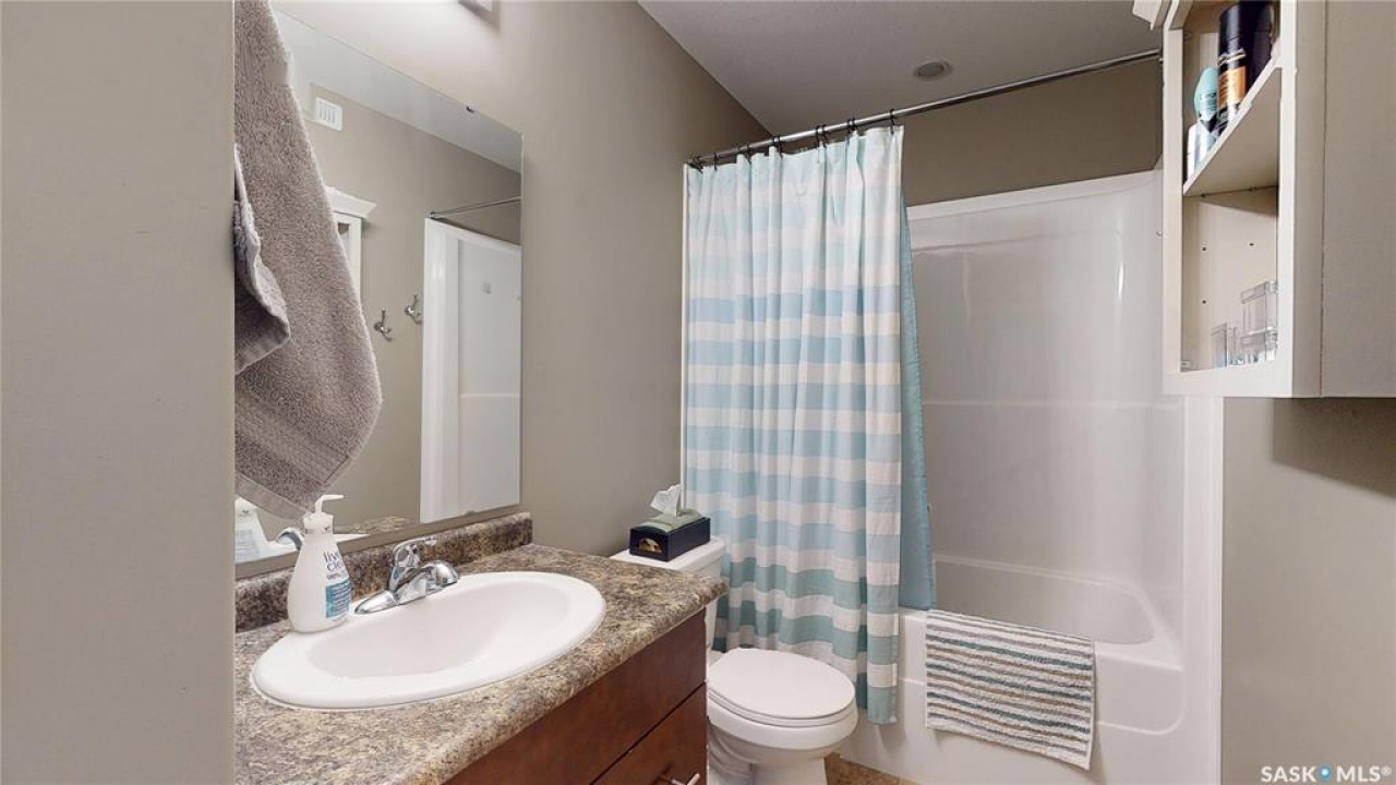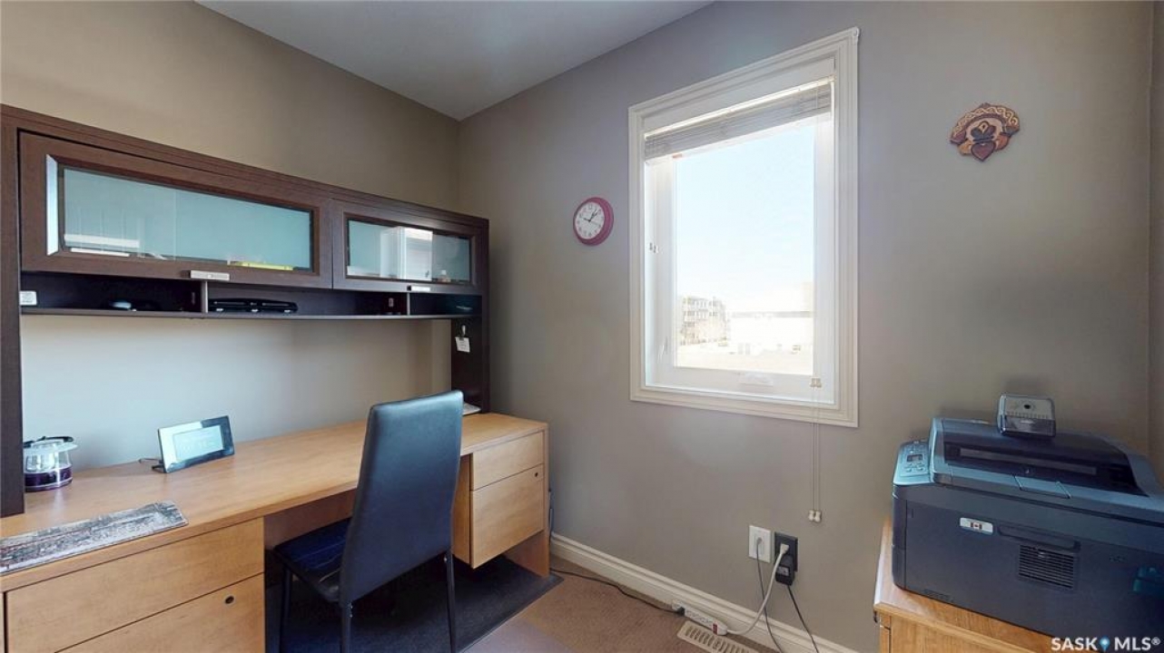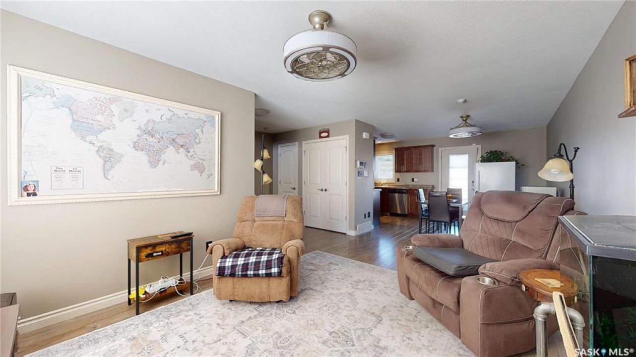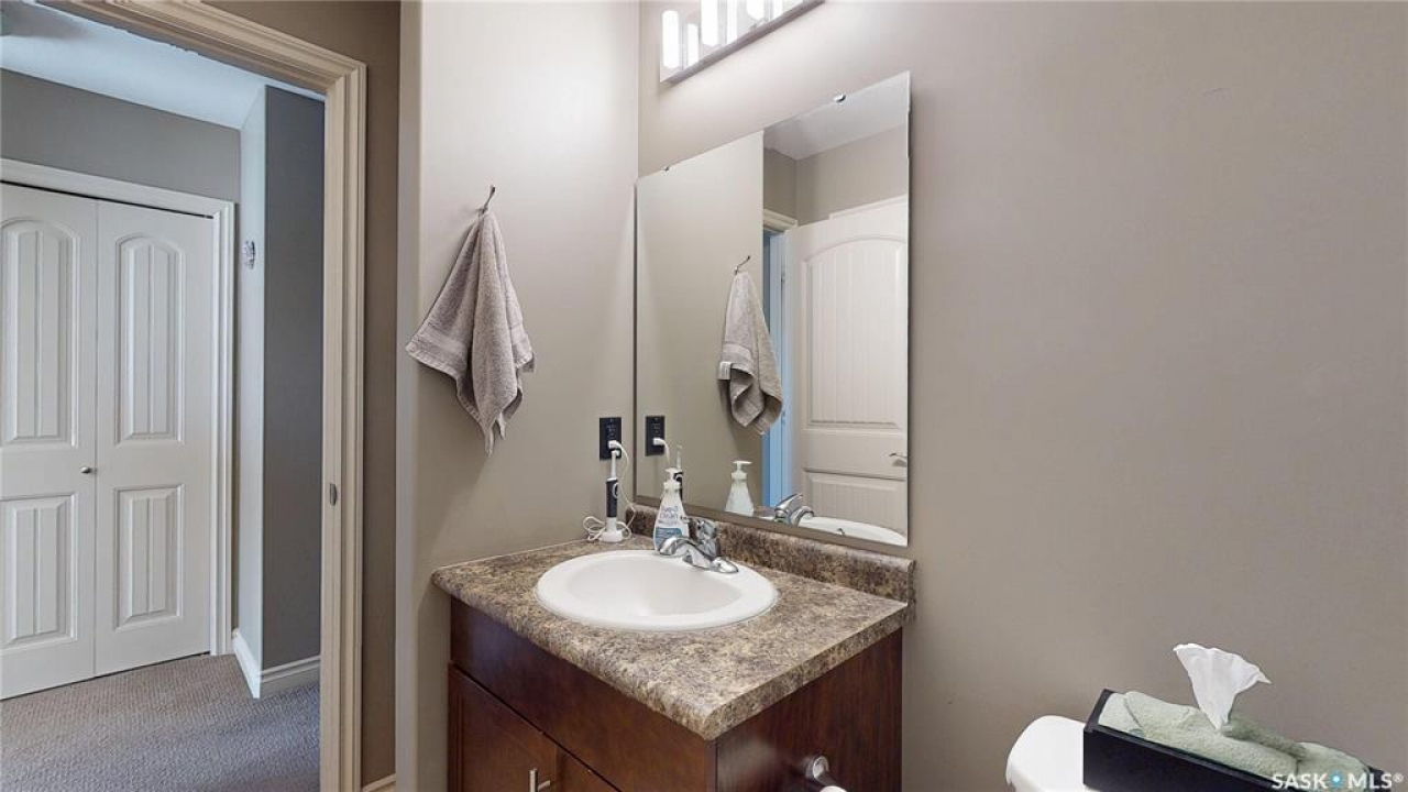 Welcome home to this beautifully maintained 1,176 sq. ft. two-storey townhome, complete with a double detached garage and, best of all, no condo fees, ideally situated in the highly desirable neighbourhood of Harbour Landing. Thoughtfully designed for comfortable living, the main floor features a bright and inviting open-concept layout. The living area is warm and welcoming, with laminate flooring, and flows seamlessly into a well-appointed kitchen with stainless steel appliances and a convenient pantry. The spacious dining area offers direct access to the backyard, making it perfect for everyday living and entertaining. Step outside to enjoy summer BBQs and relax on the patio in the beautifully landscaped yard. Upstairs, you'll find a versatile flex space on the landing, along with three bedrooms and the added convenience of second-floor laundry. The primary bedroom has direct access to a Jack-and-Jill full bathroom that also serves the two additional bedrooms. The fully developed basement provides even more living space, including a cozy family room, a full bathroom, ample storage under the stairs, and a utility room. Located just steps from Harbour Landing Elementary School, parks, walking paths, and a wide range of amenities, this home offers both convenience and a strong sense of community. Move-in ready and meticulously cared for, this is an excellent opportunity to own a fantastic home in one of Regina's most sought-after neighbourhoods.