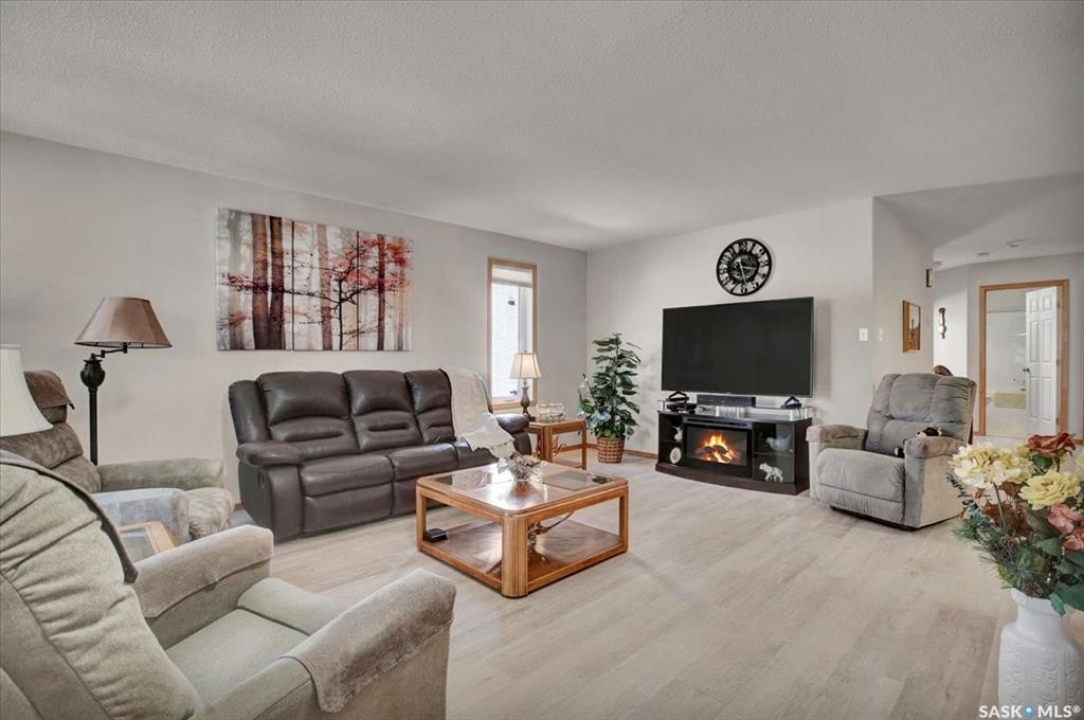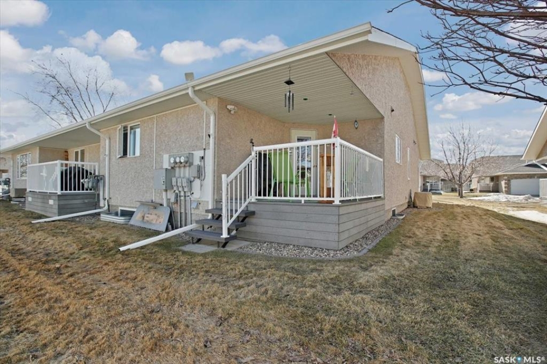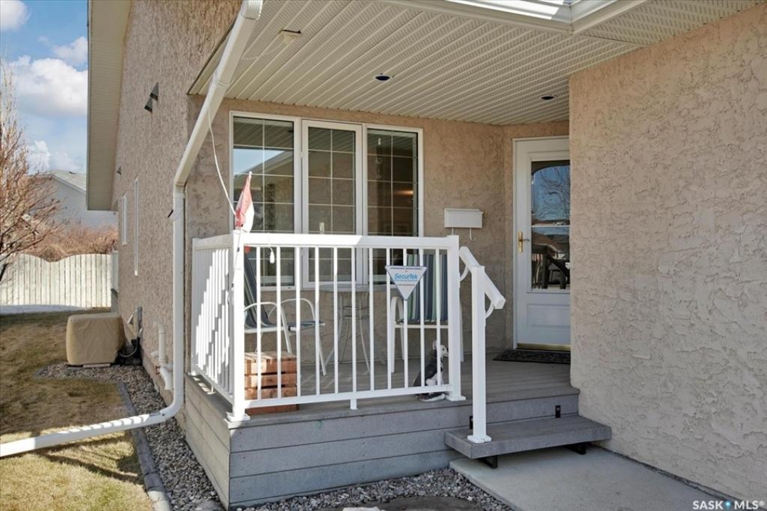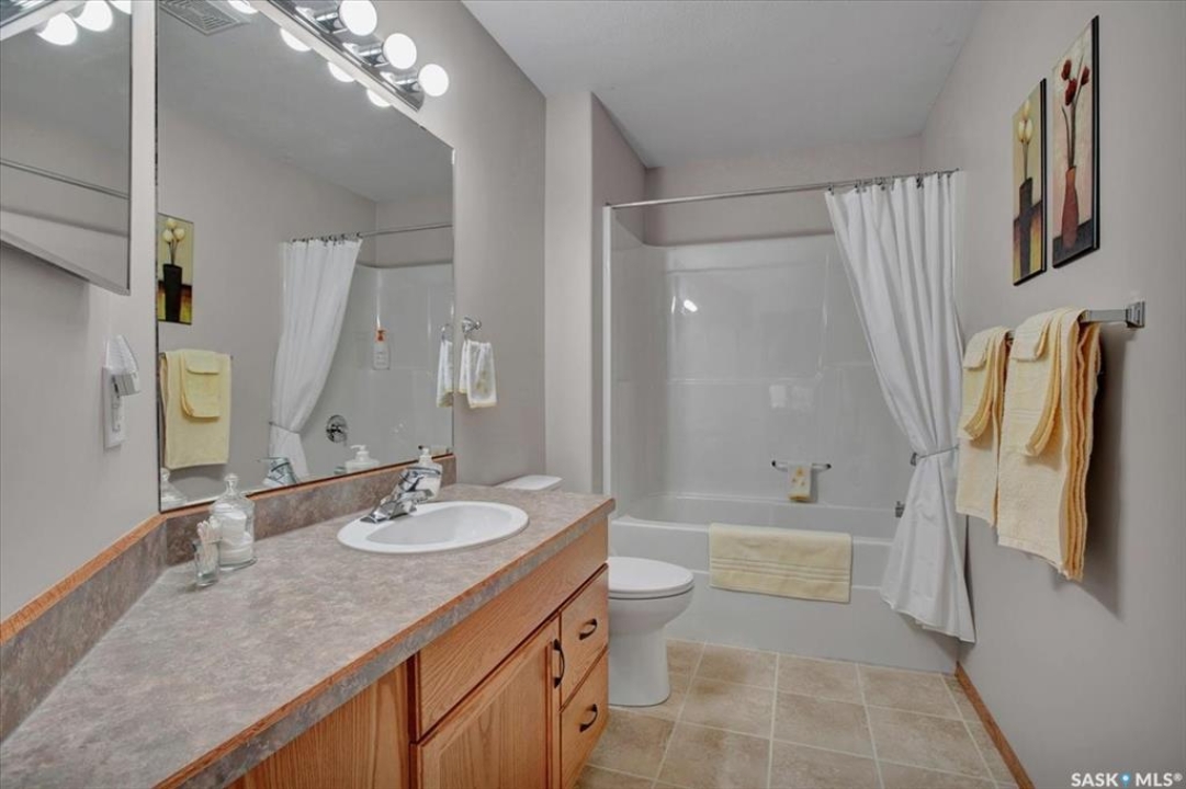 This rare bungalow-style end unit condo in Warman offers an exceptional combination of space, style, and low-maintenance living. With just over 1,200 square feet, three bedrooms, and three bathrooms, this home is thoughtfully designed for comfort and functionality. The timeless brick and stucco exterior is complemented by composite decks at both the front and back, providing inviting outdoor spaces to relax and enjoy. Inside, the main floor features an oversized living room that flows seamlessly into a beautifully appointed kitchen, complete with an abundance of quartz countertops, a classic white tile backsplash, and ample cabinetry. The kitchen opens into a spacious dining area, creating an ideal setting for both everyday living and entertaining. The primary bedroom is generously sized, while a second bedroom, a full four-piece bathroom, and a convenient two-piece bath complete the main level. The fully developed basement adds significant additional living space, including a large family room, a third bedroom, a versatile office, a three-piece bathroom, laundry, and plenty of storage. Upgrades include laminate flooring throughout the main living areas, enhancing both durability and style. The attached two-car garage is immaculate, featuring finished walls and epoxy flooring, making it as functional as it is visually appealing. Enjoy the numerous walking paths around the lake just minutes away. This well-maintained end unit offers the ease of condo living without sacrificing space, making it a truly desirable property in a sought-after Warman location. Semi retirement and retirement living with ease as the condo fees cover snow removal and lawn care. Call today for your private showing of this bungalow style condo in a quiet and peaceful neighbourhood in Warman.