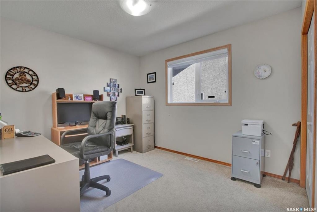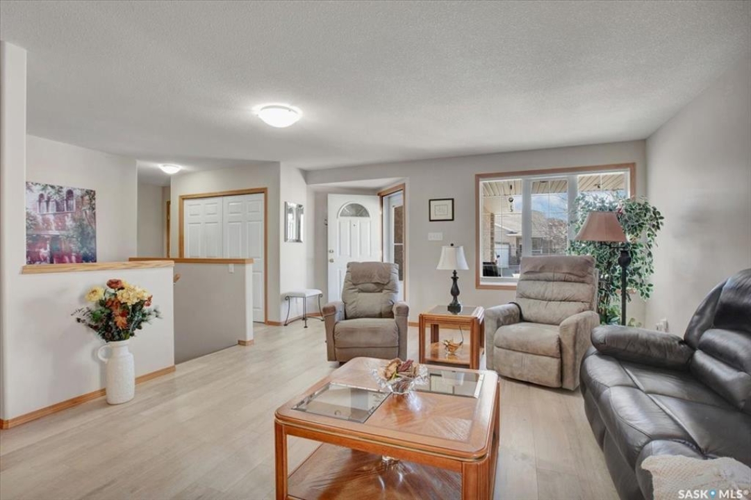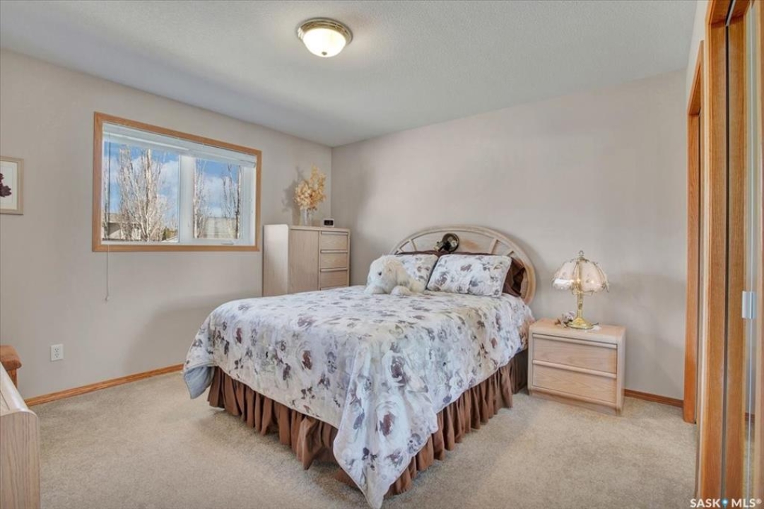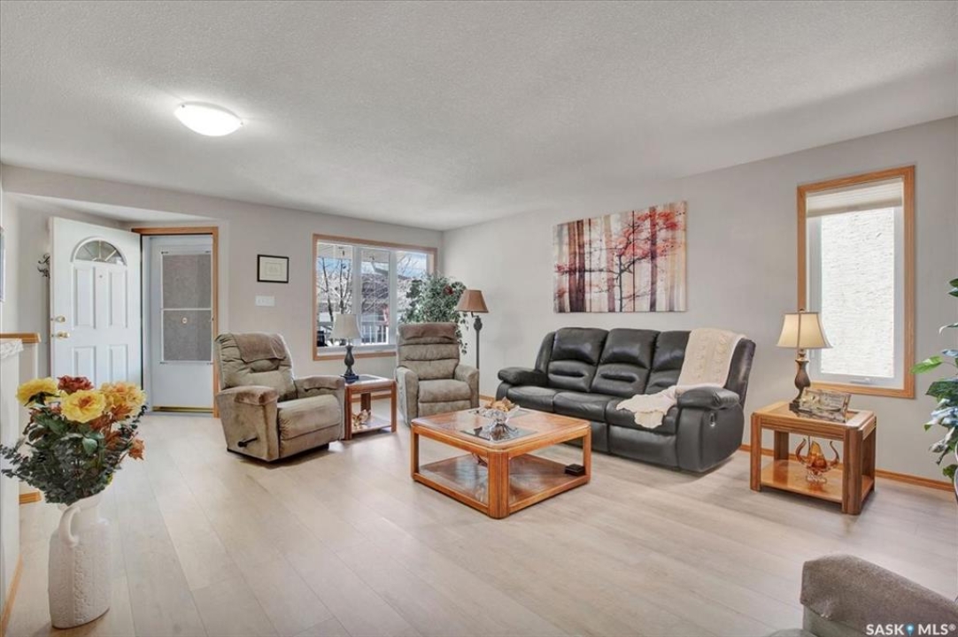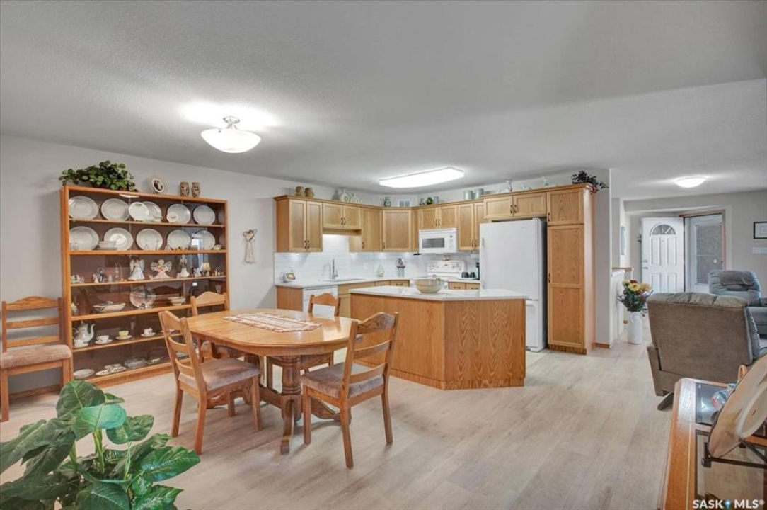 This rare bungalow-style end unit condo in Warman offers an exceptional combination of space, style, and low-maintenance living. With just over 1,200 square feet, three bedrooms, and three bathrooms, this home is thoughtfully designed for comfort and functionality. The timeless brick and stucco exterior is complemented by composite decks at both the front and back, providing inviting outdoor spaces to relax and enjoy. Inside, the main floor features an oversized living room that flows seamlessly into a beautifully appointed kitchen, complete with an abundance of quartz countertops, a classic white tile backsplash, and ample cabinetry. The kitchen opens into a spacious dining area, creating an ideal setting for both everyday living and entertaining. The primary bedroom is generously sized, while a second bedroom, a full four-piece bathroom, and a convenient two-piece bath complete the main level. The fully developed basement adds significant additional living space, including a large family room, a third bedroom, a versatile office, a three-piece bathroom, laundry, and plenty of storage. Upgrades include laminate flooring throughout the main living areas, enhancing both durability and style. The attached two-car garage is immaculate, featuring finished walls and epoxy flooring, making it as functional as it is visually appealing. Enjoy the numerous walking paths around the lake just minutes away. This well-maintained end unit offers the ease of condo living without sacrificing space, making it a truly desirable property in a sought-after Warman location. Semi retirement and retirement living with ease as the condo fees cover snow removal and lawn care. Call today for your private showing of this bungalow style condo in a quiet and peaceful neighbourhood in Warman.