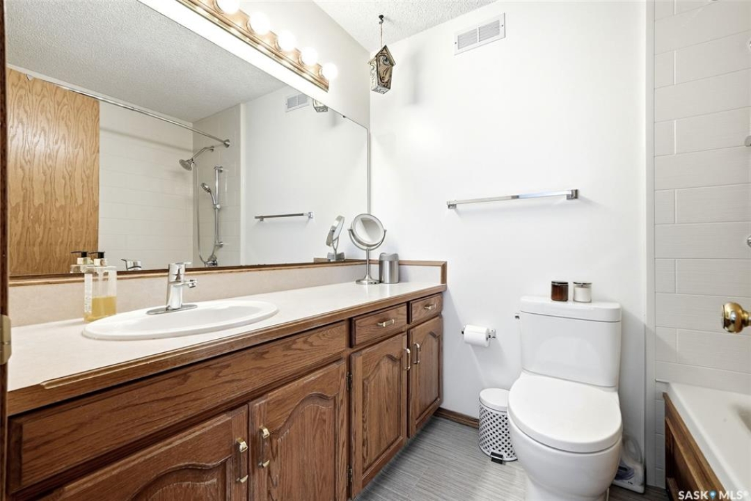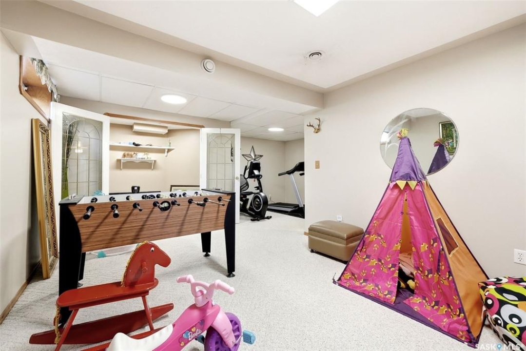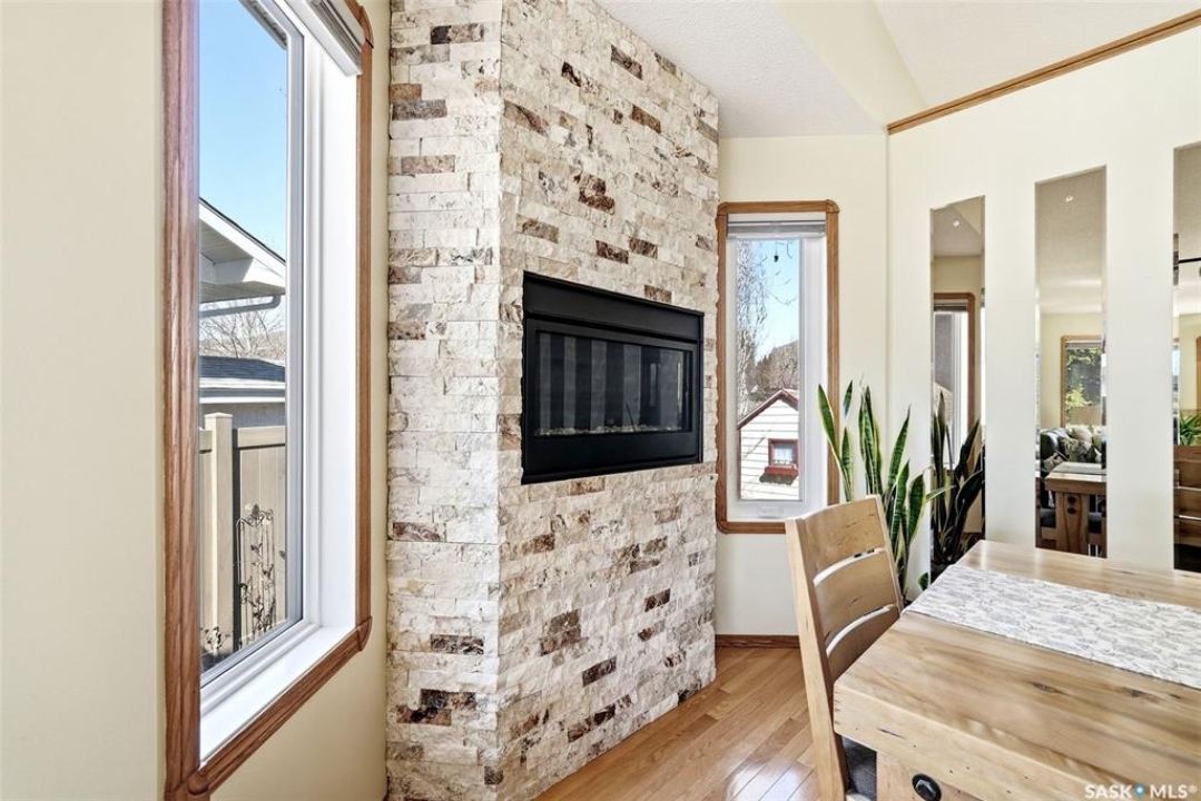 Welcome home to 3524 Canterbury Place E nestled on a 8558sq/ft pie shaped lot is perfectly tucked into a beautiful bay in our Windsor Park neighborhood! You can just feel the good vibes this home has inside & out! Offering a spectacular fully developed floorplan with 3 bedrooms (+ office on the main) & 3 bathrooms with quality, thoughtful updates throughout! Welcomed by trendy curb appeal, step into a dedicated foyer w/bench opening into a vaulted semi-open concept space filled w/natural light from south-west facing windows. Warm hardwood flooring flows from the spacious living rm into the dining rm accented by a gas fireplace w/stone surround. Enjoy a kitchen w/ a skylight, pantry, stone countertops/backsplash, w/ room for breakfast table, desk space & direct access to the composite deck & landscaped backyard! Adjacent is an office w/built in (could be converted to a 3rd bdrm up). The primary bdrm offers a WIC & ensuite w/jet tub! You'll love the sun tunnel that illumines the hallway to the laundry rm, & modernized 3PCE bath w/two medicine cabinets (SO CUTE!). Downstairs the cozy rec room features a gas fireplace, built in cabinet & two nook-like areas for hobbies! Plus, a den space, a bedroom w/closet (window is new but does not meet egress), dedicated storage rooms, & a bathroom w/spa-like tiled walk-in shower! Outside there are numerous perennials, mature trees/shrubs, playhouse for the kiddos, patio area & a finished 16x20 workshop w/power, new door (manual), + 220 service! Let's not forget the dbl attached garage is finished, heated w/direct access to the home, parking for an RV/car enthusiast! Recent upgrades: Triple pane windows, Shingles (home+workshop), Garage Doors, HRV System, Bathrooms, Repour front driveway, LED Lighting inside/Paint, & More! Walkable to the Sandra Schmirler Leisure Centre+Spray Pad, Windsor Park, & St Gabriel School! This could be your new home sweet home!
