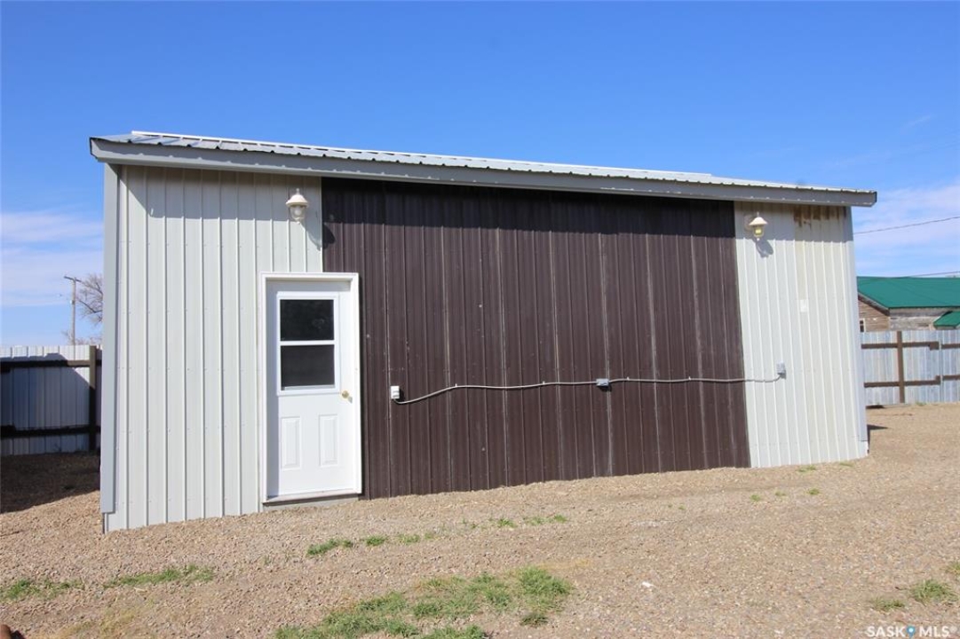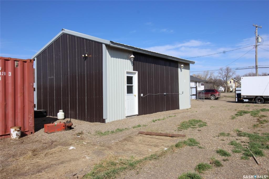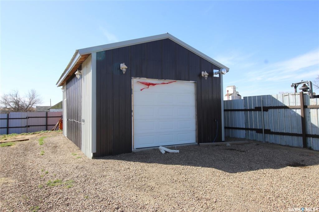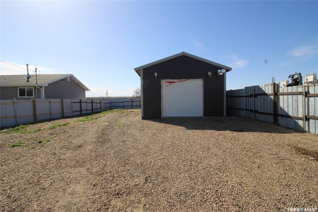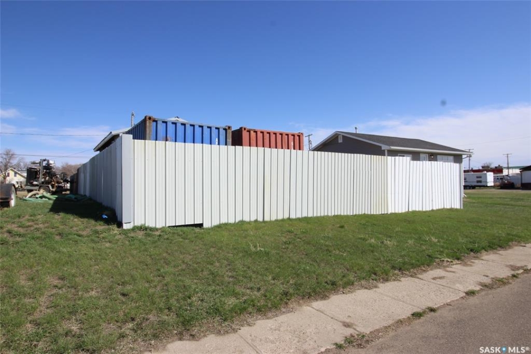 For sale, a large fenced compound with a newly constructed garage. The site is a 50'x120' lot that has been fully fenced with metal fencing and a chain link gate from the back lane. The garage on site is 26'x18' with a concrete pad. The garage is fully insulated and finished on the inside with fireproof drywall and tape and has been primed and painted. The garage is fully electrified with 120/240 Volt service and the building has various 30amp and 50amp outlets. Set up for an overhead door opener (included) for the door that is 9' x8'. Shop has a gas overhead heater. The shop has a completely metal exterior with yard lighting on the building and solar lighting through the yard. The entire lot has been leveled with crushed rock. The two 20' Sea Cans are not included in the purchase, and any other belongings on the property will be moved prior to possession