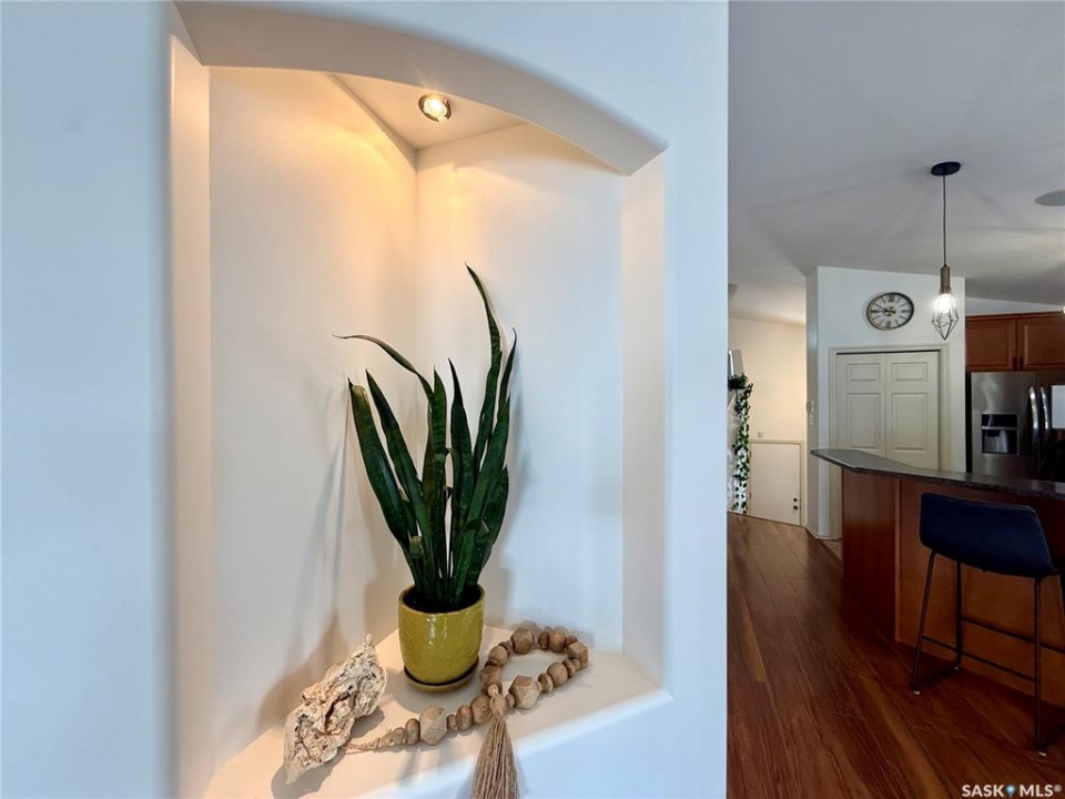 Welcome to this beautifully crafted executive modified split level, perfectly situated in one of the community's newer subdivisions. Offering 1,504 sq ft above grade, this thoughtfully designed home blends style, comfort, and functionality for modern family living. The unique layout features a private primary retreat on the upper level, creating a peaceful and spacious escape, while two well-appointed bedrooms on the main floor and two additional bedrooms in the fully developed basement provide plenty of room for family and guests. With **five bedrooms in total—an uncommon and highly desirable feature, as four-bedroom layouts are more typical—**this home offers exceptional flexibility for growing families, guests, or home office space. At the heart of the home, the open-concept kitchen flows seamlessly into the dining and living areas—ideal for entertaining or everyday life. The kitchen also features built-in ceiling speakers, enhancing the space whether you're hosting or enjoying a quiet evening at home. You'll appreciate the added comfort of heated tile floors in the kitchen and bathrooms, along with three fireplaces throughout the home (two electric and one gas), creating warmth and ambiance in every season. The exterior showcases attractive stucco and cultured stone, delivering excellent curb appeal. Step outside to a beautifully landscaped yard that has been meticulously maintained, offering a perfect outdoor space to relax or entertain. The 24' x 24' heated garage adds both convenience and practicality. Additional updates include shingles replaced two summers ago, providing peace of mind for years to come. Located close to MC Knoll Elementary School and St. Michael's French Immersion School, this home offers an ideal setting for families seeking quality education and a desirable neighborhood. This is a rare opportunity to own a move-in ready executive home in a prime location—where comfort, quality, and lifestyle come together.