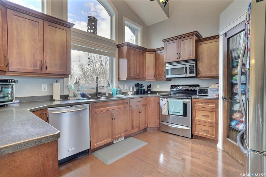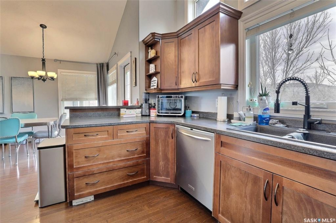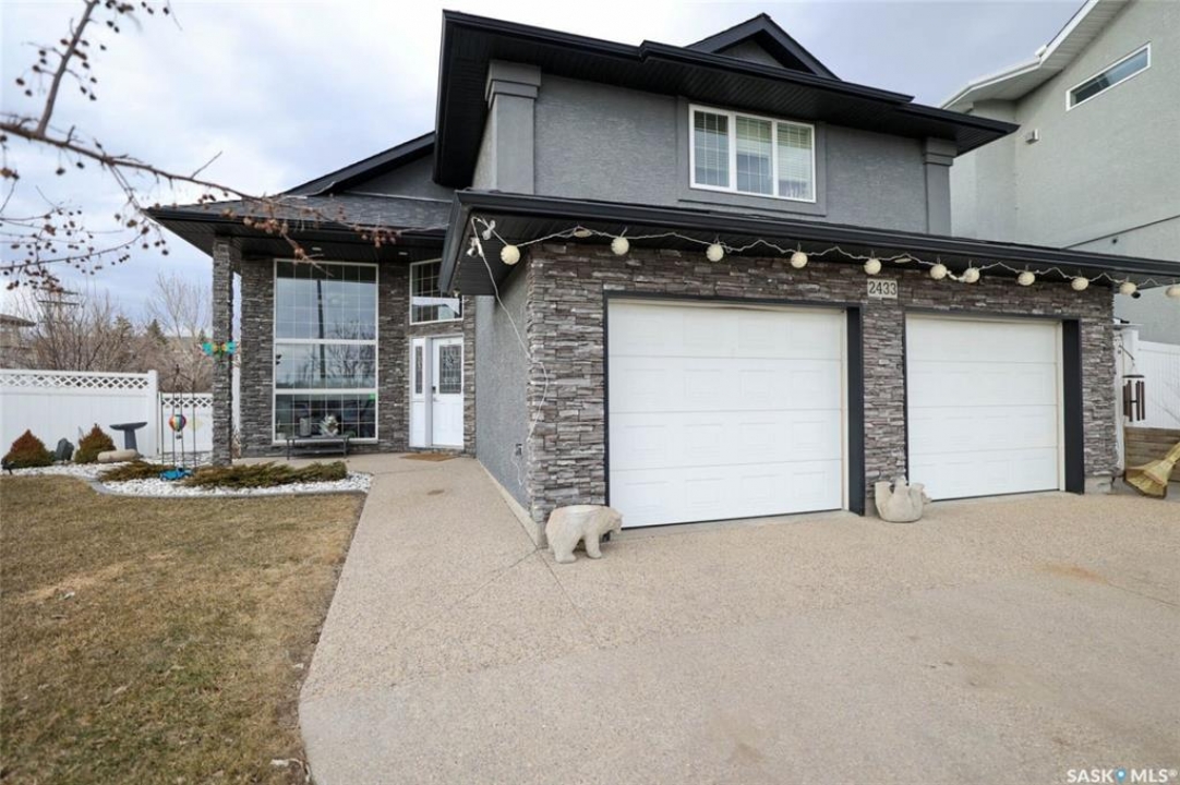 Welcome to 2433 Jameson Crescent in the sought-after Windsor Park neighborhood. This well-maintained 4-bedroom, 3-bathroom bi-level offers a bright, open-concept layout and is ideally located within walking distance to parks, schools, and a variety of amenities—perfect for a growing family. A spacious foyer provides a warm welcome into the home. The main floor features vaulted ceilings and hardwood flooring throughout the living room, dining area, and kitchen. The kitchen is both functional and inviting making it ideal for everyday living and entertaining. Offering maple cabinetry, an abundance of counter space and a walk in pantry and full appliances. Garden doors from the dining area that lead to a deck and fully landscaped yard. Two generously sized bedrooms, one with a murphy bed which is included, and a 4-piece bathroom complete this level. Expansive windows throughout flood this home with an abundance of natural light. The upper level is dedicated to the private primary suite, featuring a large walk-in closet and a spa-like bath offering a corner soaker tub, five foot shower, and oversized vanity. The fully developed basement includes oversized windows that provide an abundance of natural light. This level offers a spacious rec room with a gas stove fireplace, an additional bedroom, a 4-piece bathroom, and a utility/storage area. The double attached garage is insulated and heated, and the triple driveway provides extra parking for additional vehicles or a trailer. The fully landscaped yard includes a large side yard with space for family activities, along with a deck with composite decking and glass railing with stairs leading to the lower patio—ideal for outdoor enjoyment. Additional features include pile construction and original builder drawings.