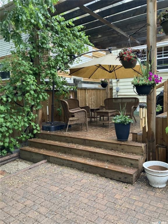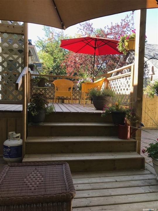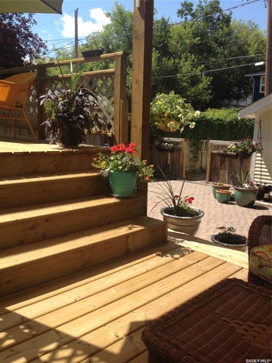 Outdoor: Deck, Fenced, Lawn Front, Patio, Trees/shrubs