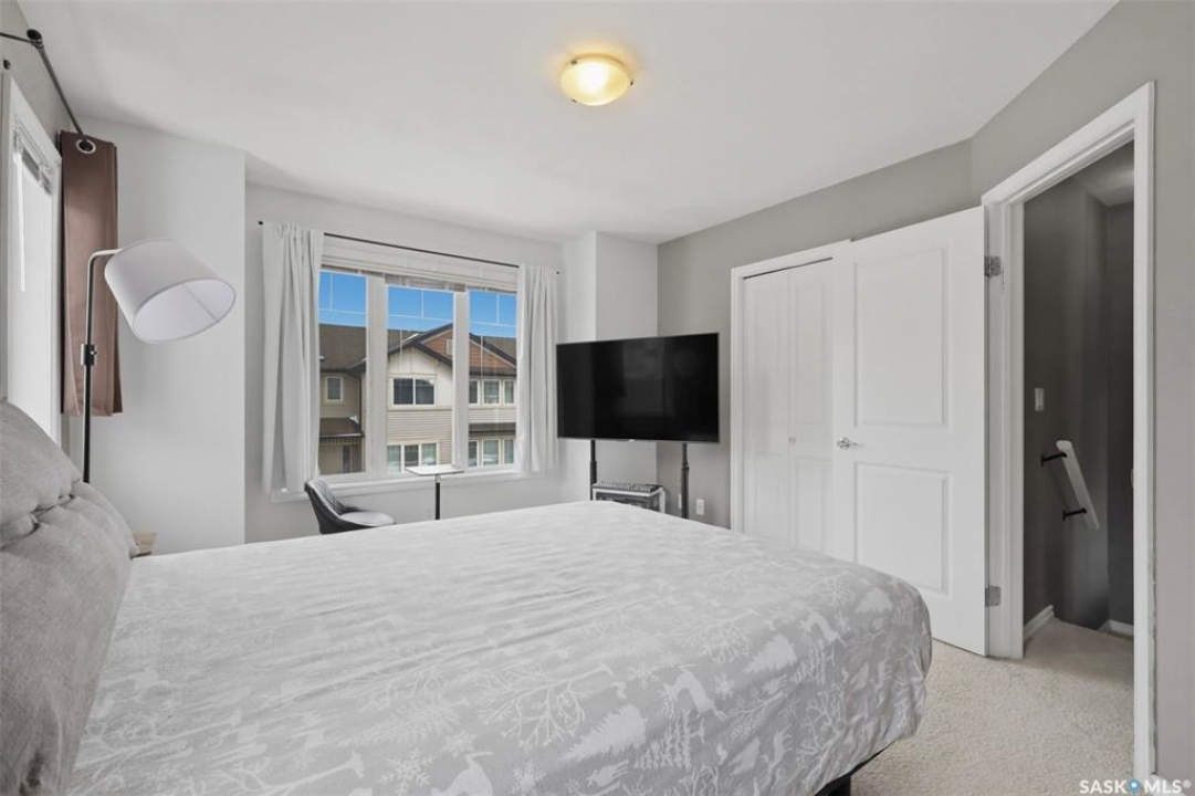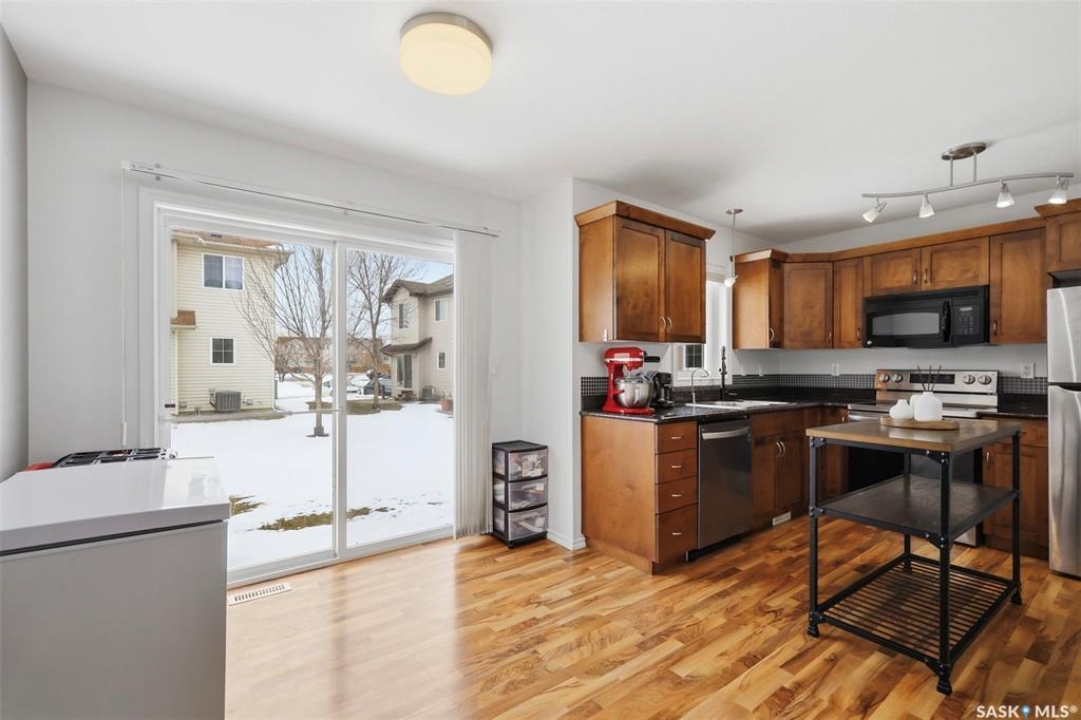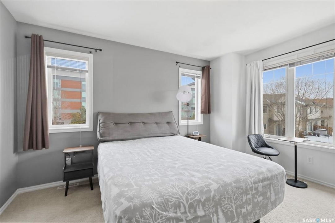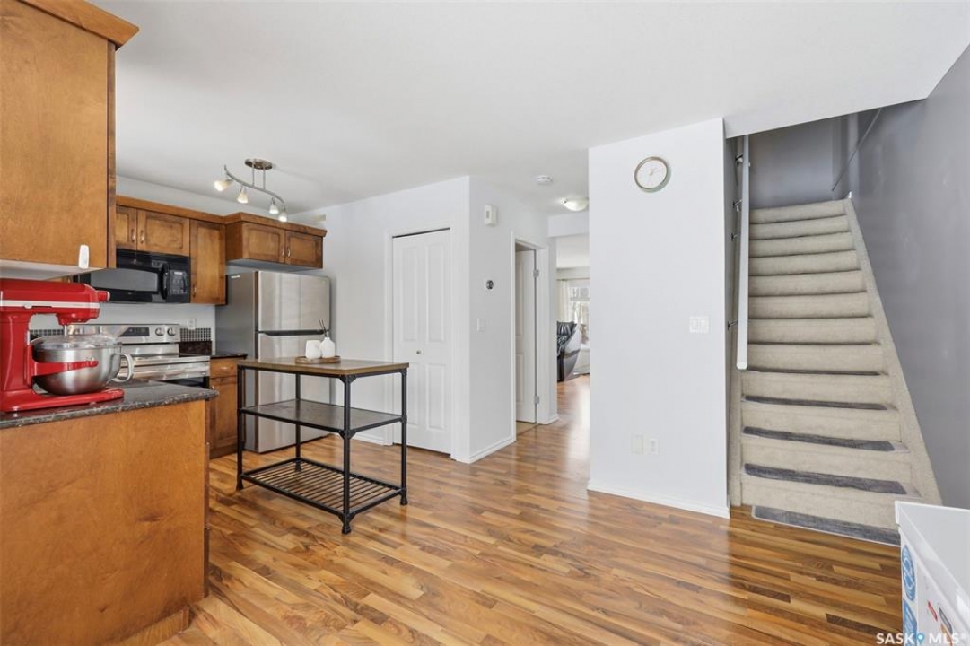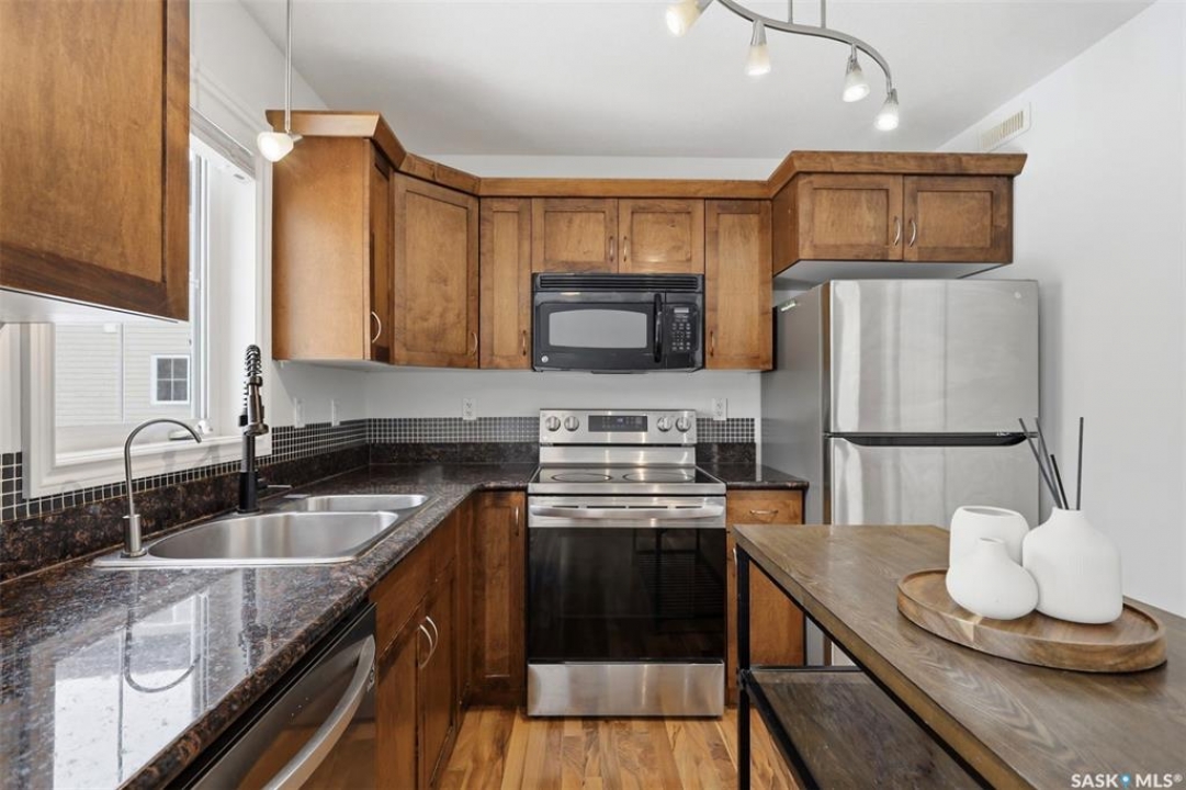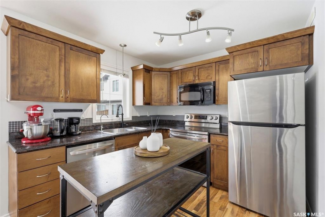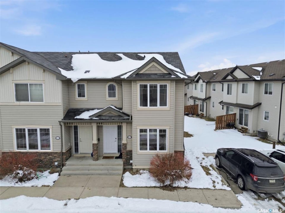 Welcome to 303 Slimmon Place unit 205—an upgraded, well-located end-unit townhouse offering three bedrooms, two bathrooms, and two electrified parking stalls. This bright corner unit features additional windows that flood the living room, kitchen, and upper bedrooms with natural light. The main floor presents a functional layout with a spacious living room, dining area, front foyer, and a well-appointed kitchen complete with granite countertops, newer stainless steel appliances, ample cabinetry, pantry and durable laminate flooring throughout, along with a convenient two-piece bathroom. Upstairs, you'll find three generously sized bedrooms, a four-piece bathroom, and a large primary bedroom with a walk-in closet. The fully developed basement provides a versatile rec room, office area, and a sizeable utility/laundry room with additional space suitable for a gym, study, or extra storage. Notable upgrades include a furnace and central air conditioning (2021), washer (2023), dryer (2021), and stove, dishwasher, and fridge (2023), light fixtures (2025), along with smart home features such as Nest thermostat and smart smoke/carbon monoxide detector. With limited availability in this desirable area, this well-maintained home presents an excellent opportunity—contact today to schedule your private viewing.