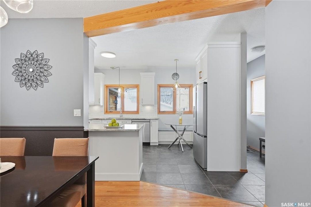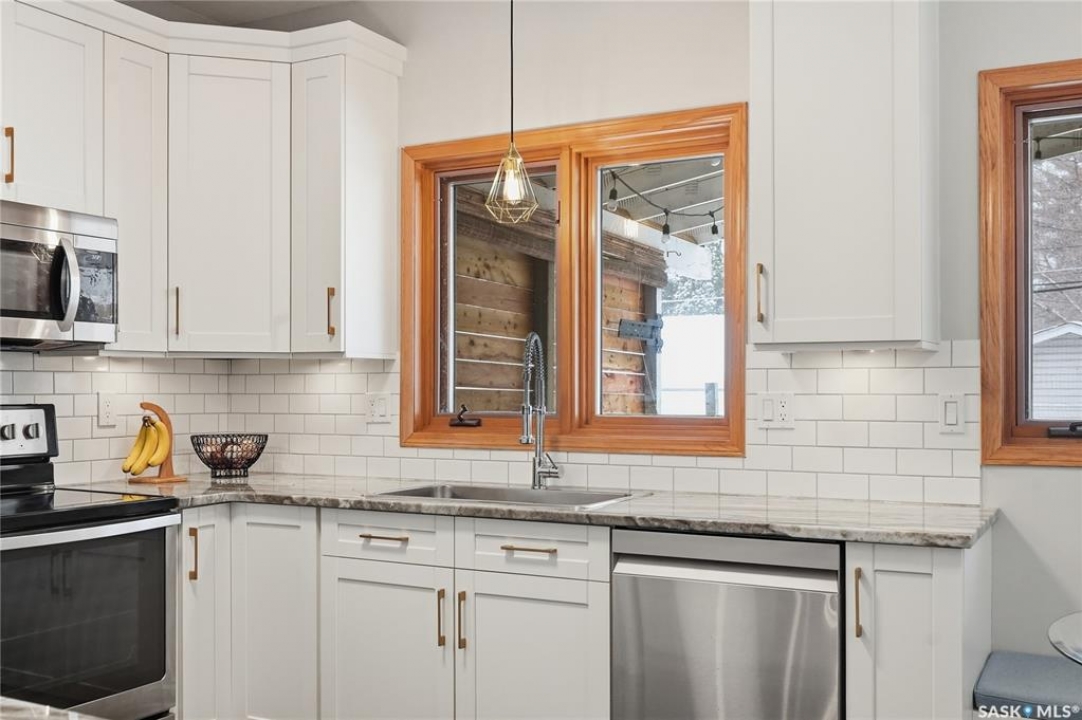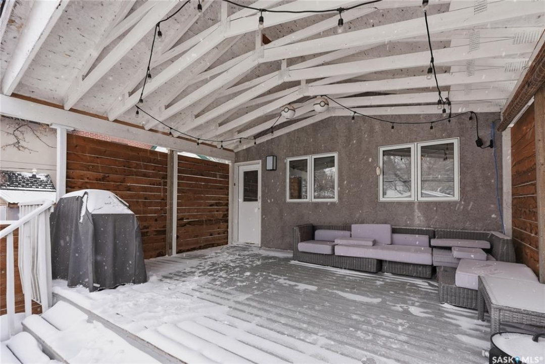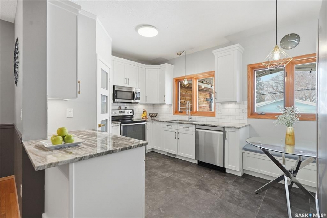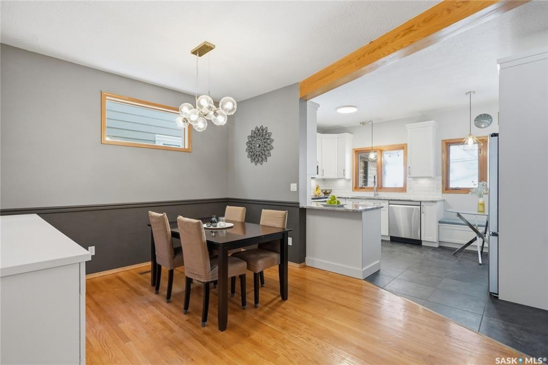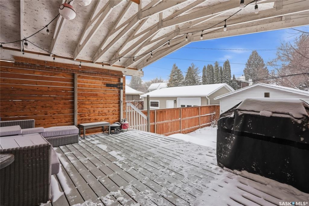 This 5 bed + den, 4 bath home sits across from President Murray Park, surrounded by natural pines and perfect for family living. Close to the U of S, Brunskill School, Meewasin trails, the river, and within walking distance to Broadway and Downtown. With 2,467 sq. ft., it offers spacious living throughout. The open-concept main floor features hardwood flooring, a bright living room with bay window facing the park, and a formal dining area with new built in storage and bar area. beside a well-appointed recently renovated kitchen with ample cabinetry, stainless steel appliances, and a cozy breakfast nook. Upstairs includes three bedrooms, including a large primary suite with 3-piece ensuite, dual closets, and treetop views, plus an additional full bath and convenient laundry. The third floor offers a sunlit bonus room, two additional bedrooms, and unique features like attic storage and a charming balcony. The fully developed basement adds a family room with gas fireplace, a den, full bath, and excellent storage. Outside, enjoy a covered deck, low-maintenance fenced yard, and a double detached garage with new slab that has been raised up from the alley. Don't miss this amazing home which showcases what Varsity is all about!