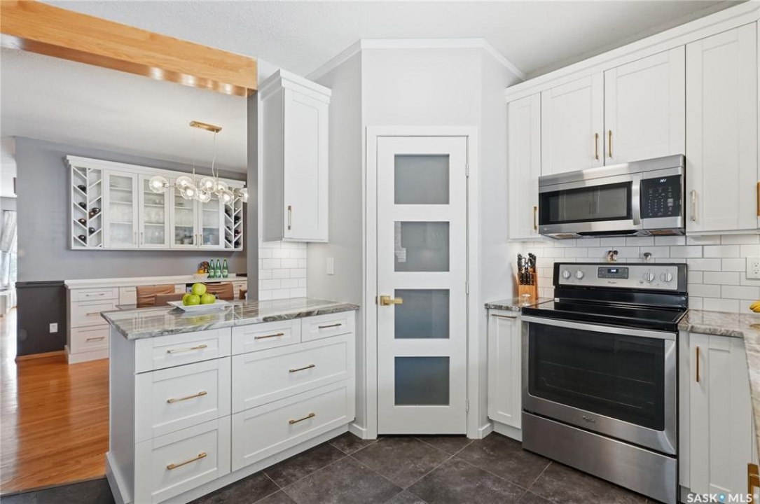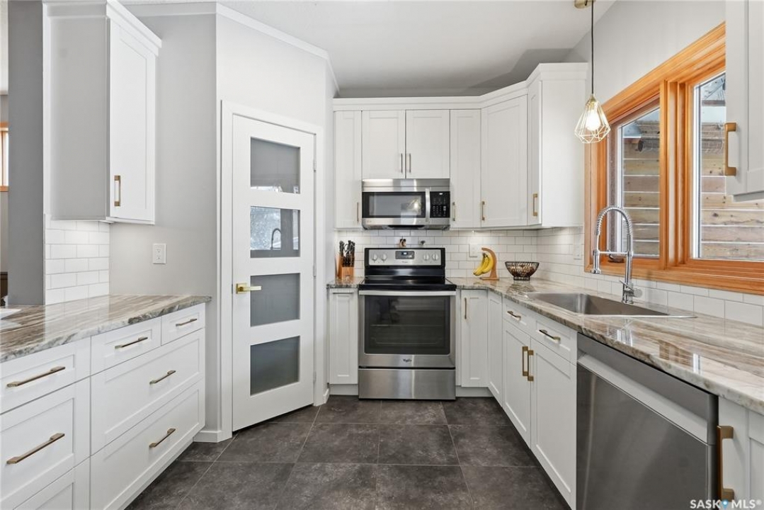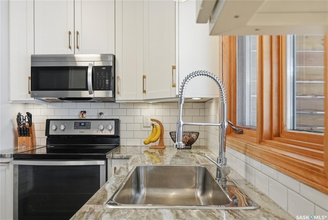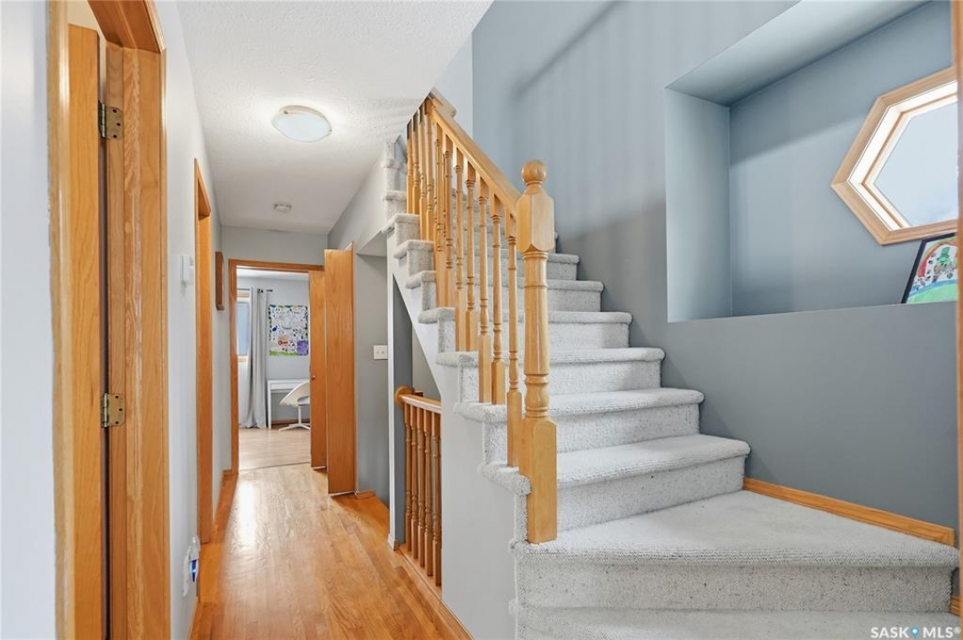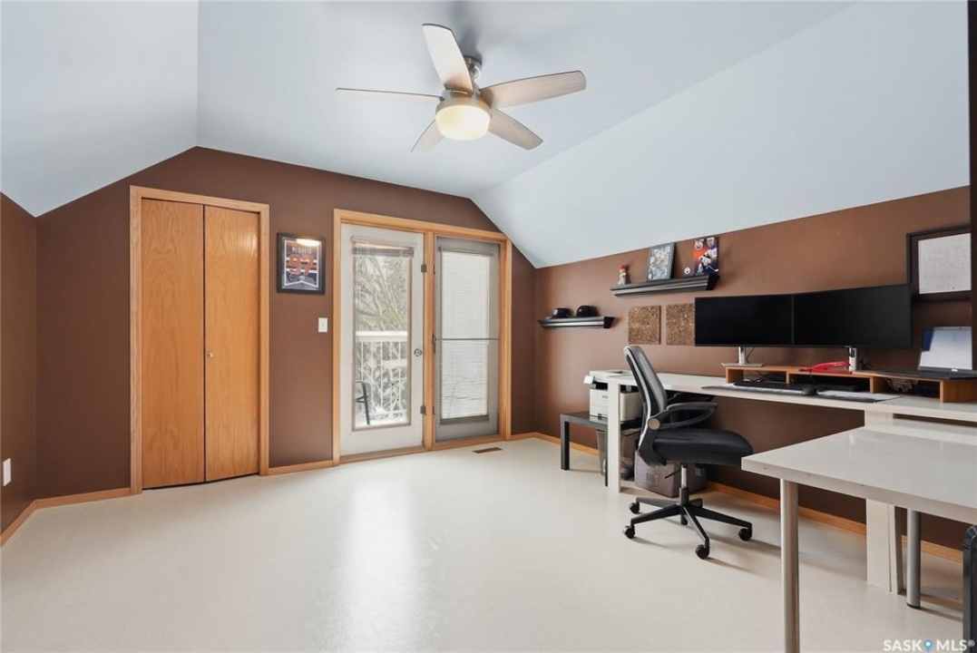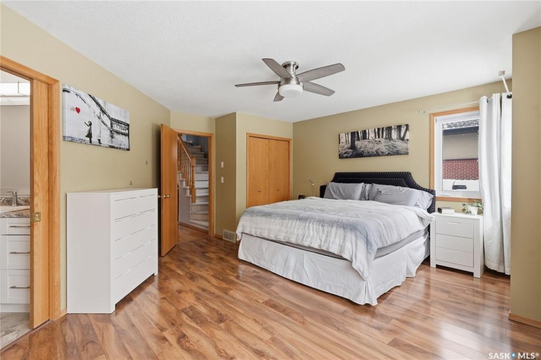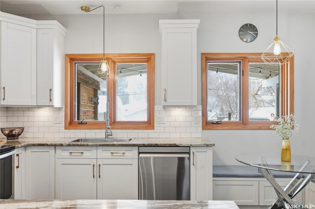 This 5 bed + den, 4 bath home sits across from President Murray Park, surrounded by natural pines and perfect for family living. Close to the U of S, Brunskill School, Meewasin trails, the river, and within walking distance to Broadway and Downtown. With 2,467 sq. ft., it offers spacious living throughout. The open-concept main floor features hardwood flooring, a bright living room with bay window facing the park, and a formal dining area with new built in storage and bar area. beside a well-appointed recently renovated kitchen with ample cabinetry, stainless steel appliances, and a cozy breakfast nook. Upstairs includes three bedrooms, including a large primary suite with 3-piece ensuite, dual closets, and treetop views, plus an additional full bath and convenient laundry. The third floor offers a sunlit bonus room, two additional bedrooms, and unique features like attic storage and a charming balcony. The fully developed basement adds a family room with gas fireplace, a den, full bath, and excellent storage. Outside, enjoy a covered deck, low-maintenance fenced yard, and a double detached garage with new slab that has been raised up from the alley. Don't miss this amazing home which showcases what Varsity is all about!