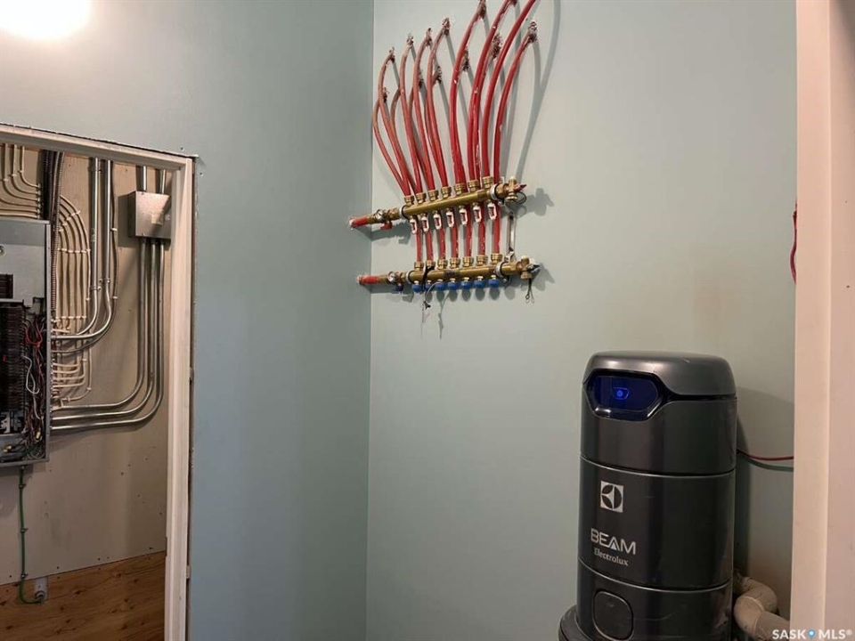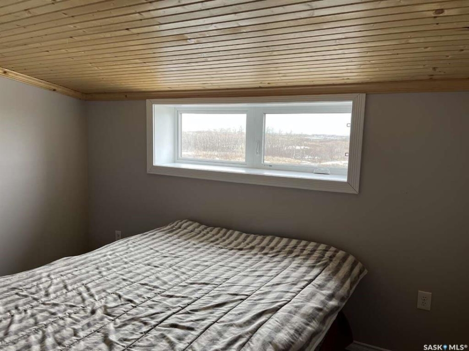 For more information, please click the "More Information" button. Discover an exceptional 80-acre parcel blending industrial capability with comfortable living, 35 mins from Circle Drive in Saskatoon. Nestled near the South Saskatchewan River, this versatile site is 10 miles north, 1 mile east and 1 mile north of Aberdeen, just 2 km from the Hague ferry crossing. — Shop highlights 6000 sqft engineered steel structure (100' X 60') with tin cladding inside and out. 4800 sqft of clear span shop area with 18' walls on 6” concrete slab (35 MPa) thickened edges over heavy screw piles. includes 60' overhead two ton crane. Geothermal heat pump in-floor heating on both levels for efficient even warmth. 14' X 16' overhead door and 50' X 17' bi-folding diamond door plus two steel man doors. — Residence Features 2300 sqft open-concept home (apx 1150 sqft on each level) is seamlessly integrated into the shop. Shop and house are divided by a 2 hr fire rated and sound proofed wall. No well to maintain, on city water Ground level has 10' walls, three mechanical rooms, 1/2 bathroom roughed for full bath, stair case with under stairs storage. Remaining 650 sqft. ground level area finished and painted, ready for possible bedrooms. Upper level has 11' pine vaulted ceiling, kitchen with island, dining and living area all open concept. Full bathroom, laundry, three bedrooms, walk in closet off primary suite. Garden doors lead off the living room onto a 12' X 16' elevated deck. — Land details Legal: S1/2 SE 1/4 31 40 2 W3 totalling 80 acres with two 40 acre titles. Topography is near level with gentle slope towards river, minimal stones. soil: Black sandy loam with 57 acres currently cultivated. Gravels found at 8' depth while digging the 11' deep trenches for Geothermal ground loops. — Year round gravel roads provide reliable access, school bus route K-12.
