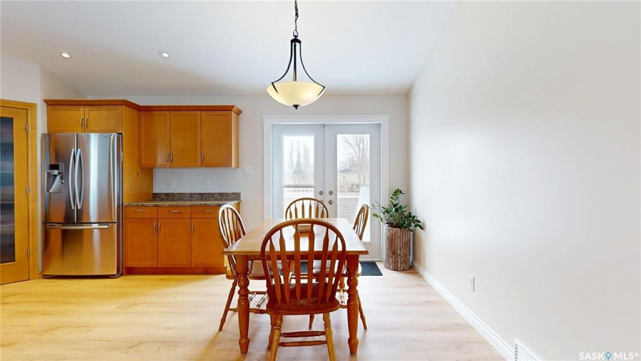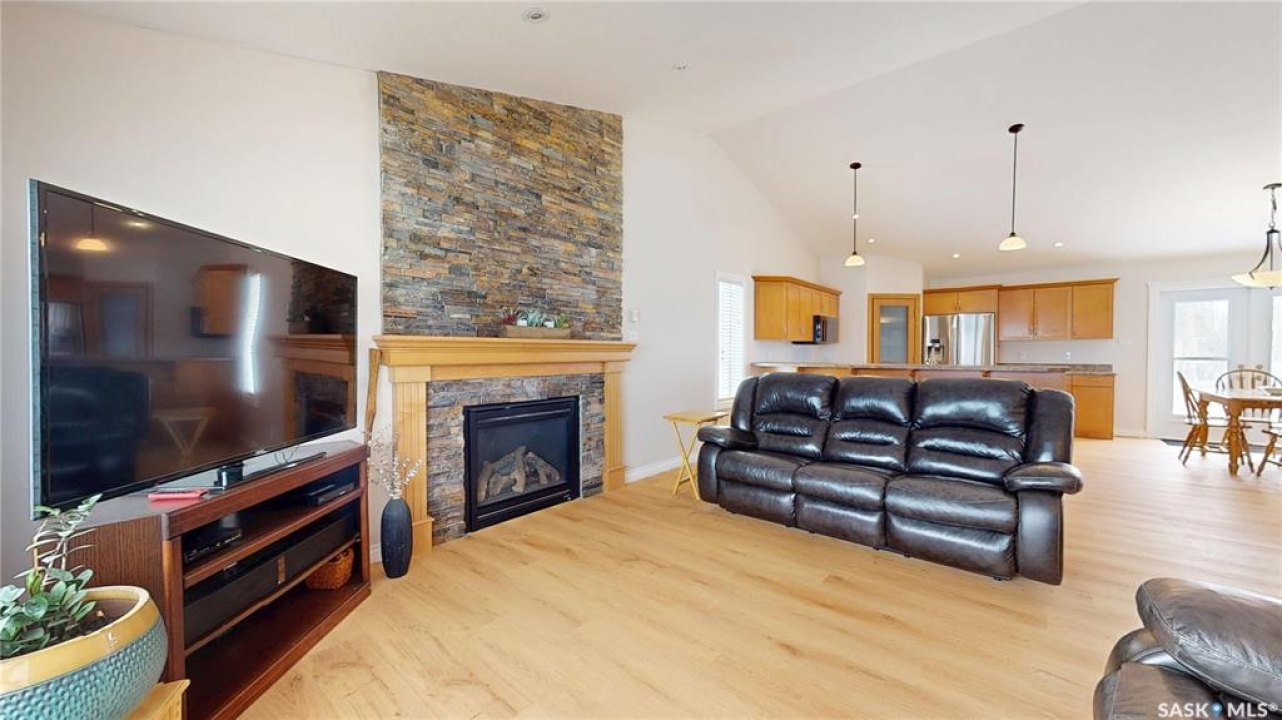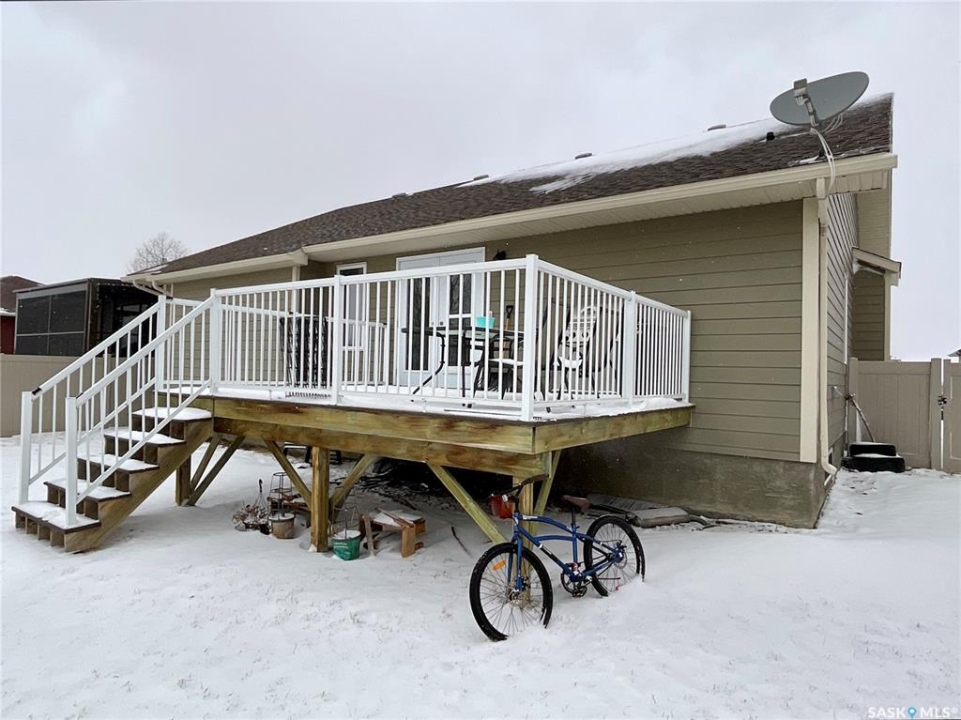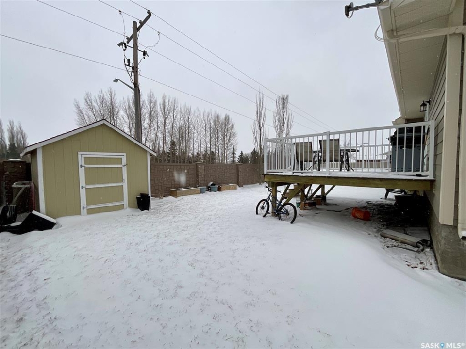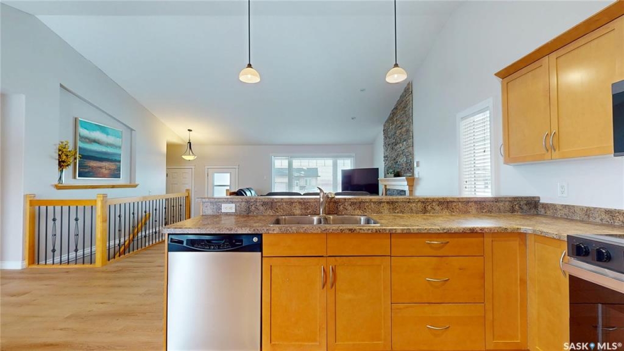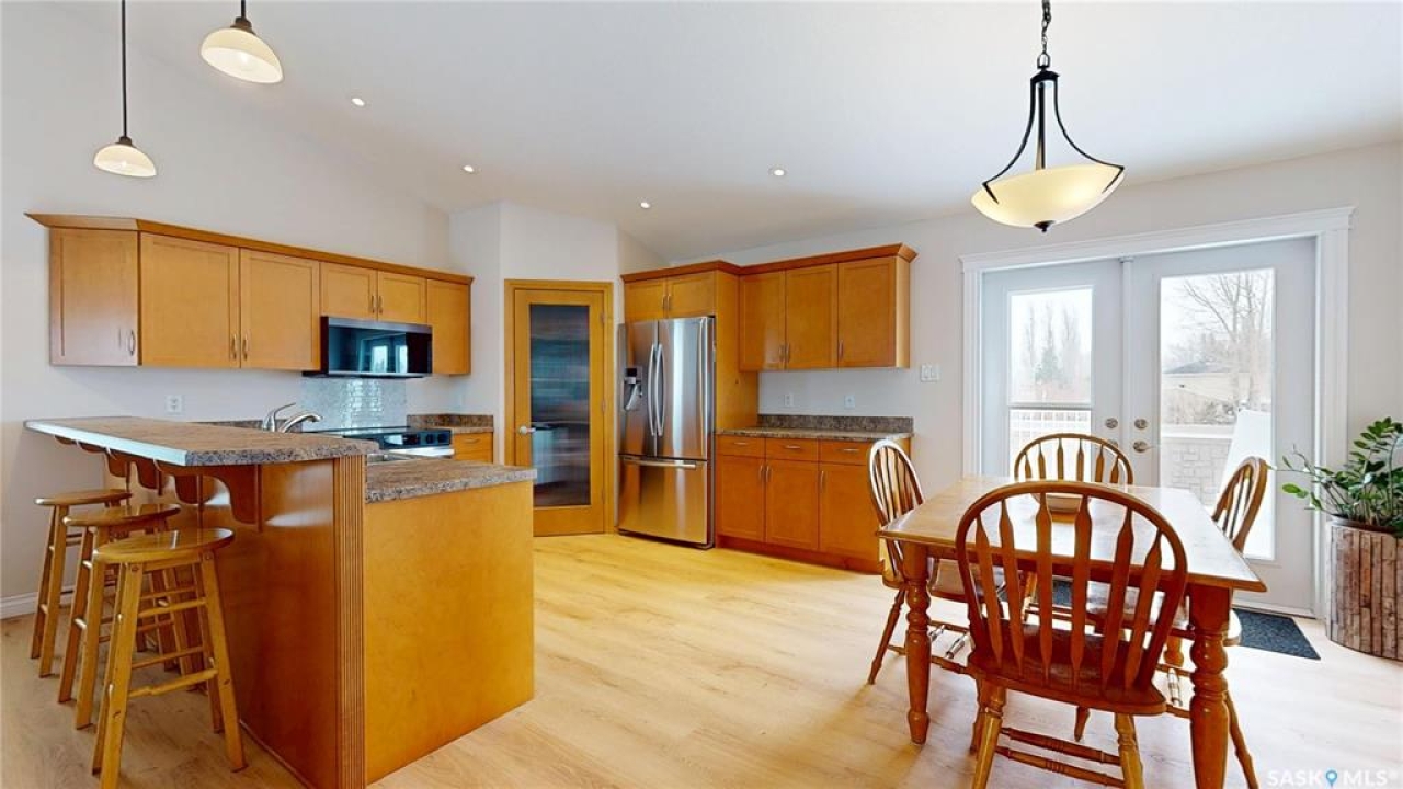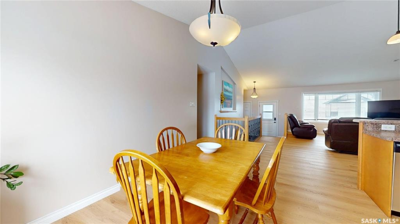 Welcome to this spacious 1480 sqft bungalow located in the desirable community of Pilot Butte, just 10 minutes from Regina. This well-designed home offers 5 bedrooms, 3 bathrooms, and plenty of space throughout. The front of the home features a lovely porch, adding great curb appeal and a welcoming place to enjoy your morning coffee. Step inside to a bright, open-concept main floor featuring a comfortable living room with a gas fireplace, a functional kitchen with plenty of cabinetry, a corner pantry, and updated stainless steel appliances, including a new stove and microwave installed in 2026, fridge, and built-in dishwasher. The dining area offers direct access to the 12'x16' south-facing deck, perfect for relaxing or entertaining. Down the hall, you'll find a spacious primary bedroom featuring a walk-in closet and large 3-piece ensuite. Two additional good-sized bedrooms and a 4-piece bathroom finish off the main floor. The fully developed basement offers even more living space with a large recreation room, two additional bedrooms, a den, 3-piece bathroom, and a dedicated utility/laundry room with a high-efficiency furnace, rented water heater, washer, and dryer. The double attached garage is insulated and heated, providing excellent storage and workspace, with the fridge, cabinets, and workbench included. There is also plenty of parking out front, adding extra convenience for guests or additional vehicles. Outside, the fully fenced and landscaped backyard features a storage shed, garden space, and plenty of room for kids, pets, entertaining, or simply enjoying the outdoors. Additional value is found in the home's smart features, including Wi-Fi enabled keyless entry, thermostat, smoke detectors, stove, and microwave, offering the convenience of app-based control and monitoring from your phone. This is a wonderful opportunity to enjoy small-town living with quick access to Regina amenities. Don't miss your chance to make this Pilot Butte bungalow your next home!