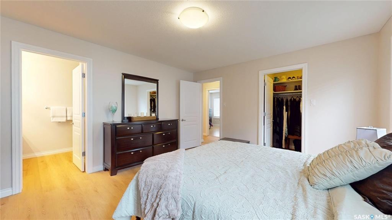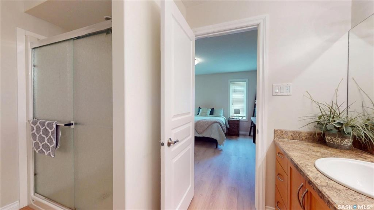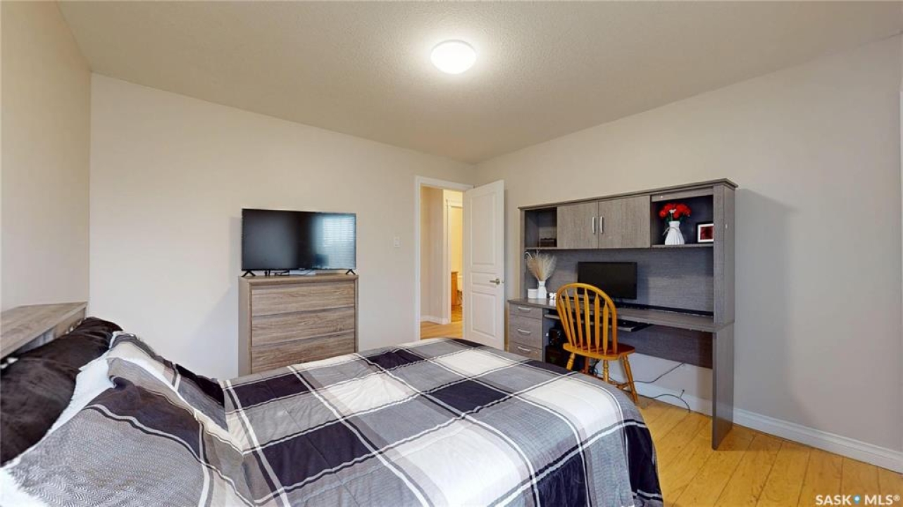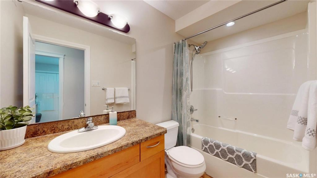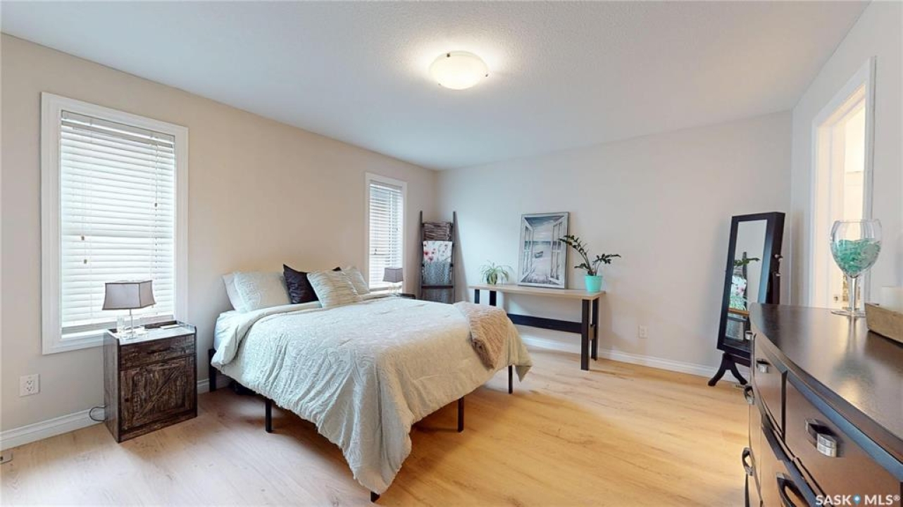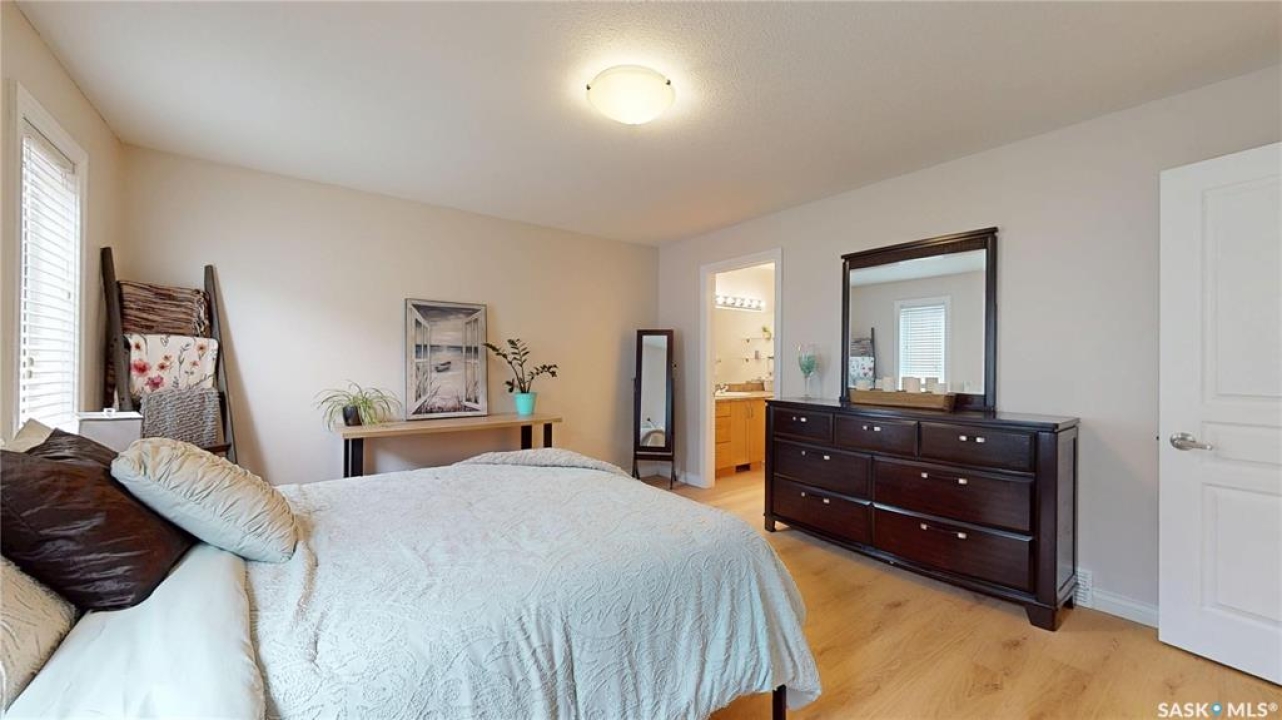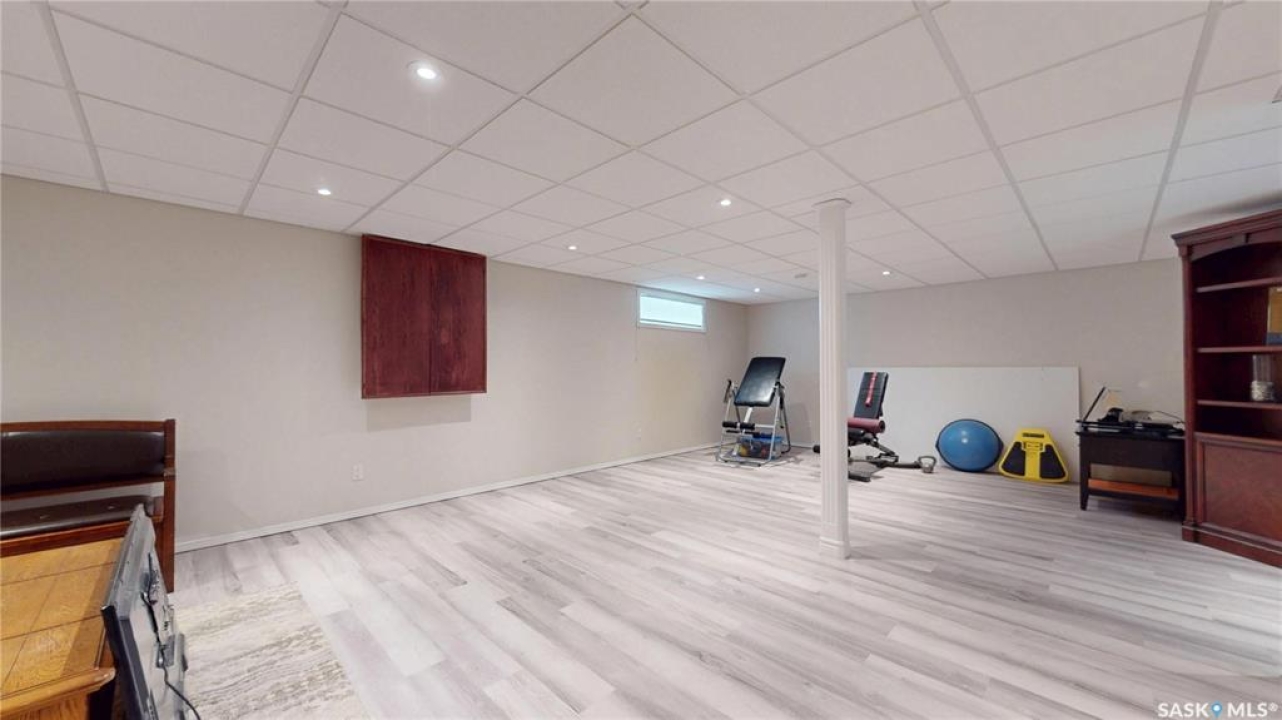 Welcome to this spacious 1480 sqft bungalow located in the desirable community of Pilot Butte, just 10 minutes from Regina. This well-designed home offers 5 bedrooms, 3 bathrooms, and plenty of space throughout. The front of the home features a lovely porch, adding great curb appeal and a welcoming place to enjoy your morning coffee. Step inside to a bright, open-concept main floor featuring a comfortable living room with a gas fireplace, a functional kitchen with plenty of cabinetry, a corner pantry, and updated stainless steel appliances, including a new stove and microwave installed in 2026, fridge, and built-in dishwasher. The dining area offers direct access to the 12'x16' south-facing deck, perfect for relaxing or entertaining. Down the hall, you'll find a spacious primary bedroom featuring a walk-in closet and large 3-piece ensuite. Two additional good-sized bedrooms and a 4-piece bathroom finish off the main floor. The fully developed basement offers even more living space with a large recreation room, two additional bedrooms, a den, 3-piece bathroom, and a dedicated utility/laundry room with a high-efficiency furnace, rented water heater, washer, and dryer. The double attached garage is insulated and heated, providing excellent storage and workspace, with the fridge, cabinets, and workbench included. There is also plenty of parking out front, adding extra convenience for guests or additional vehicles. Outside, the fully fenced and landscaped backyard features a storage shed, garden space, and plenty of room for kids, pets, entertaining, or simply enjoying the outdoors. Additional value is found in the home's smart features, including Wi-Fi enabled keyless entry, thermostat, smoke detectors, stove, and microwave, offering the convenience of app-based control and monitoring from your phone. This is a wonderful opportunity to enjoy small-town living with quick access to Regina amenities. Don't miss your chance to make this Pilot Butte bungalow your next home!