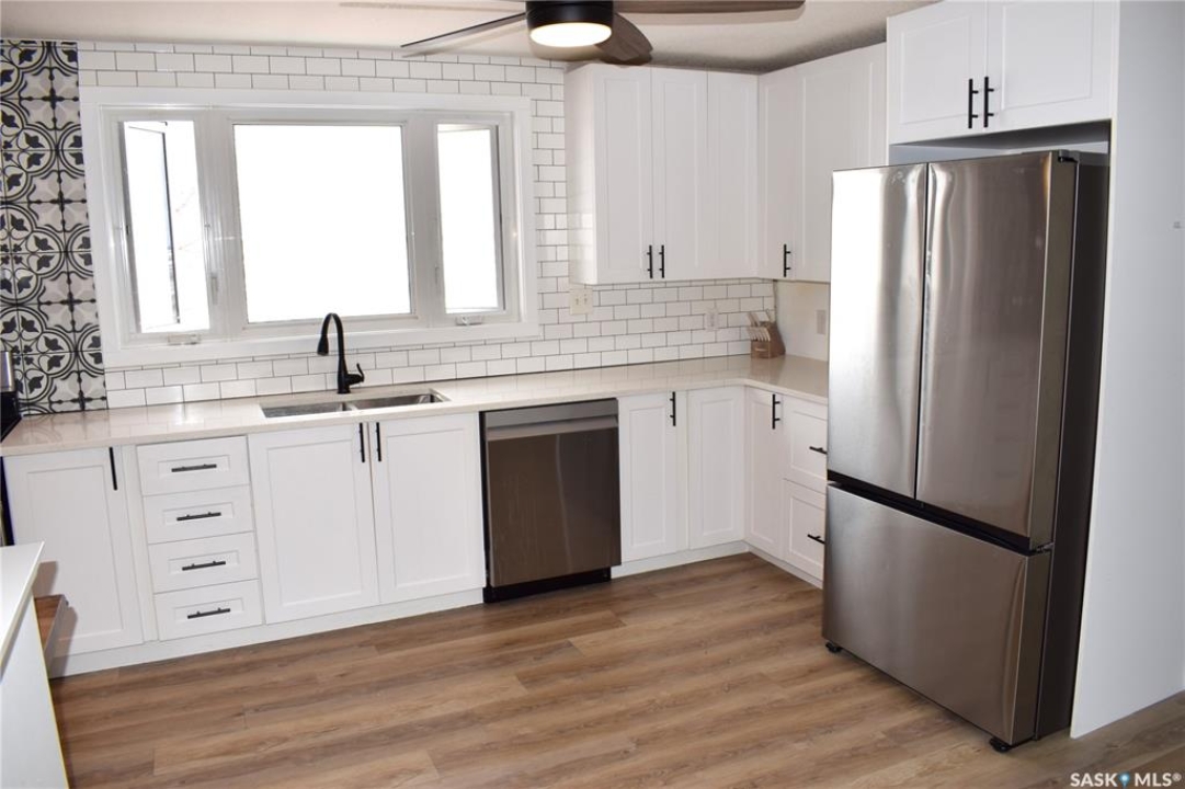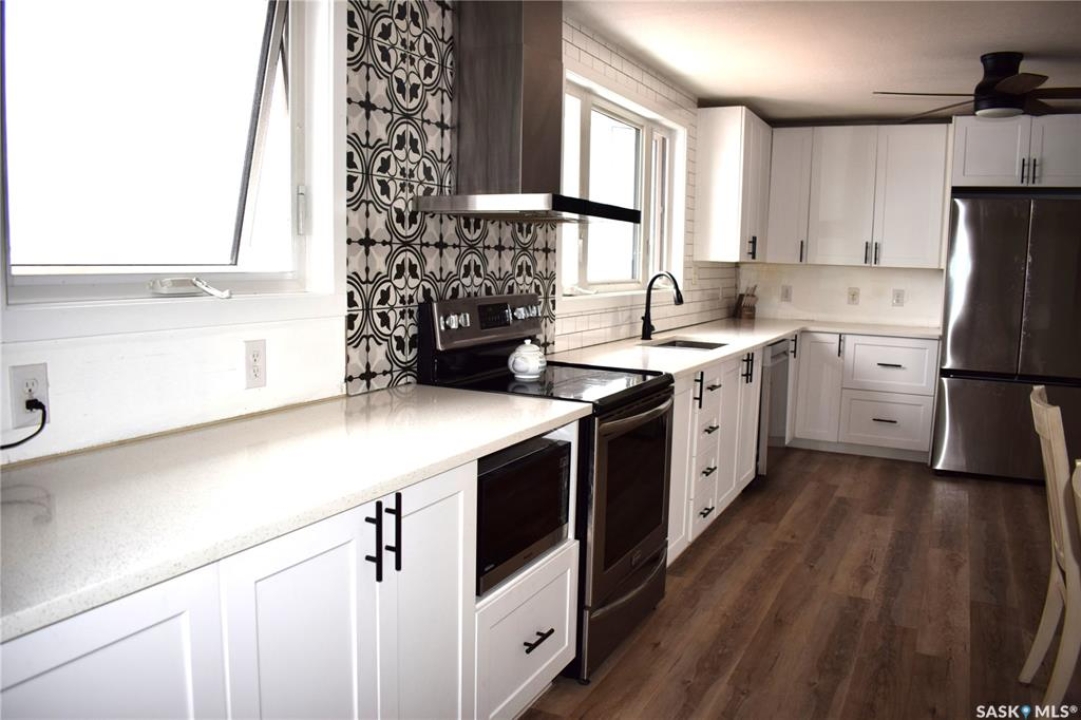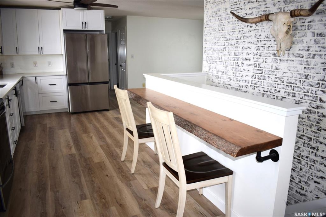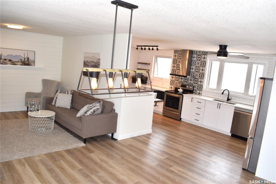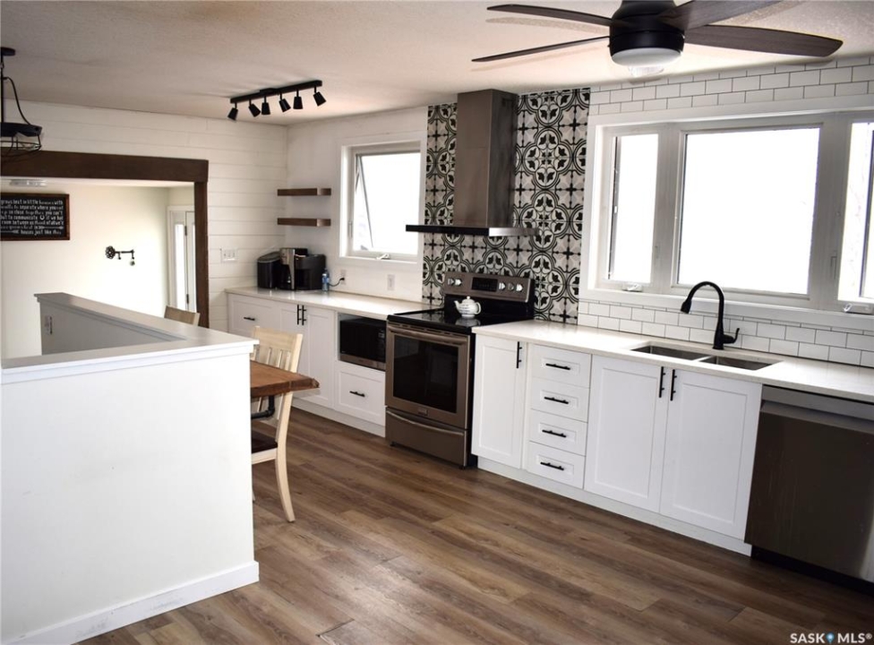 Utter privacy, endless sky—no neighbours in sight, just quiet living with school bus pickup to Bulyea. This 4-bedroom home plus den and 2 bathrooms has been quietly, thoughtfully reimagined from top to bottom. Step inside and you'll notice the details right away: all new interior doors, baseboards, and modern door hardware (2024) create a clean, cohesive feel that carries throughout the space. The main living areas flow effortlessly into a beautifully refreshed kitchen, where new cabinetry, quartz countertops, and a stylish backsplash (2024) come together with brand-new appliances to create a space that's both functional and striking. Upstairs, the bathroom has been fully upgraded with a Bathfitter tub, new vanity, and tile (2022), offering a polished, move-in-ready retreat. Downstairs continues the theme with upgraded flooring and a refreshed bathroom featuring a new tub, surround, and vanity (2022)—perfect for guests or additional living space. Beyond aesthetics, the home has seen substantial mechanical and structural improvements. Triple-pane windows (2024), upgraded vinyl siding with added insulation, new soffit, fascia, and eaves (2024), plus baseboard heaters (2022) all contribute to comfort and efficiency year-round. The exterior tells its own story. A front deck (2022) welcomes you in, while the reclaimed driveway and established shelter belt (2022) add both practicality and privacy. The attached garage adds everyday convenience and stands out with a wood stove and chimney (2021), making it a versatile space no matter the season. Equally impressive are the essentials: a 26' shallow well with 36” cribbing that has never run dry feeds a 1200-gallon cistern, alongside a 650-gallon septic system—providing reliable, efficient rural living with an equalized power cost of under $400/month, no gas bill, and no water bill. Every upgrade here has already been done—thoughtfully, recently, and with purpose—so you can simply move in and enjoy.