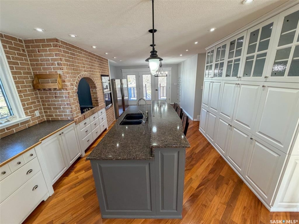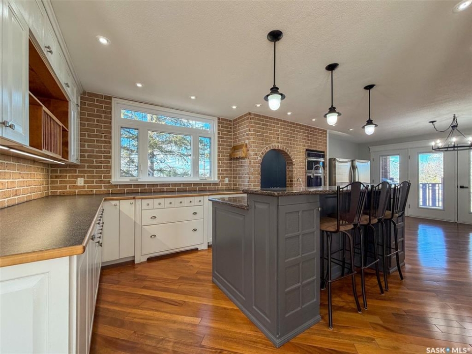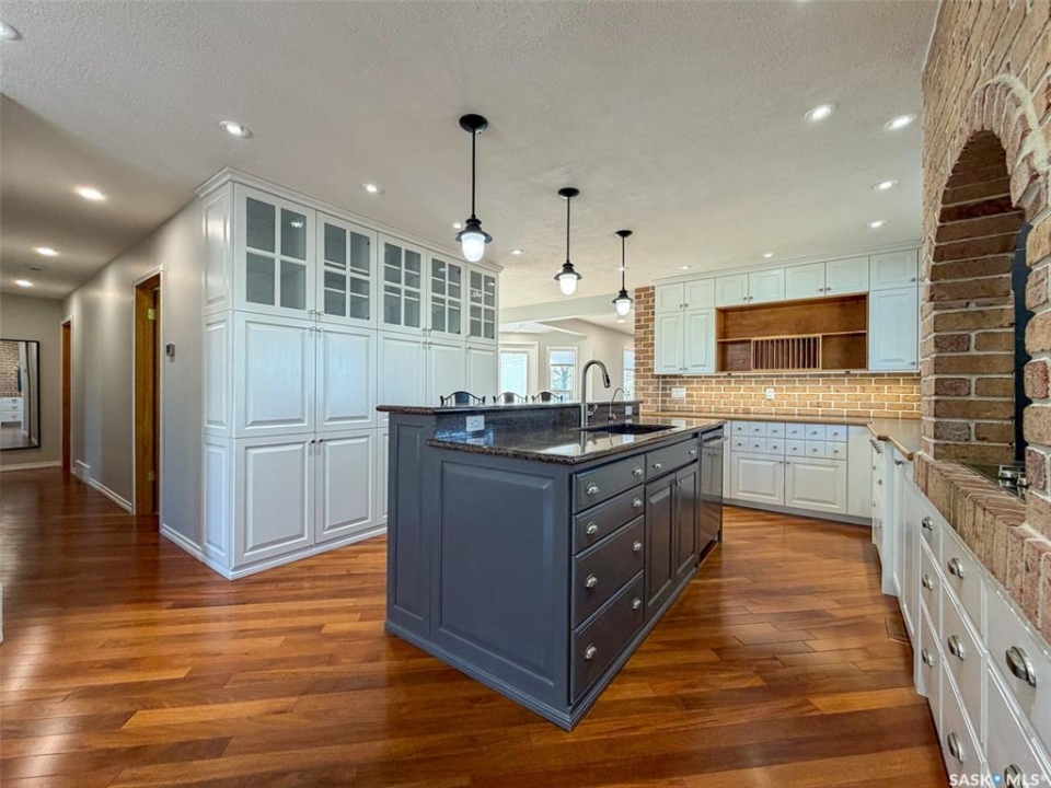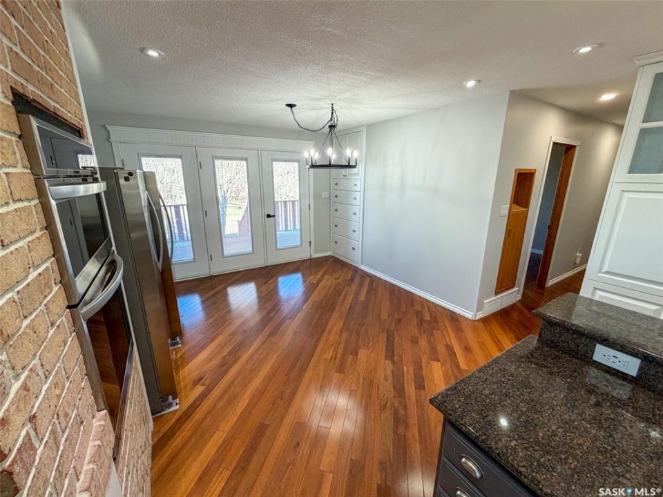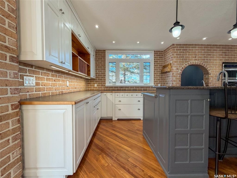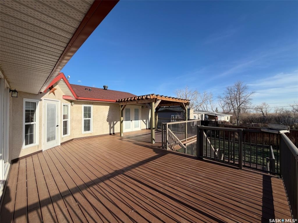 Welcome to 117 2nd Street W in Frontier, SK — a spacious and beautifully cared for walkout bungalow offering 1,648 sq. ft. on the main floor and 3,296 sq. ft. of total developed living space. With 5 bedrooms, 3 bathrooms, and thoughtful upgrades throughout, this home offers room to grow while still feeling warm and inviting. Built in 1977, it has been extensively updated and lovingly maintained over the years. Step inside to a stunning kitchen and dining area that blends timeless style with modern convenience. Custom cabinetry, brick accents, under-cabinet lighting, built-in garbage and recycling, and excellent storage make this space as practical as it is beautiful. Large windows fill the room with natural light, creating a bright atmosphere for everyday living or entertaining. The spacious living room offers direct access to the large deck with pergola — perfect for summer evenings or morning coffee. Garden doors from the deck lead into the primary bedroom, complete with a walk-in closet, private 3-piece ensuite, and convenient main floor laundry. Two additional bedrooms on the main floor (one also with a walk-in closet) and an updated 4-piece bathroom complete this level. The walkout basement, accessed from beneath the carport, provides an excellent second living area with a bright family room featuring a gas fireplace and patio doors. The lower level also includes an updated mudroom, spacious workshop, two more bedrooms (one used as an office with a walk-in closet), a 3-piece bathroom, storage room, and utility room. Major updates include roof (2010), furnace (2023), water heater (2024), washer & dryer (2024), oversized fridge (2024), cooktop, oven & microwave (2025), plus a natural gas BBQ hookup with BBQ included (2025). With mature landscaping, strong curb appeal, and incredible space inside and out, 117 2nd Street W is ready to welcome its next family.