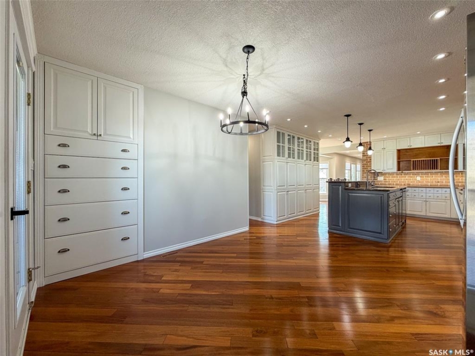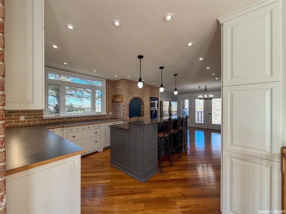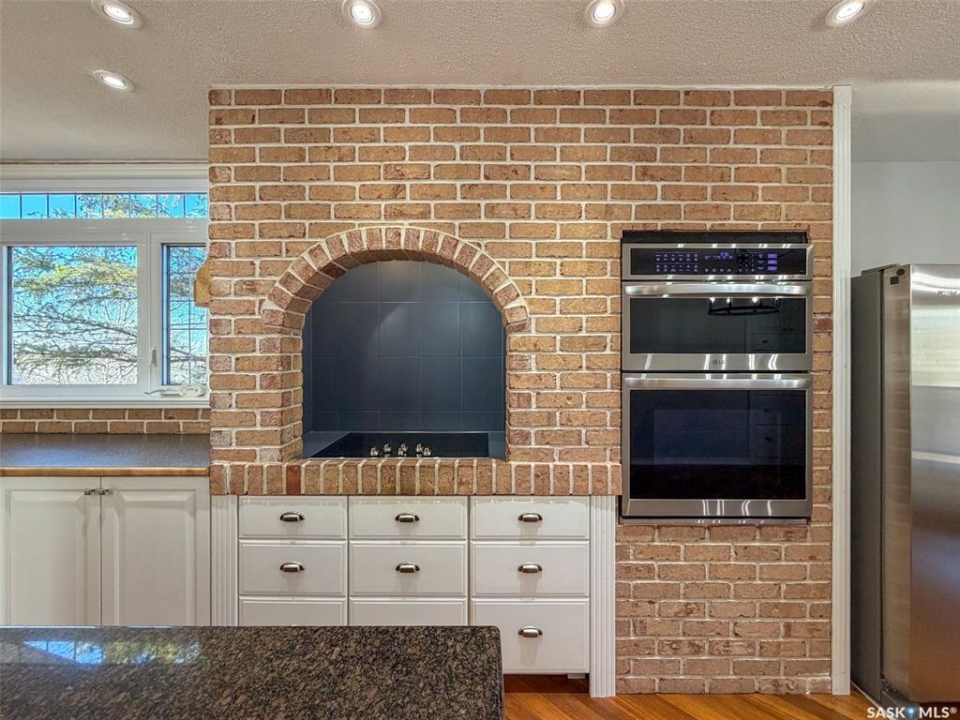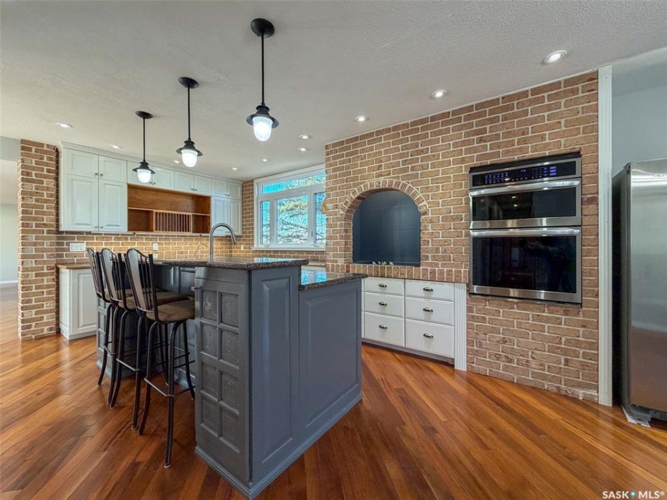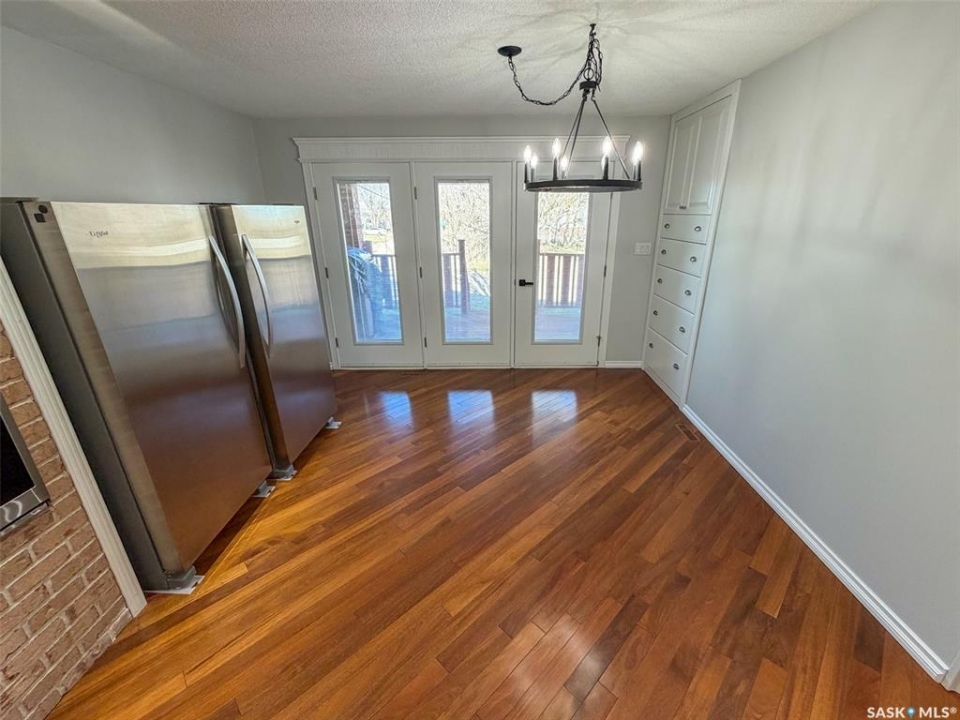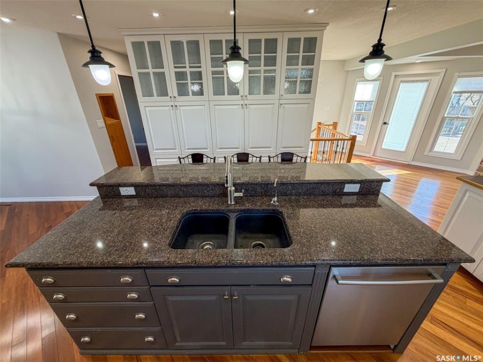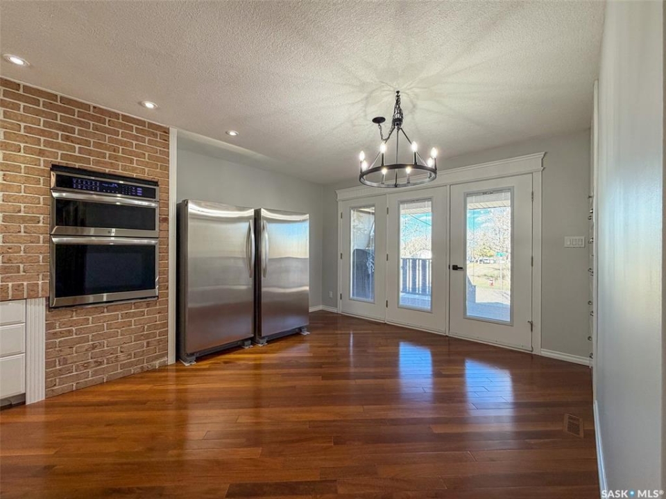 Welcome to 117 2nd Street W in Frontier, SK — a spacious and beautifully cared for walkout bungalow offering 1,648 sq. ft. on the main floor and 3,296 sq. ft. of total developed living space. With 5 bedrooms, 3 bathrooms, and thoughtful upgrades throughout, this home offers room to grow while still feeling warm and inviting. Built in 1977, it has been extensively updated and lovingly maintained over the years. Step inside to a stunning kitchen and dining area that blends timeless style with modern convenience. Custom cabinetry, brick accents, under-cabinet lighting, built-in garbage and recycling, and excellent storage make this space as practical as it is beautiful. Large windows fill the room with natural light, creating a bright atmosphere for everyday living or entertaining. The spacious living room offers direct access to the large deck with pergola — perfect for summer evenings or morning coffee. Garden doors from the deck lead into the primary bedroom, complete with a walk-in closet, private 3-piece ensuite, and convenient main floor laundry. Two additional bedrooms on the main floor (one also with a walk-in closet) and an updated 4-piece bathroom complete this level. The walkout basement, accessed from beneath the carport, provides an excellent second living area with a bright family room featuring a gas fireplace and patio doors. The lower level also includes an updated mudroom, spacious workshop, two more bedrooms (one used as an office with a walk-in closet), a 3-piece bathroom, storage room, and utility room. Major updates include roof (2010), furnace (2023), water heater (2024), washer & dryer (2024), oversized fridge (2024), cooktop, oven & microwave (2025), plus a natural gas BBQ hookup with BBQ included (2025). With mature landscaping, strong curb appeal, and incredible space inside and out, 117 2nd Street W is ready to welcome its next family.