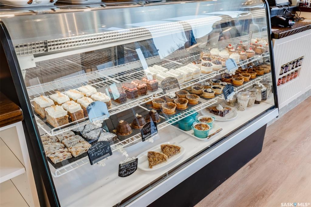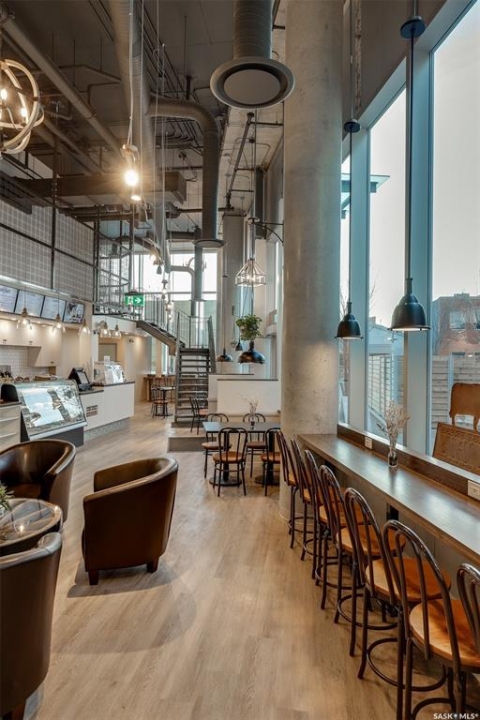 Home Quarter Coffeehouse & Bakery is a beloved space to grab a coffee and delicious baking, however they also offer many other options ie: breakfast foods. This popular business is located within The Banks condominiums on the corner of 19th Street and Avenue B, sharing a courtyard with other prominent businesses, conveniently below over 100 residences that love supporting the business, and across from Gather Local market. This concrete space has 18' ceilings, a steel mezzanine for extra seating, and beautiful windows spanning the length of the space creating a bright and airy space to enjoy all year around. Plenty of seating, and a gas fireplace give you a place to cozy up during cold winter days. Being only 1 block from the River Landing trails, and quick access to downtown by foot or bike, this is definitely a lifestyle location that is reminiscent of Vancouver & Victoria BC. Future upside potential value is strong as Riversdale continues to improve year over year.