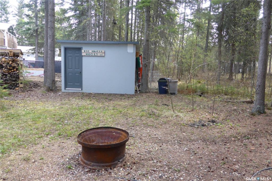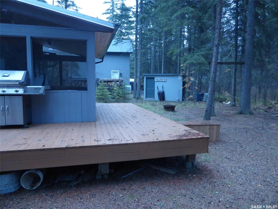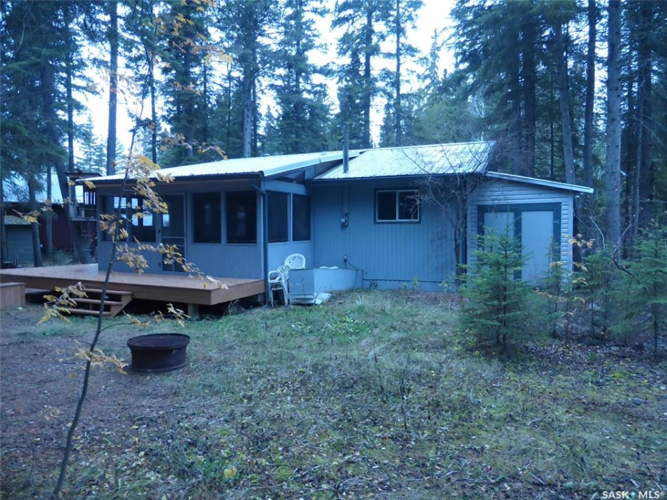 If you want peace and tranquility, along with the beauty of Northern Saskatchewan, this is the place for you. This 1982 built cabin is on a solid foundation, and has 3 bedrooms, one of which has built in bunkbeds. There is a 3-piece bath, utility room with a filtered water system as well as newer apartment sized stacking washer and dryer. The kitchen dining and living room is open concept for great family visits. The bulk of all the meals will be enjoyed on the screened in deck, that also has an overhead heater for any chilly evenings. The screened in, covered deck area is 10 x 17 on the 16 x 24 deck which overlooks the back yard sanctuary and has a view of the lake. There are 2 sheds on the property, firepit, swing, treehouse and a large area to store firewood. The lot is 65' on the roadside, but widens to 117' in the back, and the next lot is a public reserve. The depth of the lot is 98' on the north side and 111' on the south side; so, lots of room to play. This cabin was designed with the thoughts of lake enjoyment, as well as low maintenance, leaving you time to fish, bike, quad or whatever you desire. The street has a gate at the south end (for emergencies only) so the only traffic should be your friends and neighbors. Don't delay on coming for a viewing of this property, you won't be disappointed!